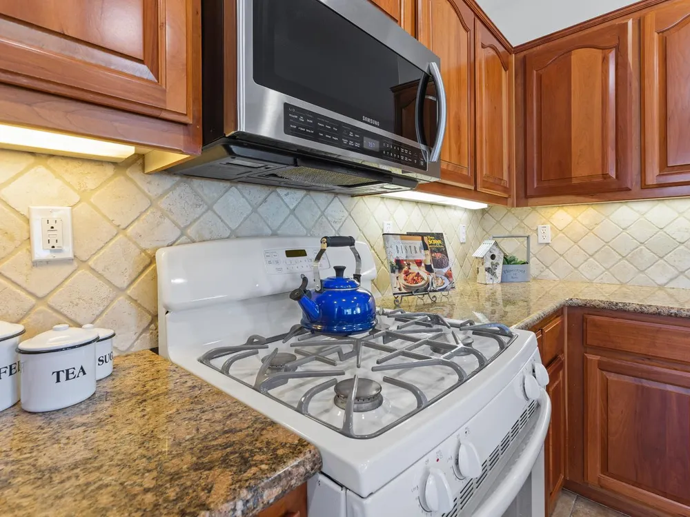 - Dishwasher, Disposal, Free-Standing Gas Range, Free-Standing Refrigerator, Gas Hookup, Gas Water Heater, Range Hood, Microwave, Self Cleaning Oven