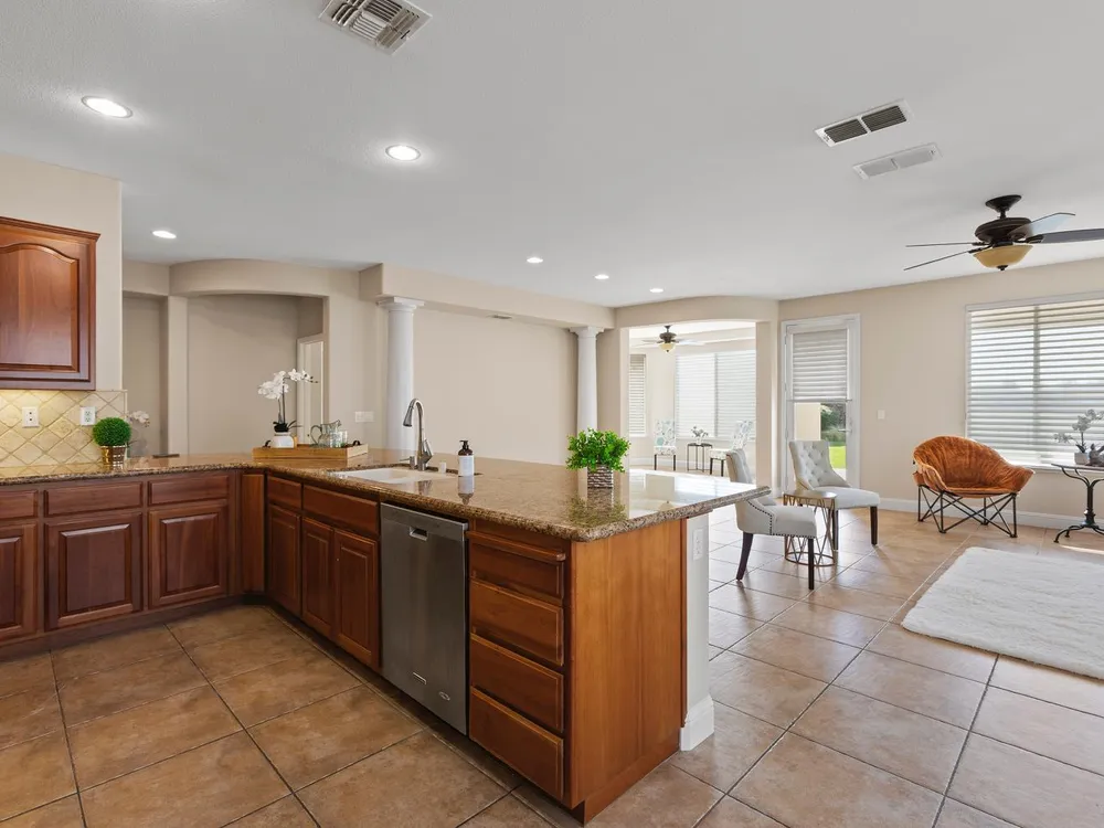 Absolutely gorgeous views of the the golf course and lake from this well kept home in Trilogy. The Belmont'' with 2 bedrooms, 2 baths, den, 2 car garage with light and bright interiors and tasteful updates throughout. Enjoy views from the large back yard under the covered patios!