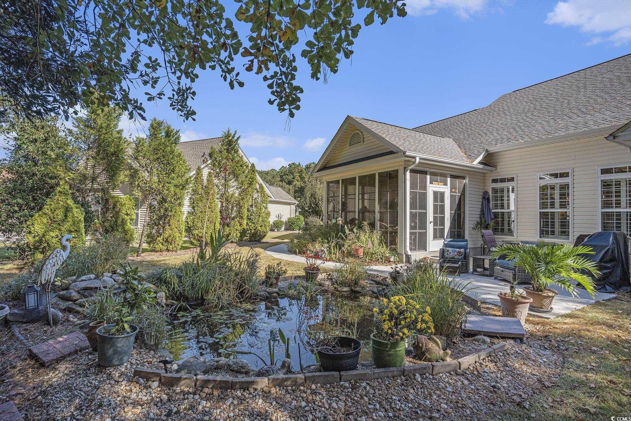 Welcome to Laurel Bay at Prince Creek!!!! This 3 bed, 2 bath property sits on a spacious corner lot and is full of personality! The backyard is a true standout with a fish pond, waterfall, and peaceful atmosphere that feels like a private getaway. Enjoy the oversized front patio or kick back on the screened-in back porch—perfect spaces for relaxing or entertaining. Inside, the layout is bright, comfortable, and completely move-in ready. The neighborhood is quiet, friendly, and loaded with great amenities, all in a super convenient Murrells Inlet location close to everyday essentials. Enjoy your coffee or wine by your own private, easy-to-maintain koi pond. Be sure to check out the photos—this community has so much to love!