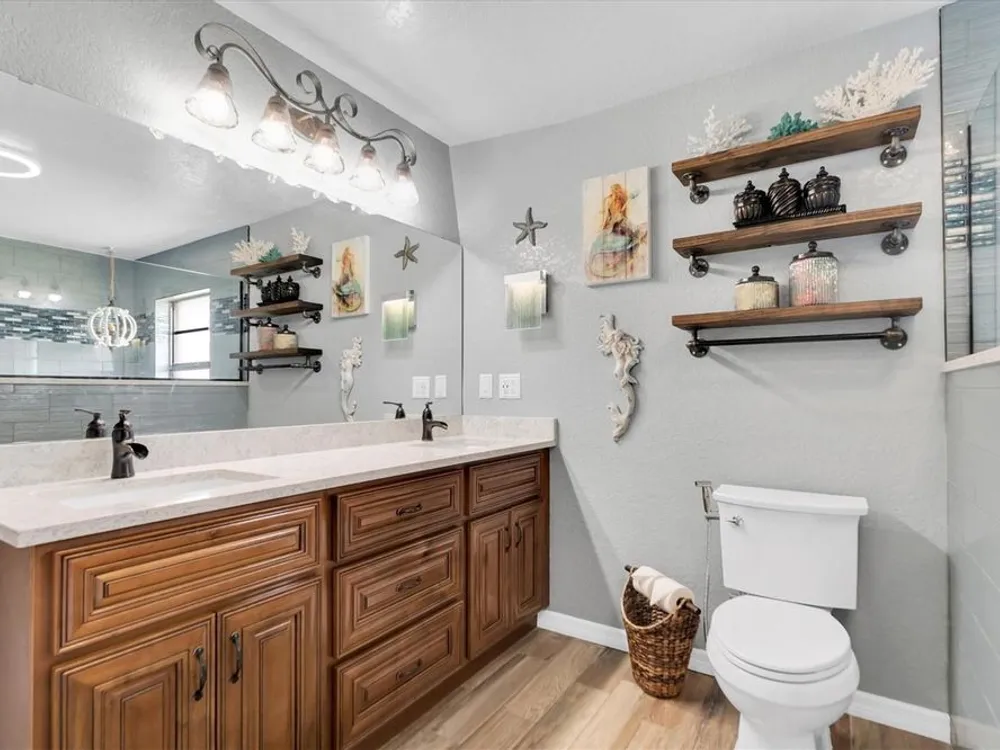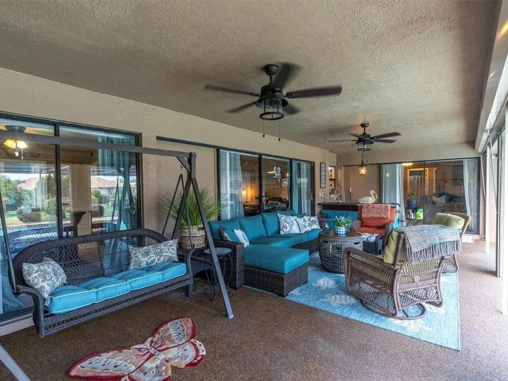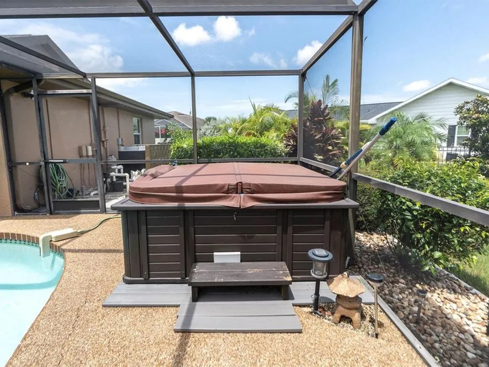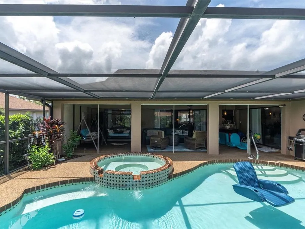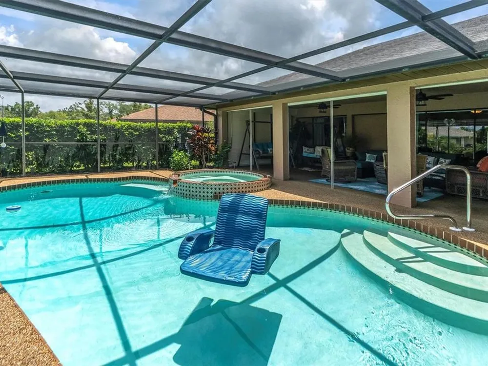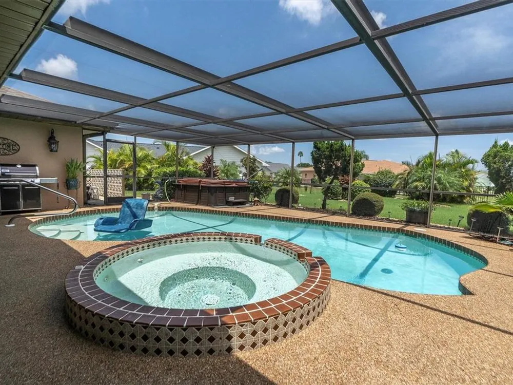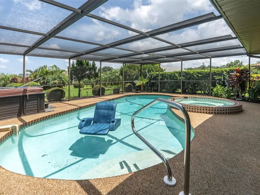 55+ resort-style living at Sun City Center - ranked #1 retirement town in the US! Well-maintained POOL HOME located at the end of a low traffic cul-de-sac in St Andrews Estates. This 3 bedroom, 2 bathroom and 3 CAR GARAGE home has 2400 sq ft of living space! Enter through the front door into the living room with pocket sliding glass doors, merging the interior and exterior spaces together. Enjoy peaceful relaxation in your personal oasis - a large covered patio, with wet bar, screened-in private pool with built in spa and an above ground spa. Lush landscaping and palm trees in the fenced backyard add to the tranquility of this property. To the left of the front door is the dining area, currently used as an additional seating area. Enter into a spacious primary suite with a sliding glass door for private access to the lanai and pool. The recently remodeled ensuite bath has double sinks and an oversized shower with built-in seating that is wheelchair accessible. The kitchen boasts beautiful granite counter tops, a breakfast bar and pantry. Just off the kitchen is the cozy family room - a great space for enjoying your favorite movies! Pocket sliding glass doors create a seamless space between the family room and lanai for quick pool access! Split floor plan for privacy! There are two additional bedrooms with an updated full bath located in-between. The second bedroom toward the back of the home is large enough to accommodate a king size bed. The versatile third bedroom (closest to the laundry room) was remodeled adding sq ftg – great as a bedroom with a seating area, office or use to your own personal taste. MANY UPGRADES: dimmer electrical switches throughout the home, all interior doors updated, all sliding glass doors have new rollers so glide easily, all lights & ceiling fans have been updated, walls have been re-textured to a knock-down finish, newer exterior paint, newer front door, garage addition (9/2007) - 3rd stall added, additional sq ftg 3rd bedroom (3/2008), new roof (2014), new water heater (2021), new pool heater (2021), new front door (2021), new AC (2024). *Water softener is leased* *Electric hurricane shutters on lanai* ~ASSUMABLE LOAN at 2.75! No CDD Fees! Not in a flood zone! In this premier retirement community you’ll find many amenities and activities. Club Renaissance offers an 18-hole golf course, pro-shop, restaurant, fitness center and fitness instructors with daily classes. At Sun City Amenity Center enjoy the pool, fitness center, lawn bowling, tennis courts, yoga center and more. Over 50 classes to choose from! There’s even a pickle ball court at the SCC Community Hall. Close to Tampa and Sarasota with easy access to beautiful gulf coast beaches, restaurants, shopping and airports! Enjoy the Florida lifestyle in this wonderful 55+ community!!