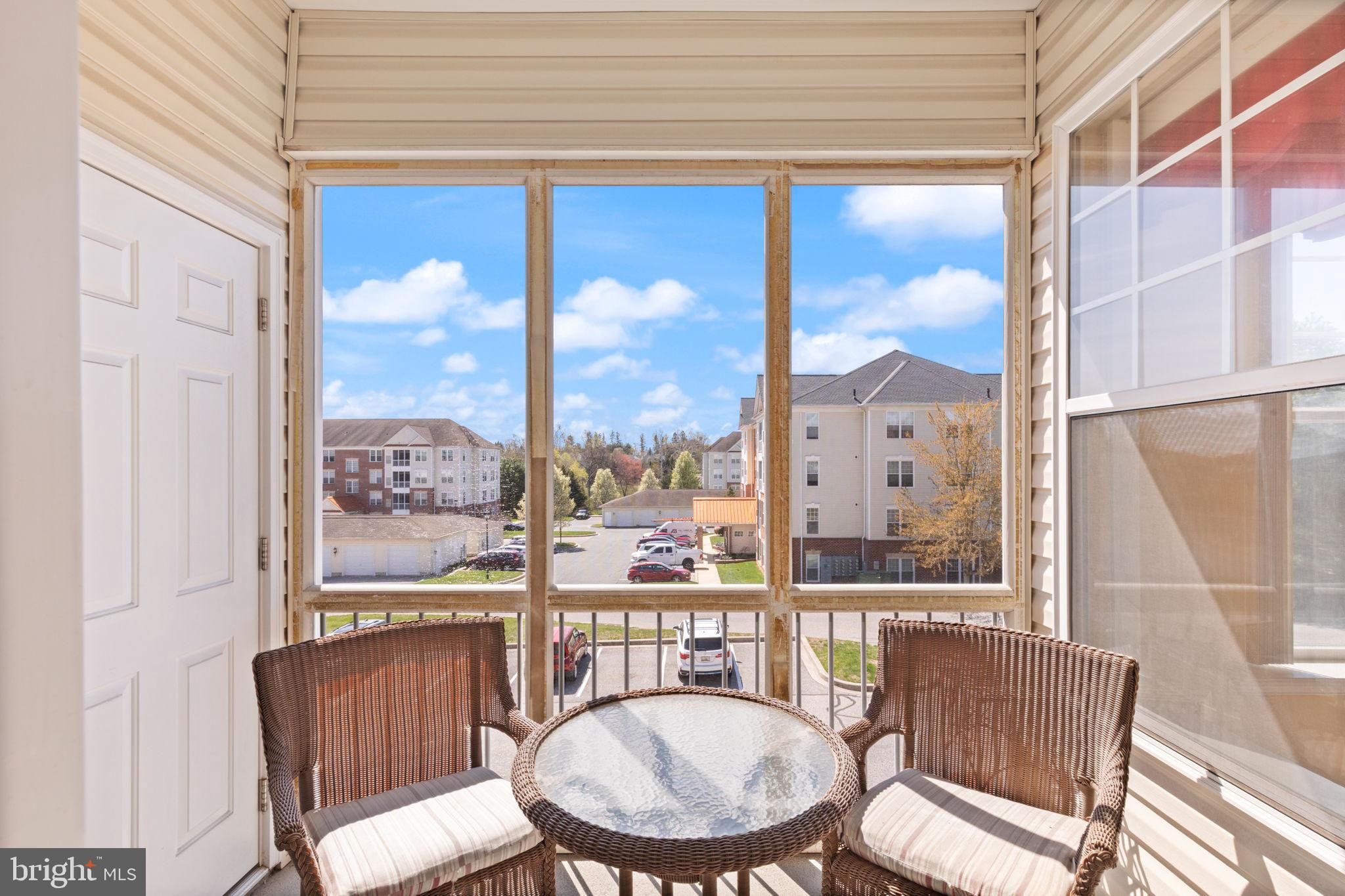 Welcome to effortless living in this beautifully maintained 55+ condo at 301 Tiree Ct #301, where comfort, convenience, and community come together. This bright, sun-filled third-floor unit—accessible by elevator—offers 2 spacious bedrooms/2 full bathroom and a Den/Flex Space, thoughtfully designed for easy, low-maintenance living. The open-concept living and dining area features soaring 9-foot ceilings and leads to a private screened balcony—perfect for morning coffee or relaxing evenings outdoors. The kitchen is both functional and inviting, complete with stainless steel appliances, upgraded cabinetry, a large pantry, and a cozy sitting room/den just off the space—ideal for casual dining, conversation, or a quiet retreat. The primary suite is a true standout, boasting a generous 12’ x 6’ walk-in closet and a well-appointed en-suite bath. Additional highlights include LVP flooring, custom vertical blinds, an 80 sq ft private storage room just steps from the unit door, a rare feature available with Unit 301. Enjoy a vibrant, amenity-rich lifestyle with access to a community clubhouse, swimming pool, fitness center, and scenic walking trails—all just steps from your door. Plus, the Harford County Public Library is conveniently located right across the street. If you’re ready to spend less time on upkeep and more time enjoying what matters most, this is the perfect place to call home.