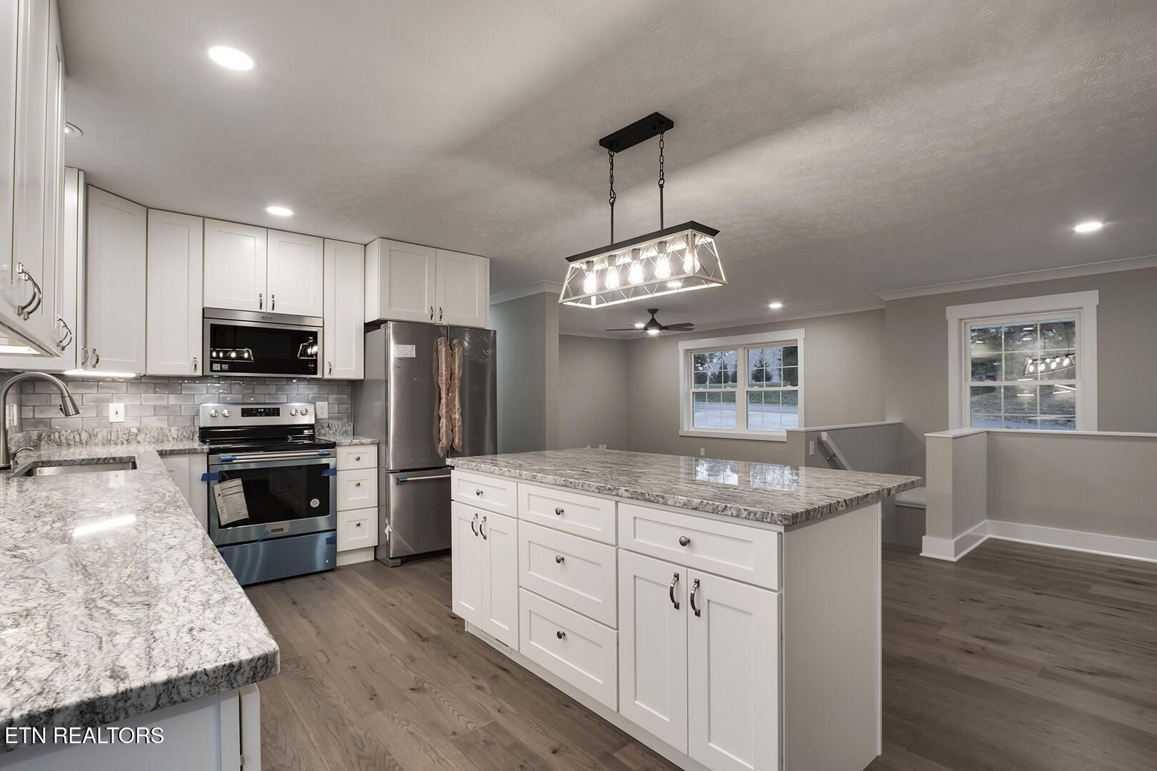 TOTALLY REMODELED - BETTER THAN NEW. All the creaks & squeaks a new house develops are not an issue with this established home! Located in the Toqua Greens neighborhood in the highly desirable Tellico Village community, this stunning 2,548 sq. ft. basement ranch has been totally renovated and is move-in ready! Every detail has been thoughtfully updated, including new engineered hardwood floors throughout the main level, tile in all baths and laundry, and luxury vinyl plank (LVP) flooring in the basement. The gourmet kitchen features brand new cabinetry, gorgeous granite countertops, and stainless steel appliances, perfect for preparing your next meal or entertaining guests. The home also boasts fresh trimwork, including baseboards, door casings, crown molding, and all-new lighting and ceiling fans in every bedroom. The main floor is complete with tile showers, new plumbing and fixtures, modern toilets, and a wifi-adaptable water heater for ultimate convenience. The fully encapsulated crawlspace with a dehumidifier ensures a dry and energy-efficient home year-round. The oversized 2-car garage with insulated doors and a rear walk door provides additional storage and access. Enjoy outdoor living on the newly built back deck and basement-covered porch, perfect for relaxation or entertaining. The beautifully landscaped yard is serviced by an irrigation system, and there are closet systems throughout for maximum storage. This home is nestled on a peaceful cul-de-sac street, in a beuatiful golf community and close to all the amenities Tellico Village has to offer. Don't miss out on this immaculate, move-in-ready gem!