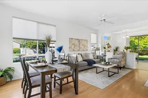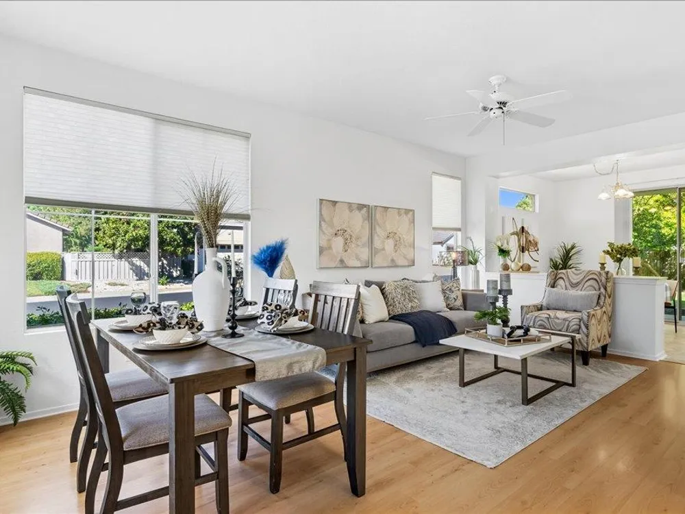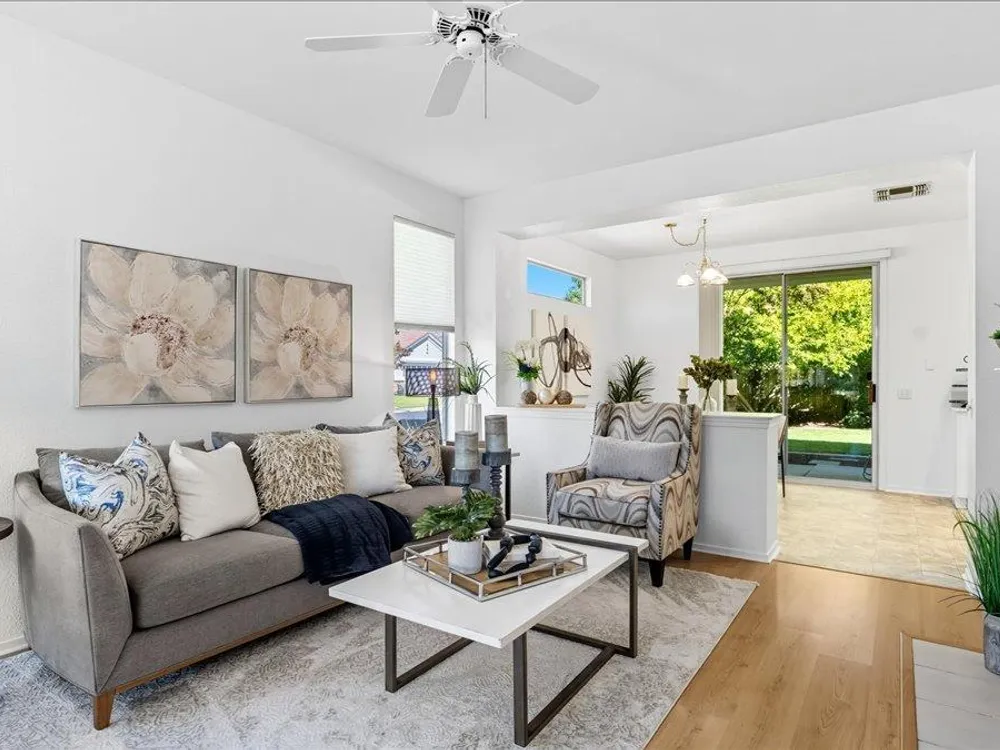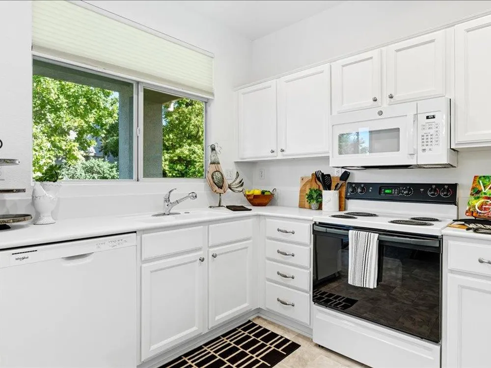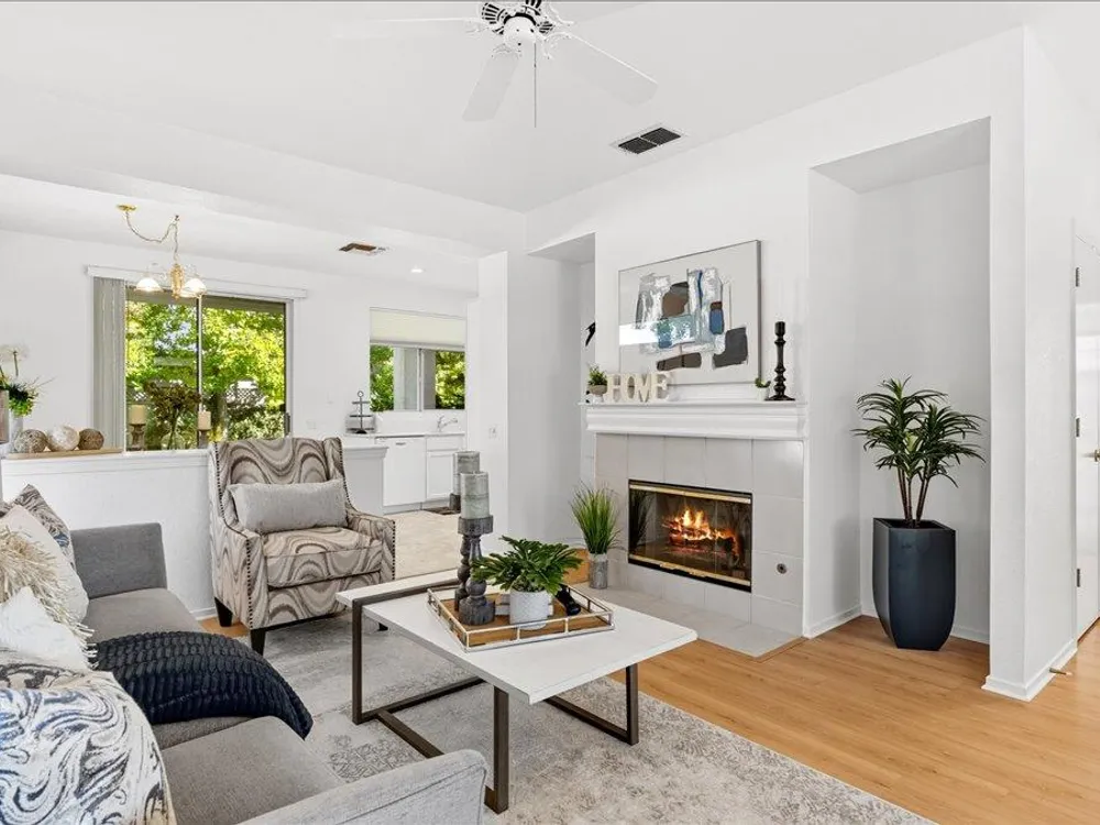 The best things come in small packages! This lovely Meadow plan that is right within your budget shows like a model home and is move-in ready. Small but mighty, this plan is so full of large windows and light that is allows the feeling of allowing the outside to come in. A buyer will appreciate the white cabinets and appliances, the fireplace, the den, and the private lush backyard.Newer updates in the home are the flooring, the appliances, the window coverings, and the painted cabinetry with new hardware. You can tell the current owners have worked to maintain this home.Low HOA fees and no Mello-Roos fees in Sun City.
