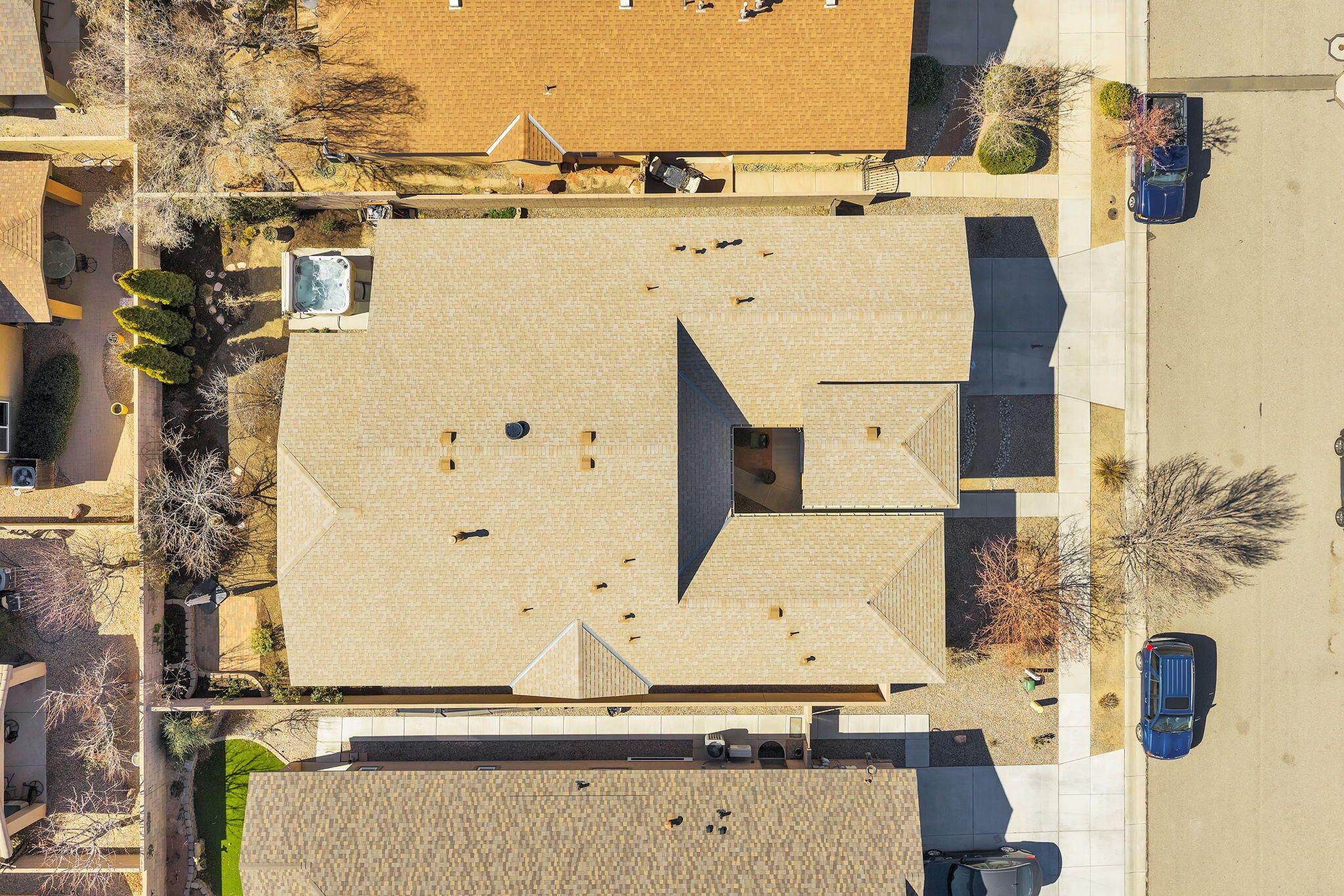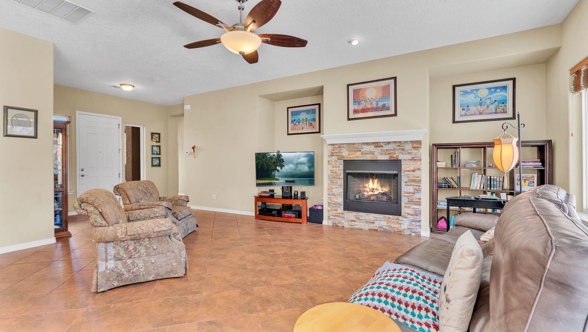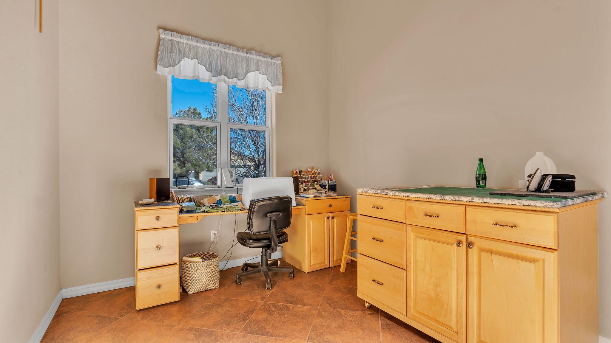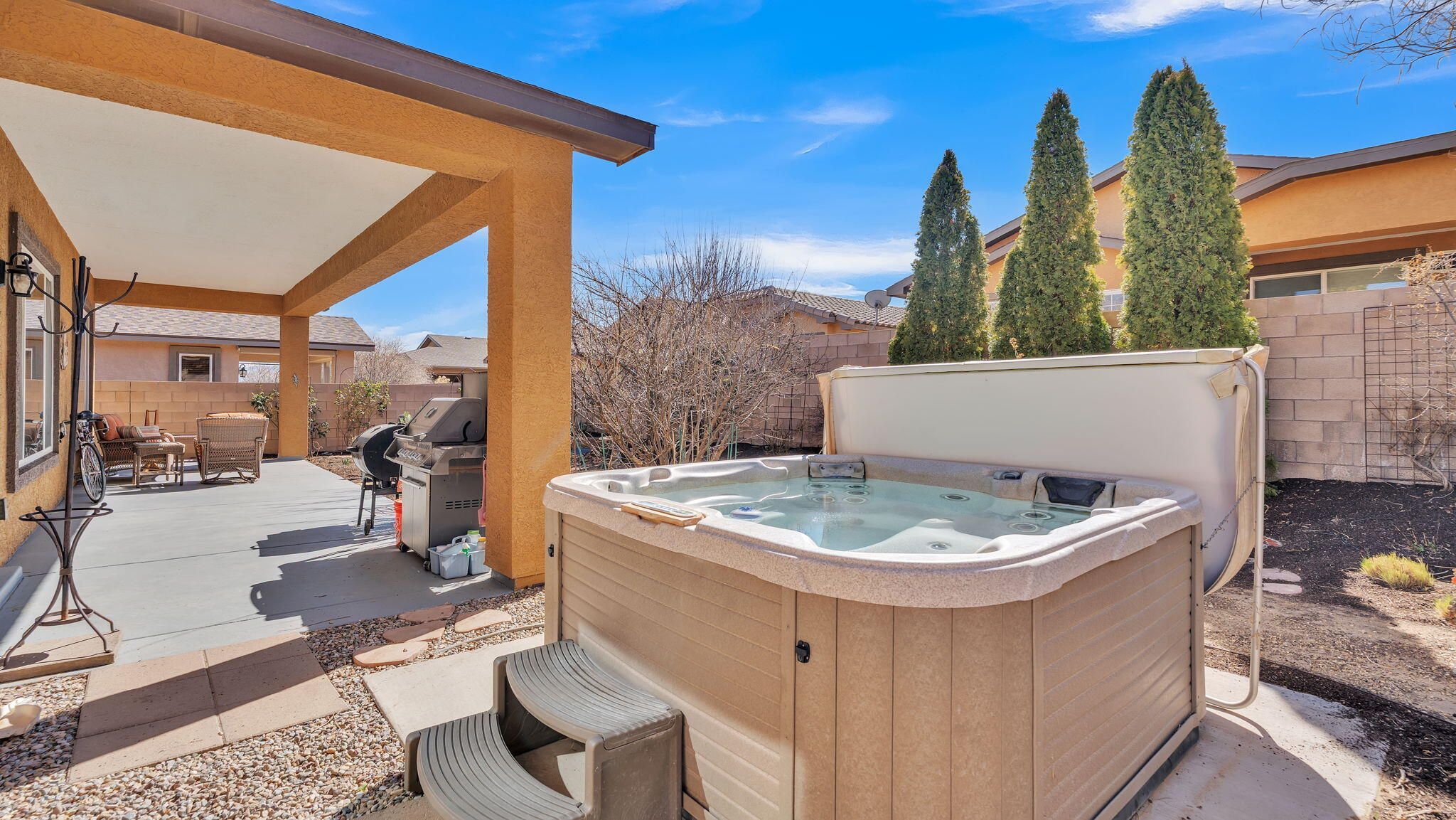 Thoughtfully maintained 2,240 sq ft home built in 2014 and lovely cared for by the original owner, located in the premier 55+ community of Jubilee Los Lunas. This beautifully appointed 2 bedroom ,Office/Den PLUS a Hobby Room home offers 10-foot ceilings, an open floor plan, and quality upgrades throughout. The gourmet kitchen includes custom maple cabinets with crown molding, granite counters, and all stainless appliances, including a 48 bottle wine cooler and GE Cafe convection microwave. The spacious great room showcases a stacked stone gas fireplace and opens to a covered patio and mature garden oasis with a hot tub and gas BBQ. The primary suite features a luxurious 5 piece bath, soaking tub, walk-in shower, and large closet. Extended garage provides a 4' workspace with 240V wiring