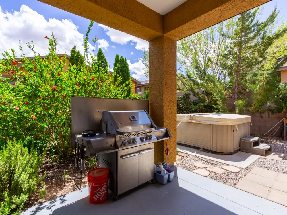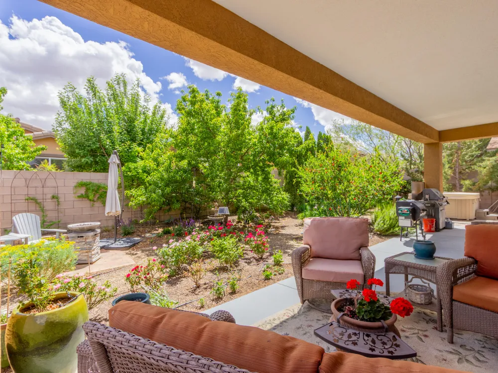 This 2132 sq ft w/attached casita is a MUST SEE! The mature landscaping in the deeper backyard makes for a serene outdoor space w/a hot tub that creates a challenge to decide whether to enjoy your time in the comfort of this well-appointed home or relax outside! Additional 108 sq ft in the heated/cooled/finished casita gives you added space on top of the open & generous 2 BR + den plan w/10 ft ceilings.4 ft garage extension too! Newer dishwasher, 40 bottle wine cooler, GE Cafe Advantium micro/convection oven compliment the gas range/convection oven in the kitchen. Stacked stone gas FP in generous great room. NG grill in back stays. Knockout rose garden, Mediterranean herb garden & mature Alberta peach tree! PLUS all the fabulous amenities in this award-winning 55+ Active Adult Community!