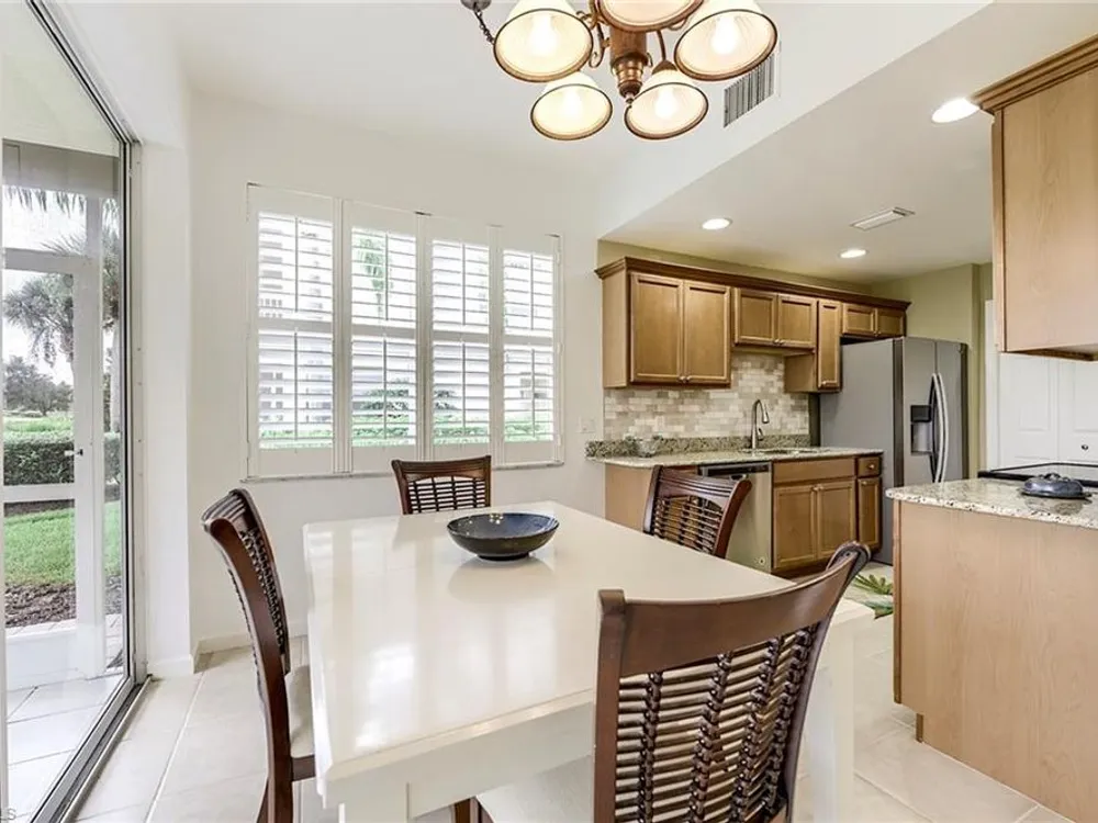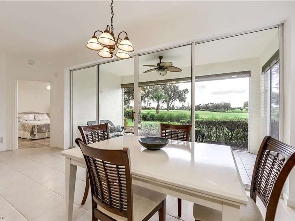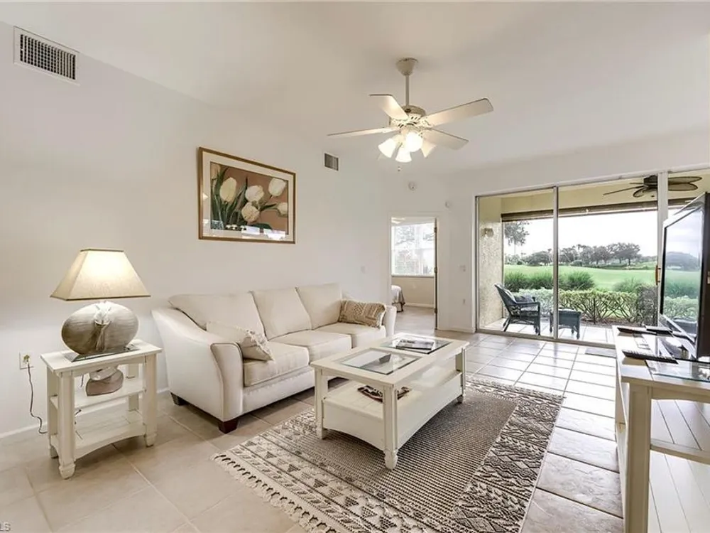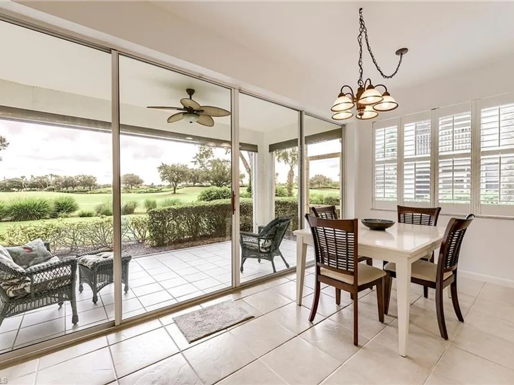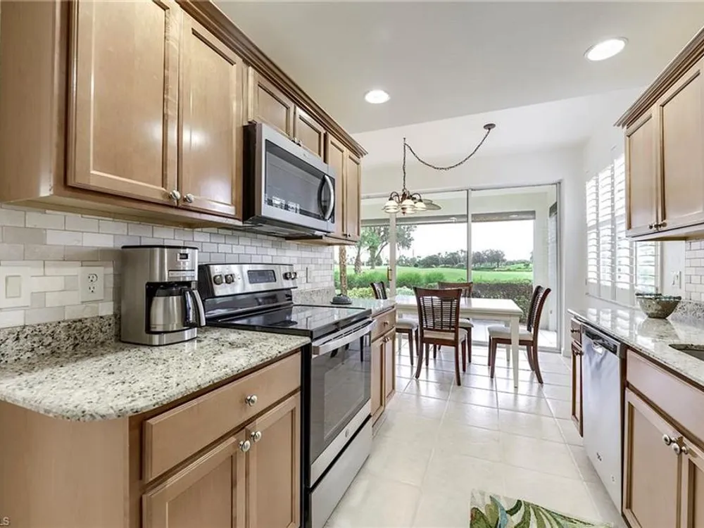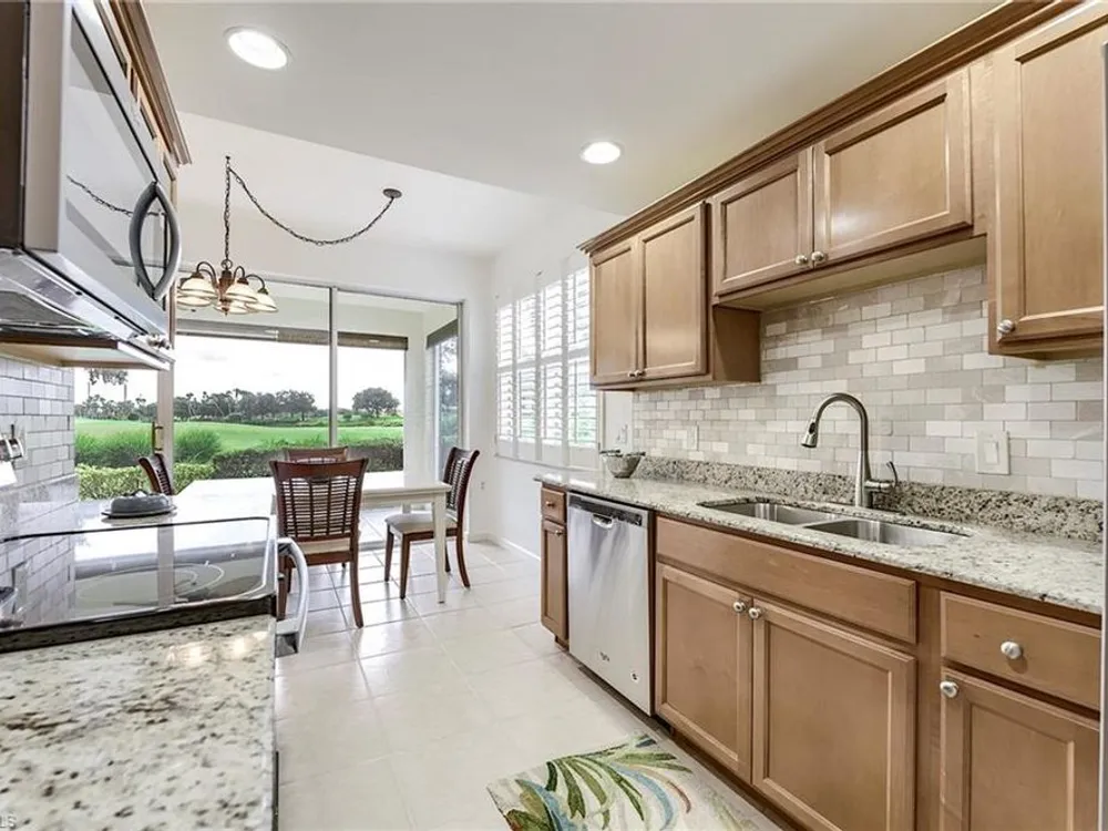 If you're looking for an incredible condo, you're in luck! This furnished downstairs condo with attached 2 car garage has a magnificent view of the putting green on the 4th hole of the Old Orange golf course. On top of that, the condo has been recently renovated so you don't have to worry about doing a bunch of remodeling after you move in. The kitchen has been updated with new granite counters, tile backsplash, new stainless steel appliances and sink. Other features in this 2 bedroom plus den/2 bathroom condo include plantation shutters on most windows, new tile plank flooring in the master bedroom and bathroom, freshly painted interior of the condo, new lanai cage with large picture window screen giving you an enhanced view of the beautiful Old Orange golf course, sun screens on the lanai, cabinets installed in the laundry room for extra storage, new garage door opener and compression springs and new insulated garage door to help keep out the Florida heat! Don't spend another winter up north freezing and worrying about icy roads when you could be sitting on your lanai with your morning coffee, watching another breathtaking sunrise over the golf course. Your biggest dilemma living in Verandah is trying to figure out how you're going to spend your day. Will it be golf, tennis, pickleball, walking or riding your bike on our 9 miles of paths, kayaking, swimming or getting a workout in our state of the art attended fitness center? The choices are endless!
