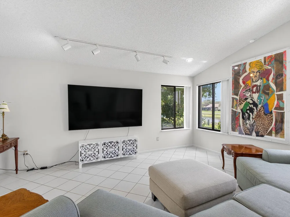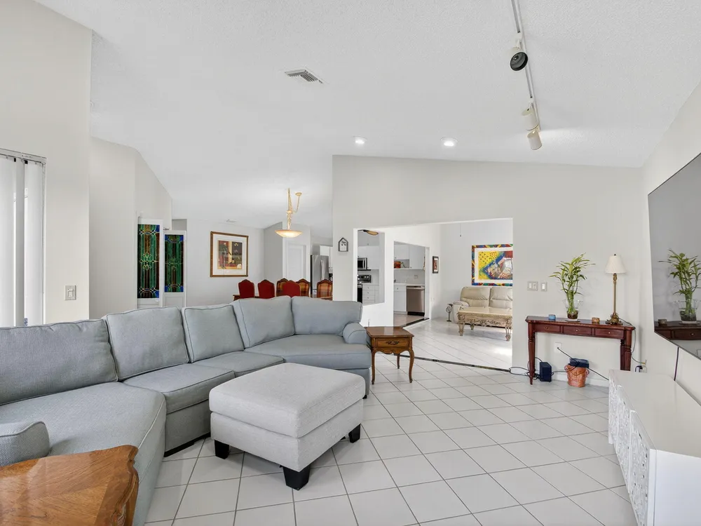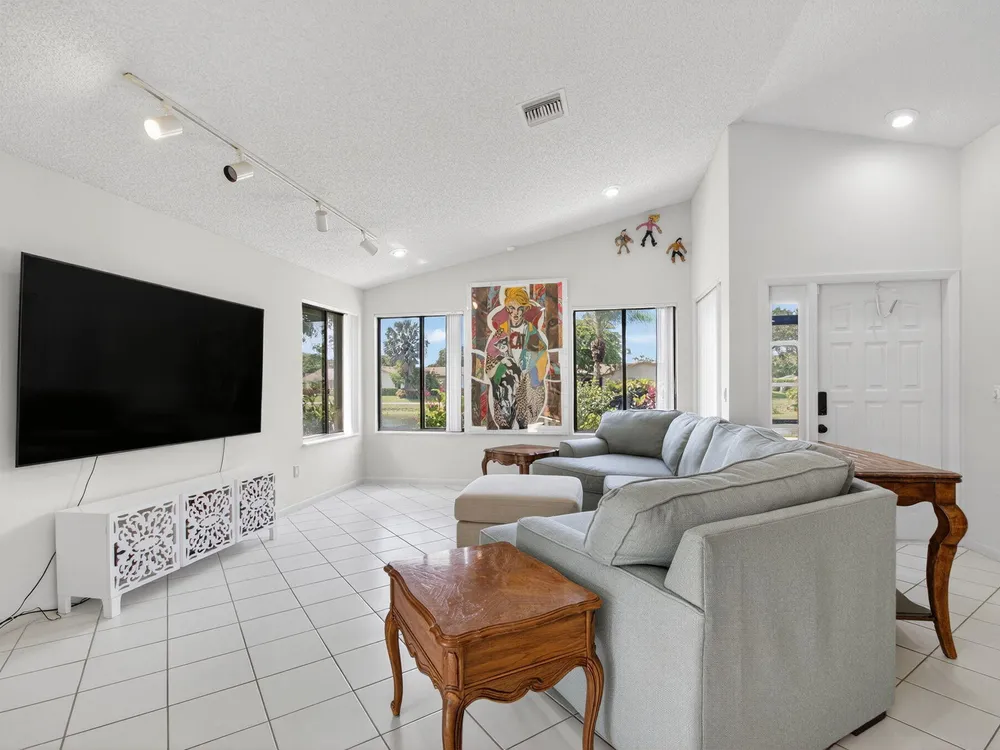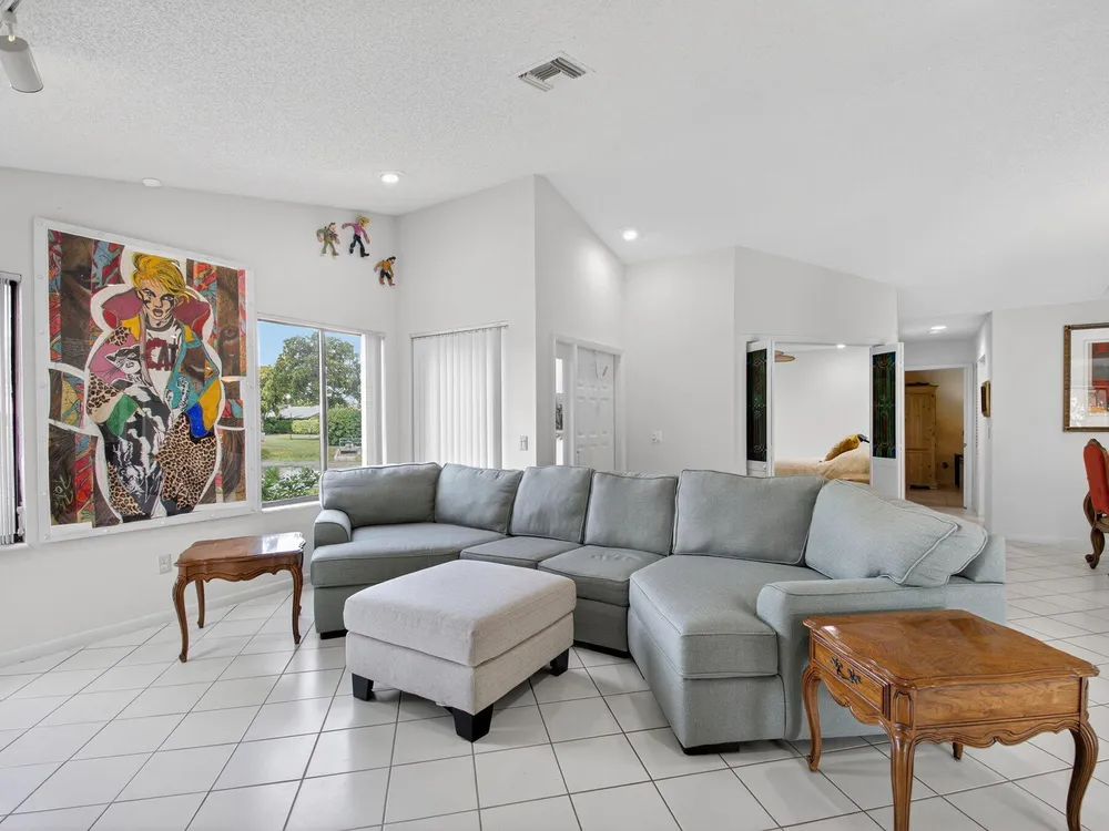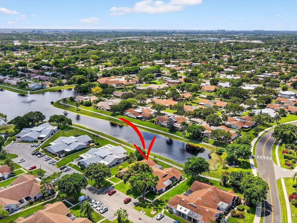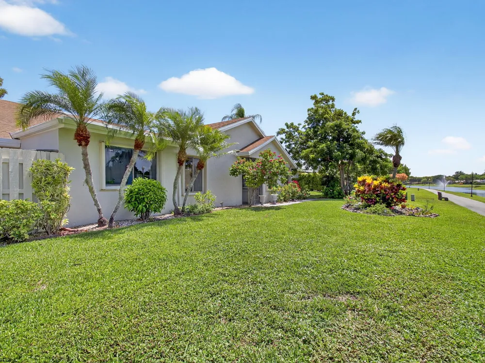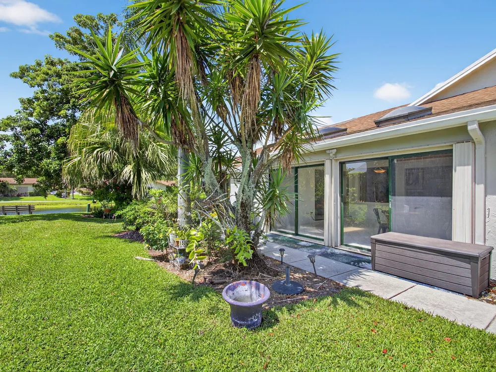 Beautifully situated on a tranquil LAKE, this spacious one-story, CORNER villa offers 2 bedrooms, 2 bathrooms, and a flexible den/home office. With over 1,600 sq. ft. of living space, the home is filled with natural LIGHT thanks to its desirable SOUTH-FACING exposure. Enjoy peaceful LAKE VIEWS from nearly every room. The OPEN-CONCEPT layout features a combined living, dining, and family area--ideal for entertaining. VAULTED CEILINGS create a bright, airy ambiance. The SPLIT FLOOR PLAN ensures privacy, and the enclosed Florida room offers a perfect space for a den, office, or additional lounge area. Located in the pet-friendly, man-gated community of Rainberry Bay, residents enjoy miles of scenic walking trails, many along beautiful lakes. Amenities include 5 heated pools, a theater, spa,
