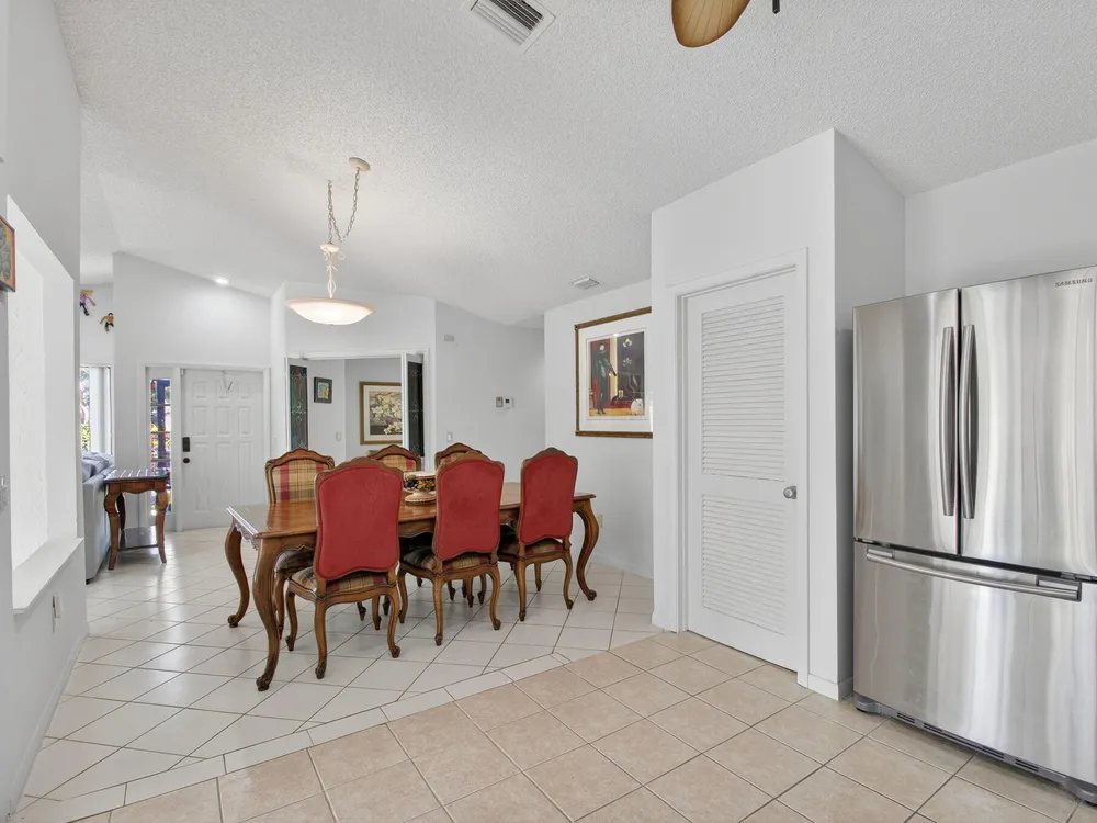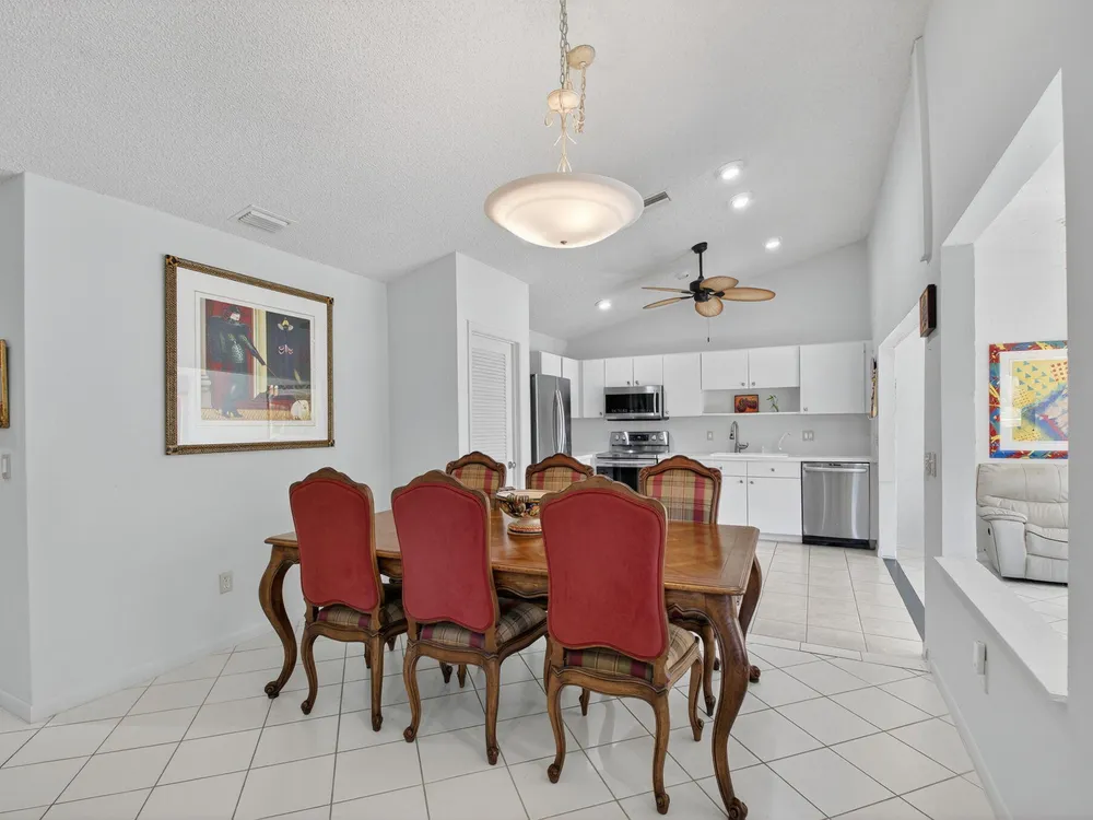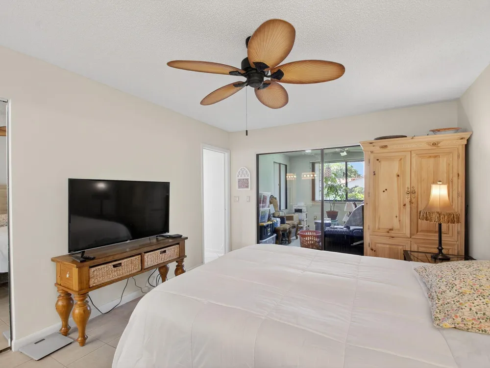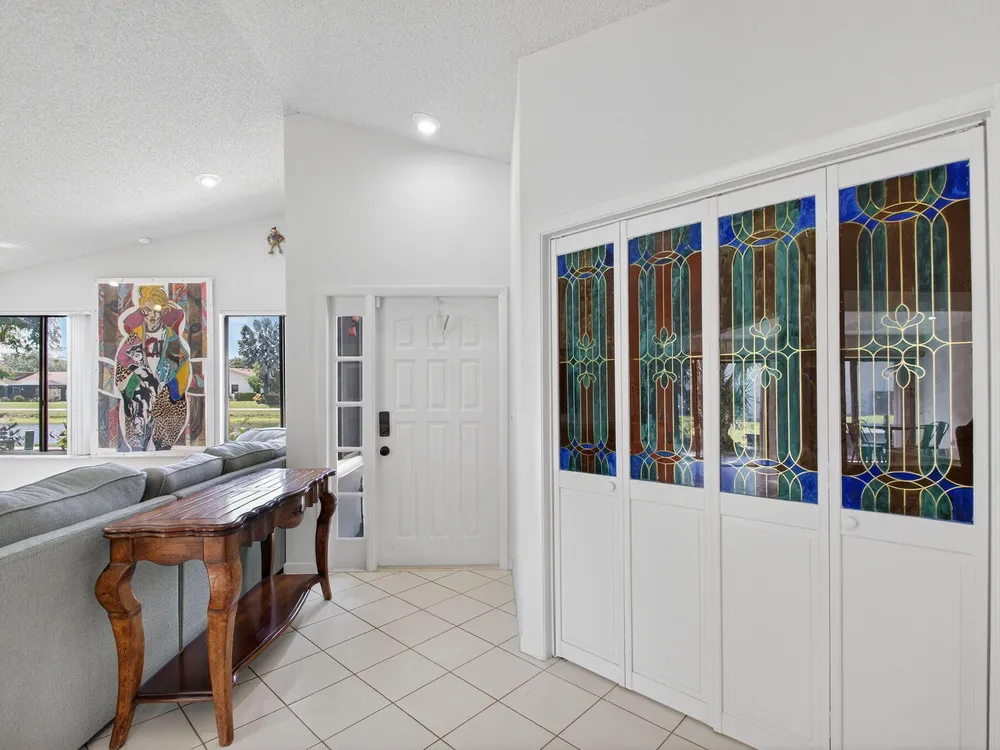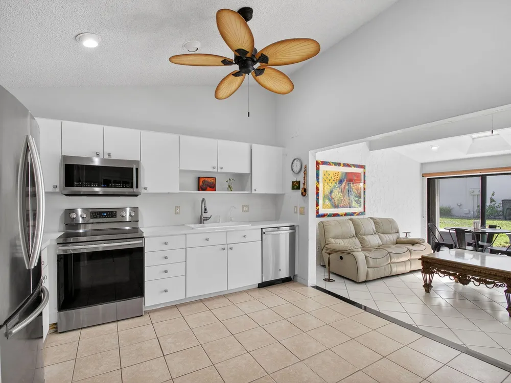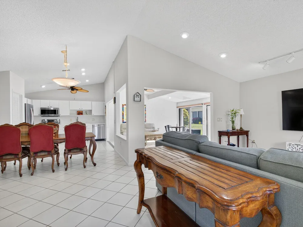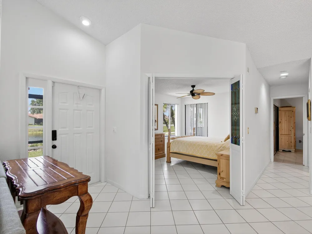 Beautifully situated on a tranquil LAKE, this spacious one-story, CORNER villa offers 2 bedrooms, 2 bathrooms, and a flexible den/home office. With over 1,600 sq. ft. of living space, the home is filled with natural LIGHT thanks to its desirable SOUTH-FACING exposure. Enjoy peaceful LAKE VIEWS from nearly every room. The OPEN-CONCEPT layout features a combined living, dining, and family area--ideal for entertaining. VAULTED CEILINGS create a bright, airy ambiance. The SPLIT FLOOR PLAN ensures privacy, and the enclosed Florida room offers a perfect space for a den, office, or additional lounge area. Located in the pet-friendly, man-gated community of Rainberry Bay, residents enjoy miles of scenic walking trails, many along beautiful lakes. Amenities include 5 heated pools, a theater, spa,