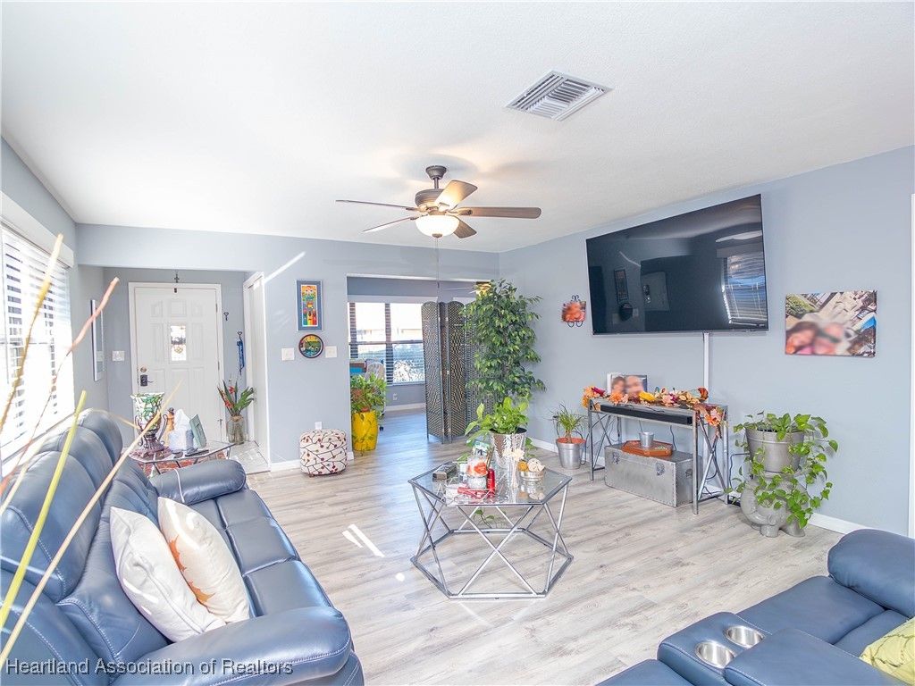 Welcome to Cormorant Point in Golf Hammock, one of Sebring’s most desirable 55+ communities. This beautifully maintained 2-bedroom, 2-bath home offers bright, comfortable living with thoughtful updates throughout. Step inside to a welcoming multi-function front room wrapped in windows—perfect as a cozy sitting area, office, or hobby space. The home features stylish laminate flooring throughout and generous windows that fill each room with natural light. Both bathrooms have been tastefully updated with granite-topped vanities, modern cabinetry, large mirrors, and beautifully tiled showers and flooring. The spacious kitchen offers plenty of room for cooking and gathering, and a brand-new sliding glass door leads you outside to the backyard. A concrete patio slab provides the ideal spot for grilling, relaxing, or soaking up the Florida sunshine. Major updates include a new roof installed in March 2022 and a new A/C system installed in October 2025, offering peace of mind and added value. Well-maintained and move-in ready, this lovely home offers comfort, convenience, and the easy lifestyle you’ll love in Golf Hammock’s Cormorant Point. Don’t miss your chance to make it yours!