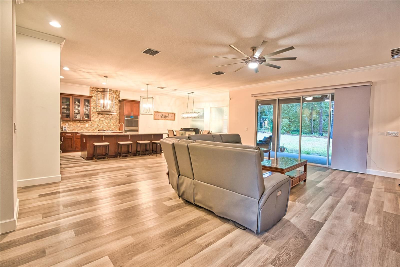 Experience the Best of Mount Dora living at Sullivan Ranch! This custom-built home in a GATED COMMUNITY is where elegance meets everyday comfort! Upon entry, you will find all bedrooms on the first floor with a split floorplan design and open-concept that showcases a gourmet kitchen with designer finishes that include a gas cooktop with pot-filler and stainless-steel range hood and appliances. Enjoy entertaining at the huge 10-FOOT ISLAND or dining in the eat-in apportioned area along side of the kitchen while enjoying the seamless flow into spacious great room, offering fabulous site-lines throughout! Retreat to the large owner’s suite, featuring an unbelievable walk-in shower that rivals any spa, with dual vanities and separate water-closet. Along with 3-additional spacious bedrooms, you will discover a getaway-style loft and bonus room upstairs, ideal for a home office, playroom, or media space. Step outside to a large lanai that is fully prepared with rough-ins for a full outdoor-kitchen experience, overlooking peaceful surroundings. The corner lot offers a lengthy driveway and oversized 2-car garage equipped with custom electrical wiring for added convenience. Sullivan Ranch offers tranquility and serenity that extends to the trails, community pool and wonderfully equipped clubhouse while affording you quick access to fine dining, shopping, and beautiful Downtown Mount Dora. Enjoy the scenic trails, parks, rolling hills, and other amenities that are sure to impress all who visit. Experience all this community has in a custom-built home that’s ready to be yours today!