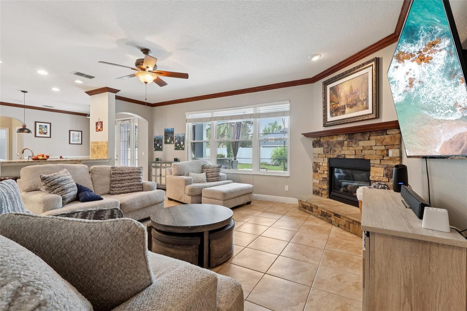Welcome to this stunning 4–5 bedroom, 3.5 bath home in the highly sought-after gated community of Sullivan Ranch in Mount Dora. With an elegant blend of open concept living and defined spaces, this home is designed for both comfortable everyday living and stylish entertaining. As you enter, the beautiful staircase becomes a focal point between the formal sitting room and the spacious family room, where a cozy gas fireplace creates the perfect gathering spot. The chef’s kitchen is a true highlight, featuring double ovens, fingerprint-resistant black stainless-steel appliances, a prep island with sink, breakfast bar, and abundant cabinetry. The convenient design places the garage entry, laundry room, and half bath just steps away. Enjoy seamless indoor-outdoor living with views of the sparkling pool and waterfall from the family room and kitchen. The screen-enclosed lanai is perfect for entertaining, offering a bar with storage, a refrigerator, and plenty of room for family and friends to relax and unwind. Upstairs, the expansive primary suite is a retreat tucked privately at the end of the hallway, complete with an oversized layout and spa-like bath. Two bedrooms share a hall bath, while another bedroom features an ensuite Jack-and-Jill bath connected to the versatile bonus room, ideal as a 5th bedroom, media room, or office. Notable updates include a new roof, double-paned lifetime warranty windows, exterior paint (2022), and all-new kitchen appliances (2024). Every bath is appointed with Moen For Life faucets. Outside, enjoy lush landscaping, gardening space, and a street lined with stately magnolia trees. Sullivan Ranch offers resort-style amenities including a pool, clubhouse, fitness center, playground, splash pad, dog park, and walking trails. Located less than 2 miles from the 429 interchange, you’ll have quick access to Orlando and all of Central Florida, while being just minutes from downtown Mount Dora, known for its lakeside charm, boutique shops, dining, and festivals. This home truly has it all—style, updates, amenities, and location. Don’t miss your opportunity to make it yours!