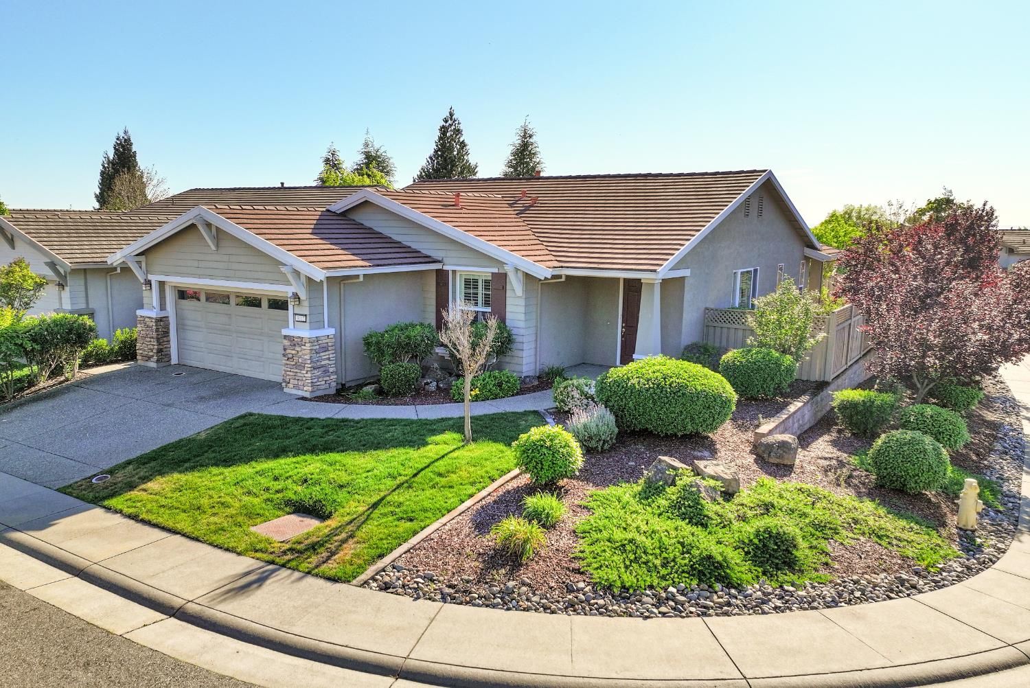 An attractive property in great condition awaits at 3012 Black Hawk, Lincoln, CA, USA, offering a thoughtfully designed living experience spanning 1673 square feet. The expansive open floor plan creates an inviting atmosphere, perfect for daily routines and engaging pursuits. Within this bright expanse, the kitchen stands ready with its stone countertops, a convenient stovetop, and a striking backsplash that complements the generous large kitchen island, providing ample space for culinary endeavors and casual gatherings. Retreat to the comfort of the bedroom, a private sanctuary designed for peaceful repose, featuring the convenience of an ensuite bathroom. This private bath offers a refreshing walk in shower, providing an invigorating start to the day or a soothing end to it. Thoughtful storage is provided by a spacious walk-in closet, ensuring organization and ease of access. The property provides a second bathroom, contributing to the overall comfort and utility of the dwelling, totaling two well-appointed bathrooms and two bedrooms. Beyond the interior, the property extends its allure to the outdoors, where a welcoming porch invites moments of quiet contemplation. A separate patio area offers additional space for enjoyment, overlooking a meticulously fenced backyard that ensures privacy and serenity. The home also includes a dedicated laundry room, enhancing the practicality of daily living, all beneath a durable tiled roof, situated within a pleasant residential area. This attractive property truly offers a harmonious blend of refined comfort and engaging outdoor appeal, ready to inspire a distinctive living experience. Located in one of Lincoln's premier active adult communities, residents enjoy access to world-class amenities including golf, fitness centers, tennis, pools, walking trails, and a vibrant social calendar. This is more than a home it's a lifestyle.