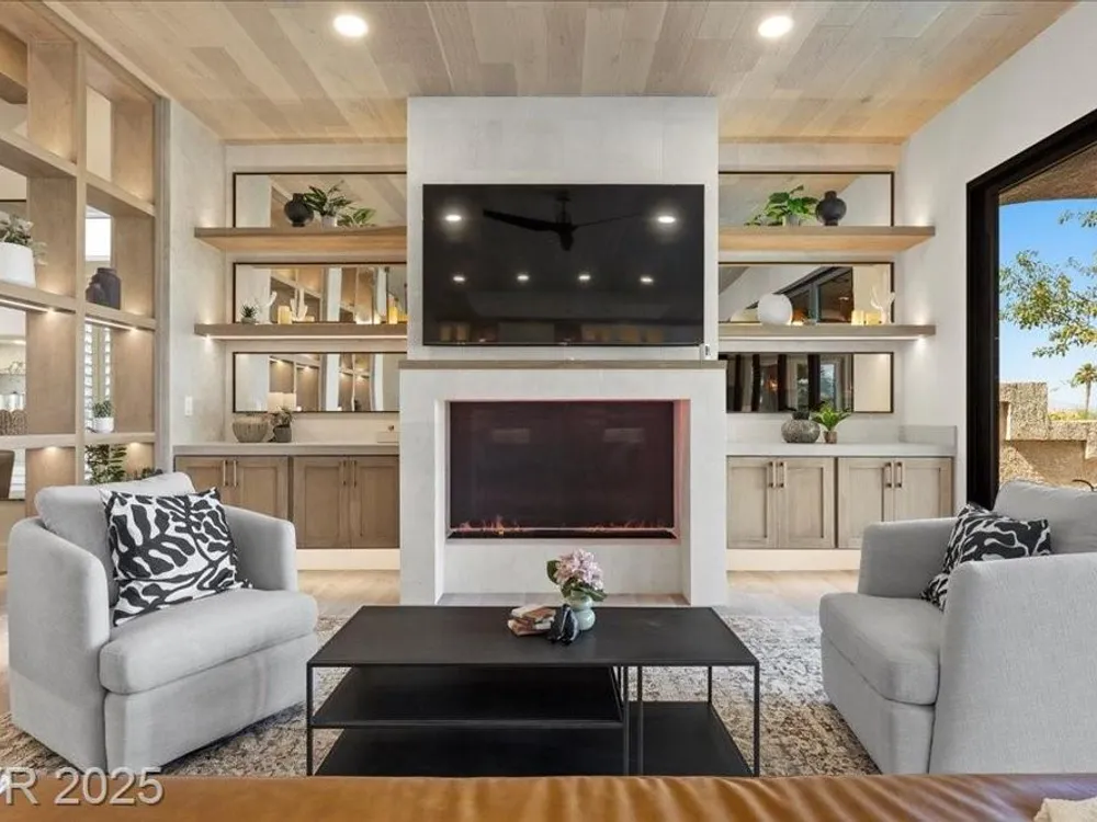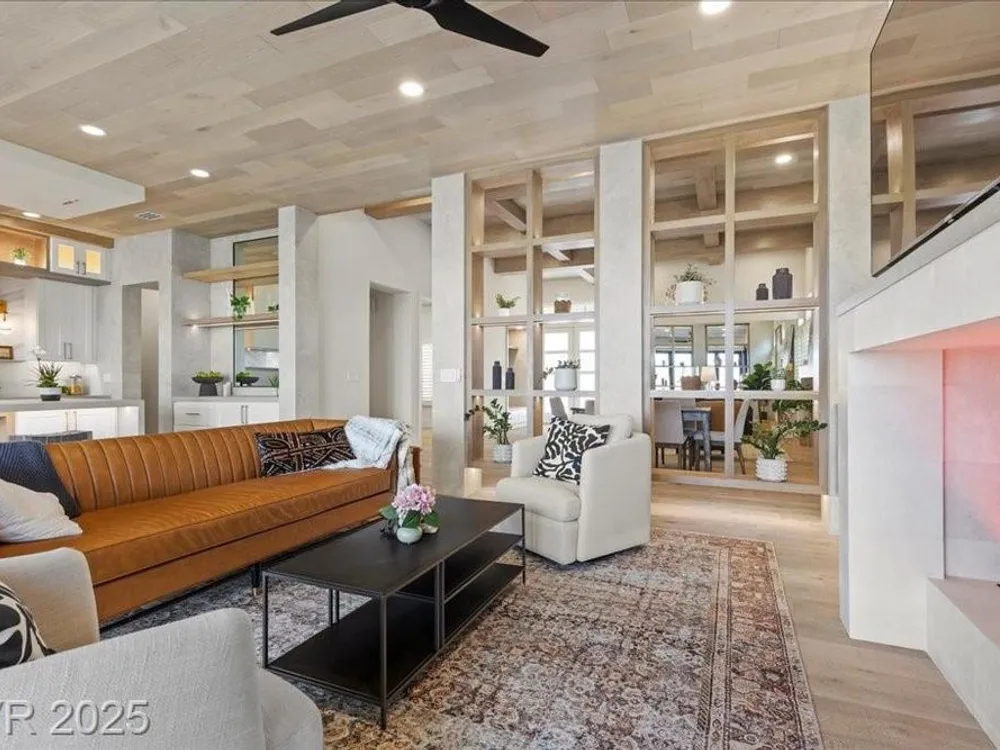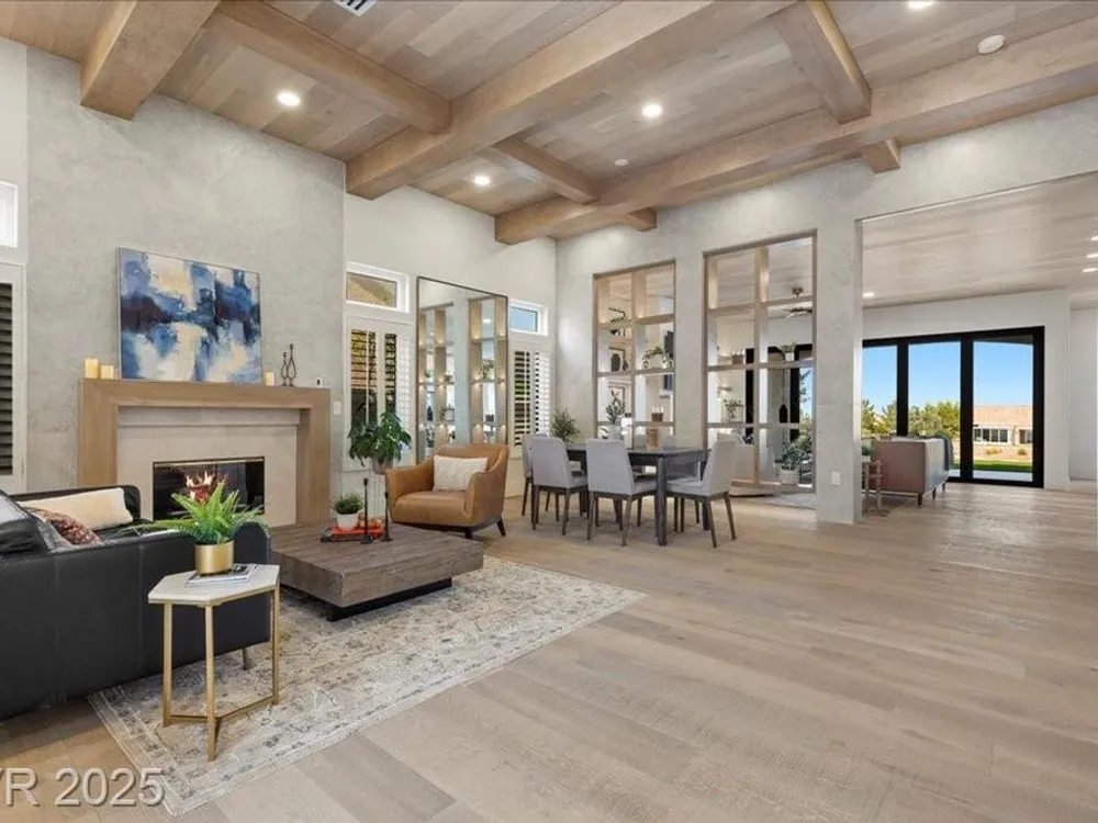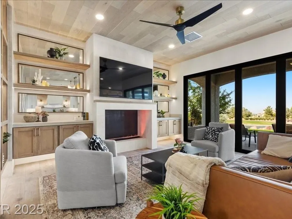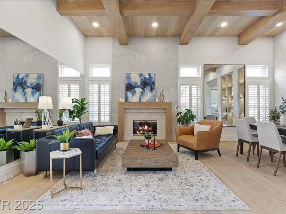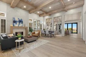 Newest Paragon Creation, RARE 4 BR, Sun City Summerlin on Golf Course. Paragon AMG, the top provider of premium renovated homes in LV, built its reputation on the quality of its design, materials & workmanship. Experience layered accent lighting, cozy spaces defined by custom carpentry & elegant indoor/outdoor living via multiple Panoramic doors. The roomy 2,933 SF interior features wood-beam ceilings & designer accents that add texture & depth to the living space. Chef's kitchen w extra-large island & walk-in pantry offers both style & function for culinary enthusiasts. The primary suite w accent walls, beautiful lighting, fireplace, & spa-like bathroom provides a relaxing retreat. With spacious bedrooms, 3 full luxurious bathrooms, an oversized 2-car garage w golfcart space… this exceptional home features contemporary upgrades & lovely views of the golf course & pond. Don't miss this opportunity to own an extraordinary property in one of Las Vegas’ most desirable 55+ communities.