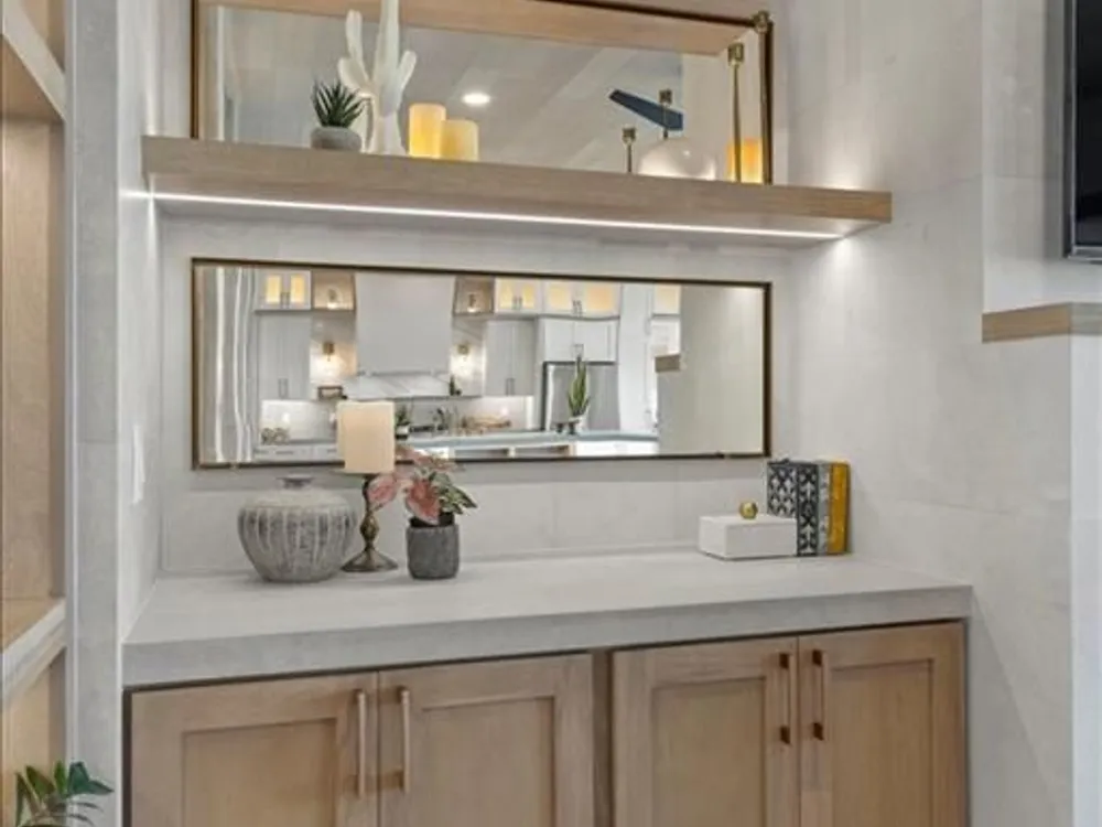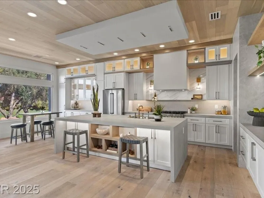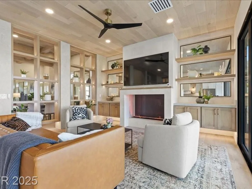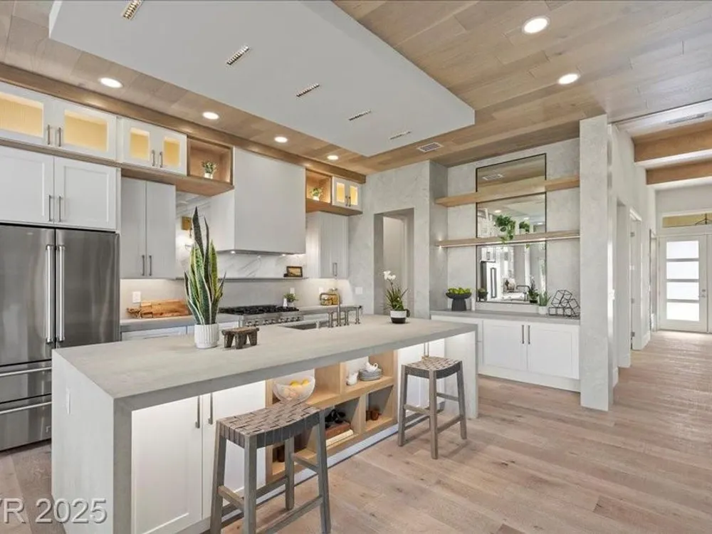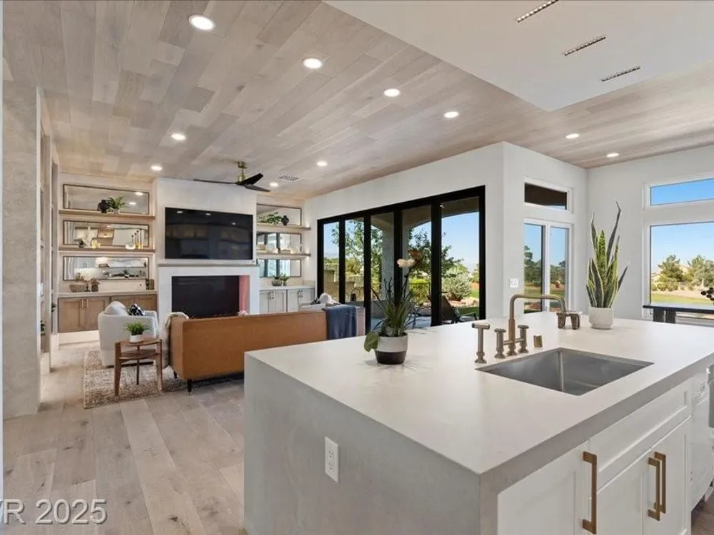 Newest Paragon Creation, RARE 4 BR, Sun City Summerlin on Golf Course. Paragon AMG, the top provider of premium renovated homes in LV, built its reputation on the quality of its design, materials & workmanship. Experience layered accent lighting, cozy spaces defined by custom carpentry & elegant indoor/outdoor living via multiple Panoramic doors. The roomy 2,933 SF interior features wood-beam ceilings & designer accents that add texture & depth to the living space. Chef's kitchen w extra-large island & walk-in pantry offers both style & function for culinary enthusiasts. The primary suite w accent walls, beautiful lighting, fireplace, & spa-like bathroom provides a relaxing retreat. With spacious bedrooms, 3 full luxurious bathrooms, an oversized 2-car garage w golfcart space… this exceptional home features contemporary upgrades & lovely views of the golf course & pond. Don't miss this opportunity to own an extraordinary property in one of Las Vegas’ most desirable 55+ communities.