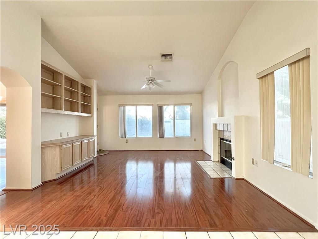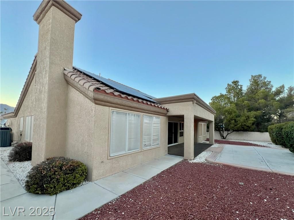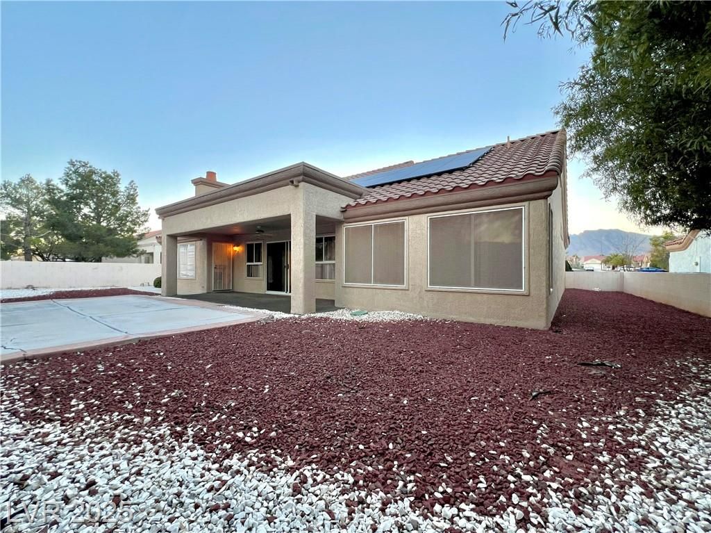 AMENITIES GALORE! THREE BEDROOM SUN CITY SUMMERLIN HOUSE WITH SOLAR OWNED! One of the larger Sun City models at over 2100 square feet, complete with large kitchen and breakfast nook, formal dining and living room and additional family room with fireplace. Large covered patio and low maintenance landscaping front and back. Solar panels are paid off and power bills are low! Laminate and tile throughout, no carpet. All appliances and water filtration system included. Check out the Sun City Summerlin website for a complete list of all amenities, including 3 golf courses, multiple clubhouses, community pools, fitness centers, tennis and pickleball courts. Social clubs capture a wide variety of interest and live entertainment at the Starlight Theater. Roving community security and close proximity to frreeways and downtown Summerlin.