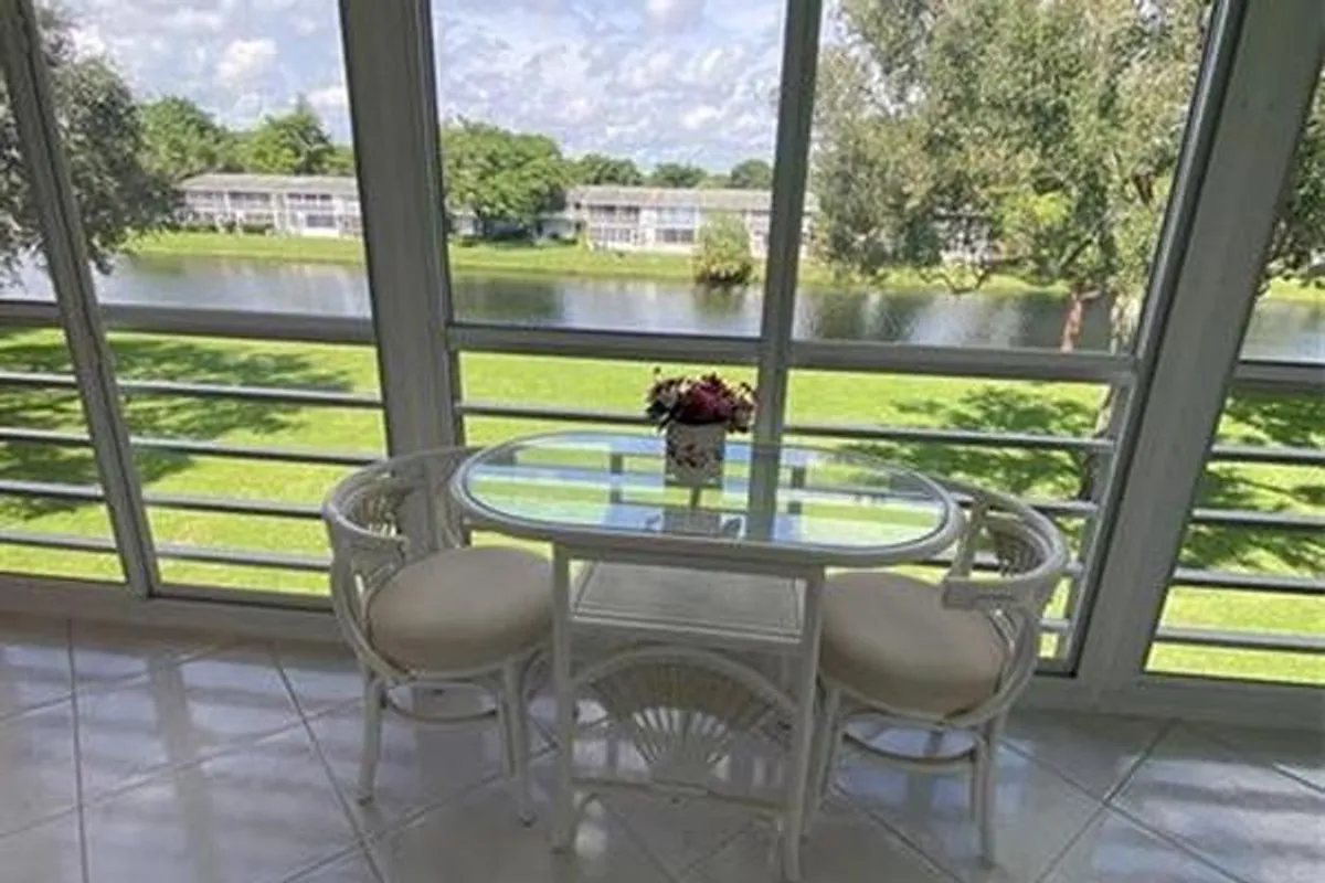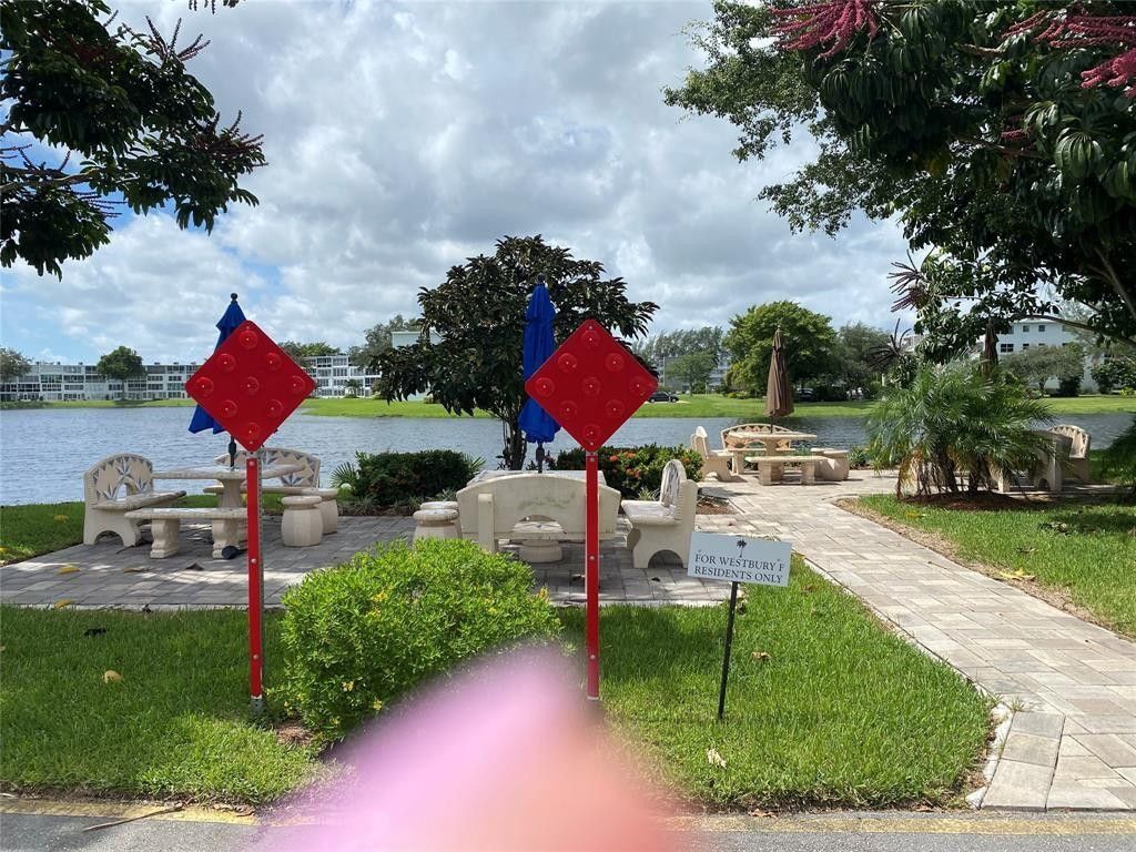 UPDATED, 1/1.5 WITH WATER VIEW IN PRIME WESTBURY AREA! Sold furnished. 785 sq.' condo with galley kitchen that boasts granite counter tops, recessed lighting. White and stainless steel appliances including a dishwasher. A/C is 2022 with permit, tile flooring except in primary bedroom which has carpeting. Updated bathrooms, extra storage on enclosed patio with floor to ceiling sliders, and tranquil water view from your bistro set. Close to Westbury pool, plaza and main gate at Hillsboro Blvd. Building boasts 3 common area patios on the water for an early evening spirit or meal. PROOF OF FUNDS AND FICO SCORE TO BE PROVIDED WITH ALL OFFERS.