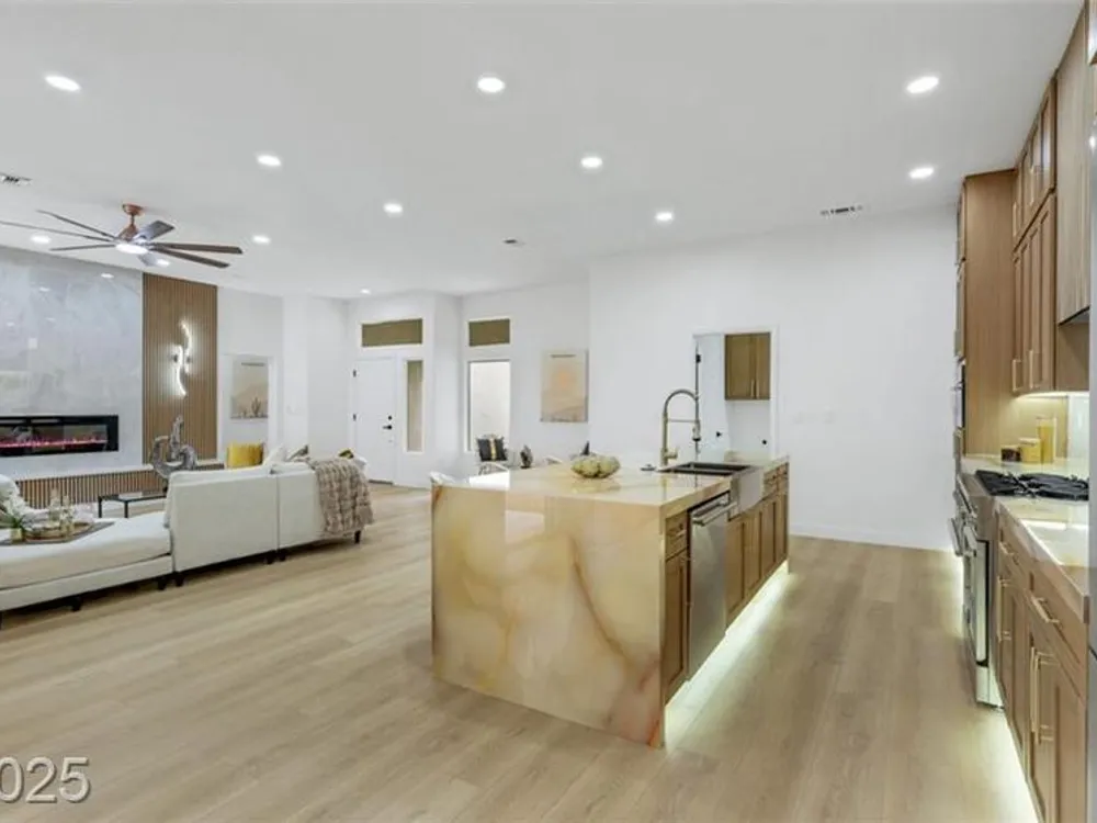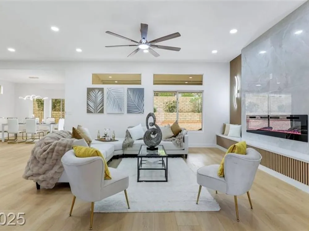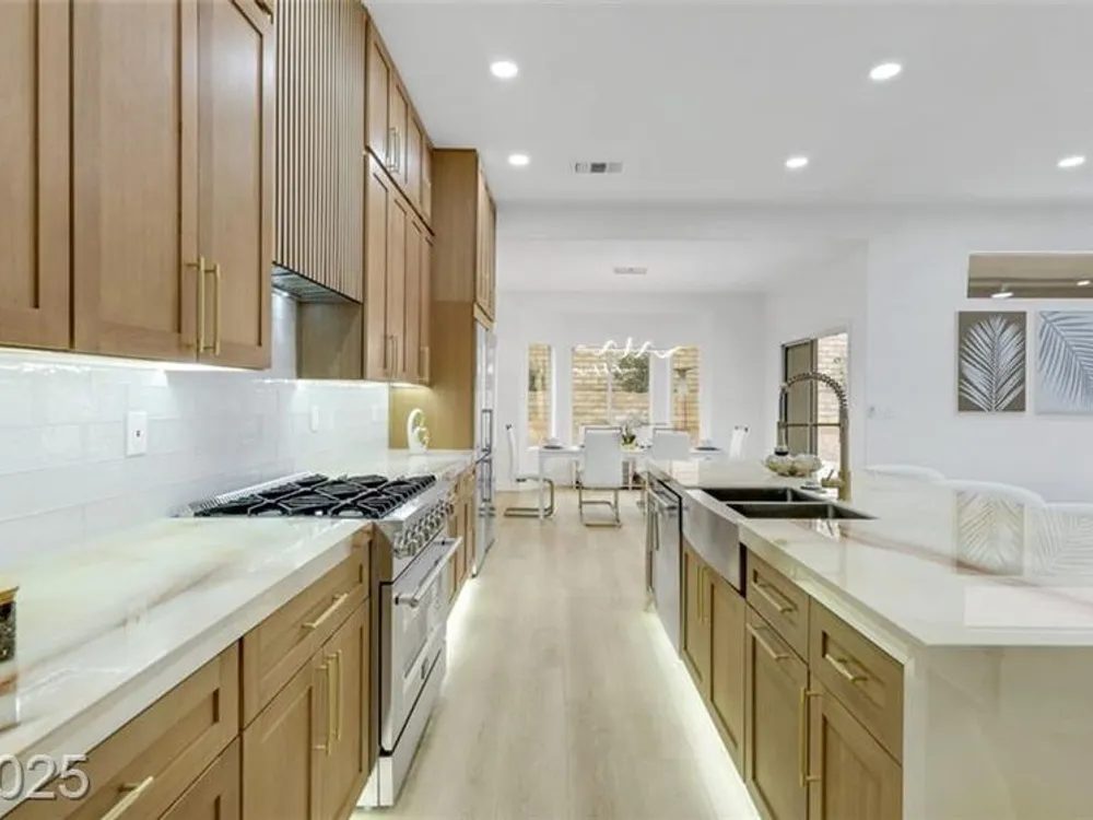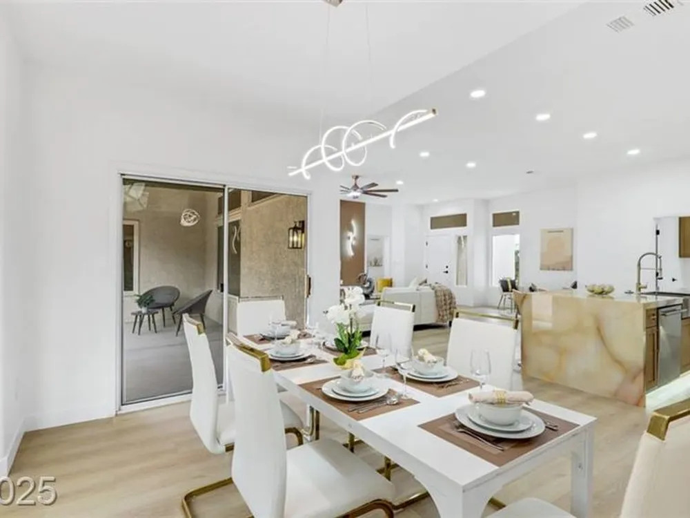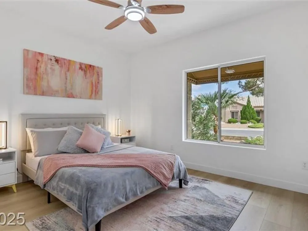 This updated single-story at 3013 Abercorn Dr sits right in the heart of Sun City Summerlin, offering afresh, move-in-ready feel in one of the community’s most convenient spots. Inside, you’ll find a bright,open layout with fresh finishes, new flooring, and a gourmet kitchen that shines with custom porcelaincounters and stainless steel appliances. Both bathrooms have been tastefully remodeled with uniquelyelegant finishes. Enjoy low-maintenance living in this 55+ community with golf, pools, fitness centers, andendless social activities just around the corner. You’re also only a short drive to shopping, dining, and theLas Vegas Strip. All furniture included!
