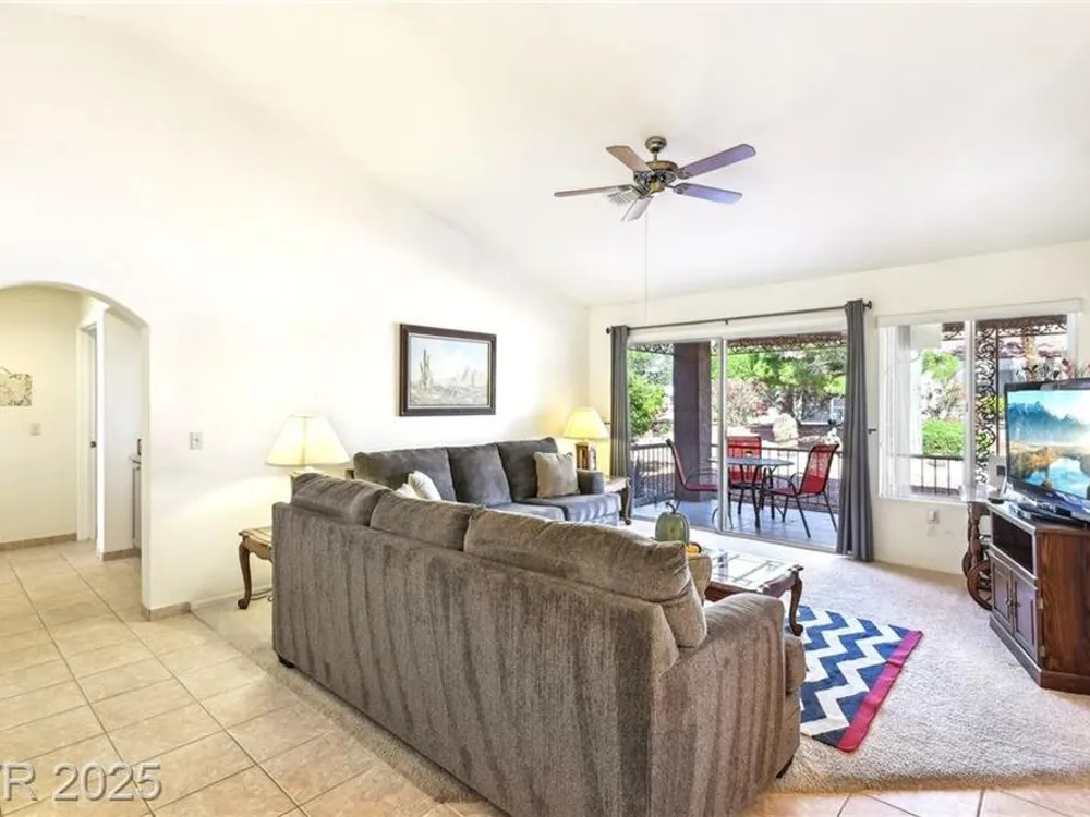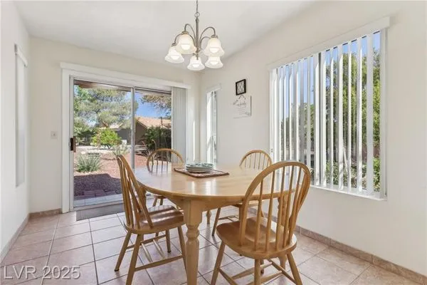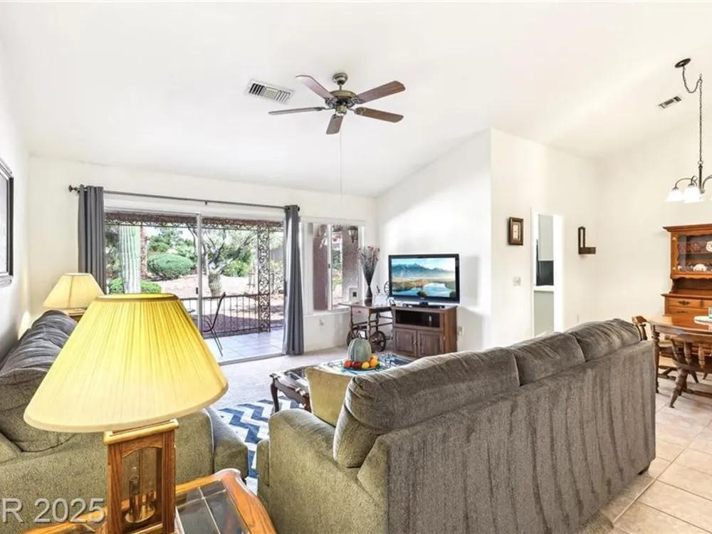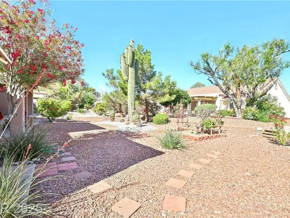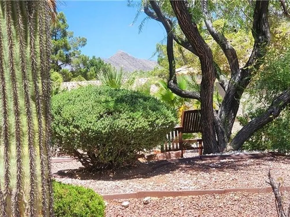 SFR 2/2/2 w/space for Golf cart parking in garage. Come! Spread your wings to the flow of TILES path from Hallway to Kitchen, to Office/Hobby Room with Sink, and mostly Tiles Throughout the house. SPACIOUS Almost 1,400 sq.ft. with EXTRA Sliding Door from Kitchen/Nook & Another Access Door into Garage. Square Feet built is shown in County Tax Assessor. Fully Equipped with all GOOD Things, including Fruitful & Desert Landscaping e.g. Apricots, Pomegranates, Lilac, growing Fig Tree, Mini-Vineyard/Garden. GIANT Saguaro & Joshua. Peaceful Surroundings. Cute Wild Rabbits Hop Around. Feature of Natural Gas Line coming out of the house at Patio for Future BBQ (Great $ Value). Custom Railings at Patio & Awnings. This is 55+Sun City Summerlin. Discl: Owner-Licensee.