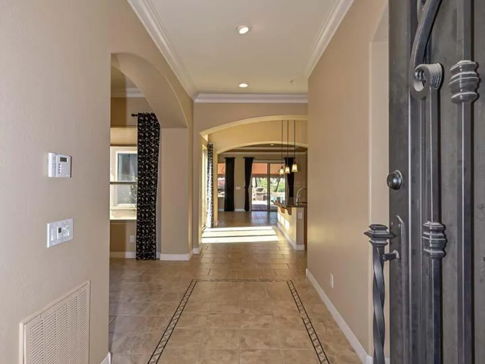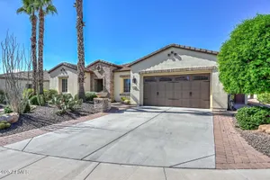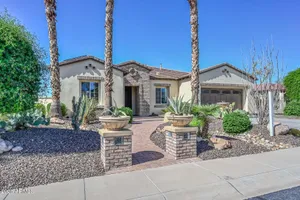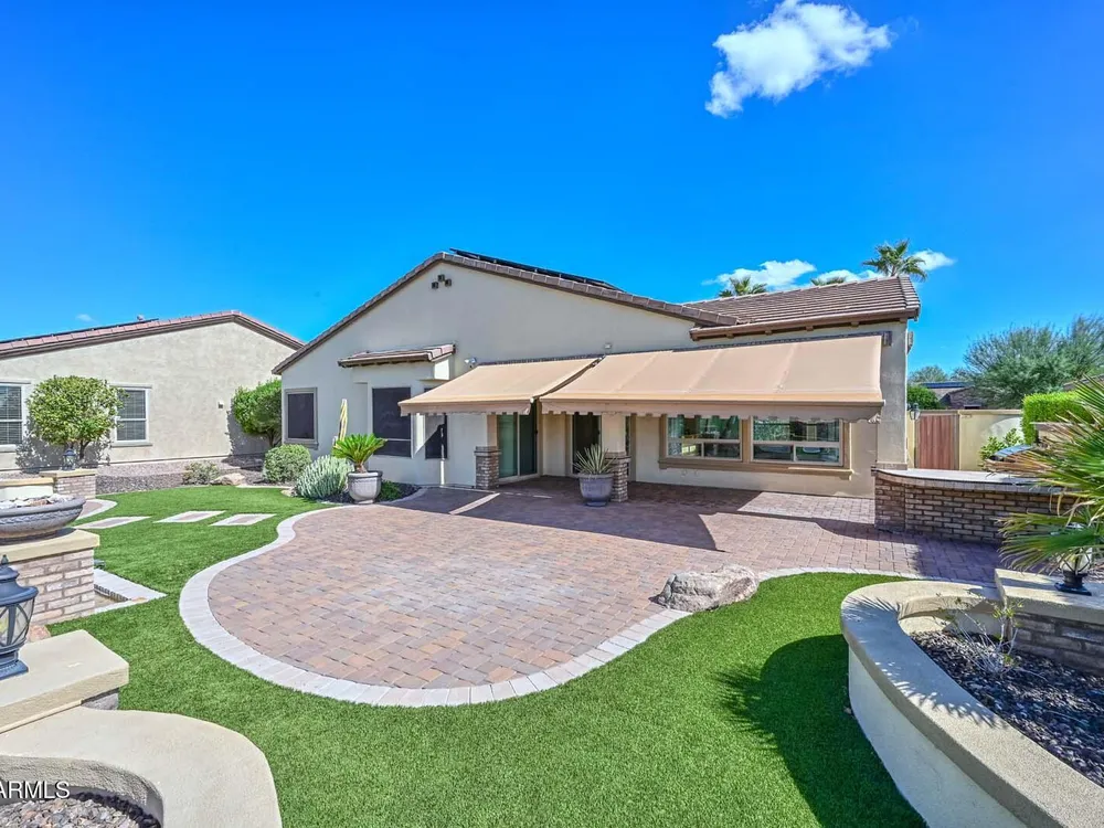 Beautiful & Classic rarely available ''Tarragona'' home with 12' Ceilings in Kitchen double island in kitchen with stainless appliances backsplash and gas cooktop. Enter into the house through a beautiful custom metal security door. Custom cabinets in the office. Home backs up to a huge open area behind. Fantastic backyard with a water feature, retractable awnings and open space behind. Private courtyard off of kitchen with pavers and water feature. Crown Molding throughout and Hunter Douglas remote shades. Private and quiet Cul-de-sac lot. New HVAC 2025, and new Hot Water Heater in 2024 along with 20 year Prepaid Solar. Garage cabinets and 2.5 car Garage, Sink in laundry room. Split Master bedroom with walk-in closet dual sinks and separate shower and tub as well as a private ''Flex Room Awesome Guard Gated Golf Course Community with tennis, pools, spas and Club House. This home feels like a custom home with the high ceilings, wonderful family room and covered patio to the back of the home