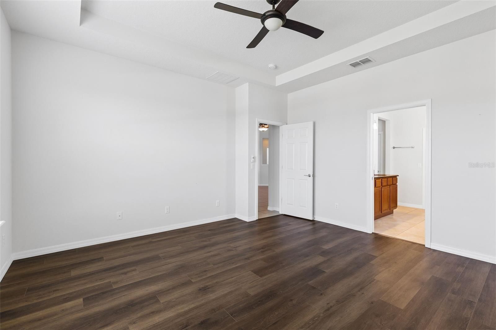 - Ceiling Fan(s), Open Floorplan, Main Level Primary, Solid Surface Counters