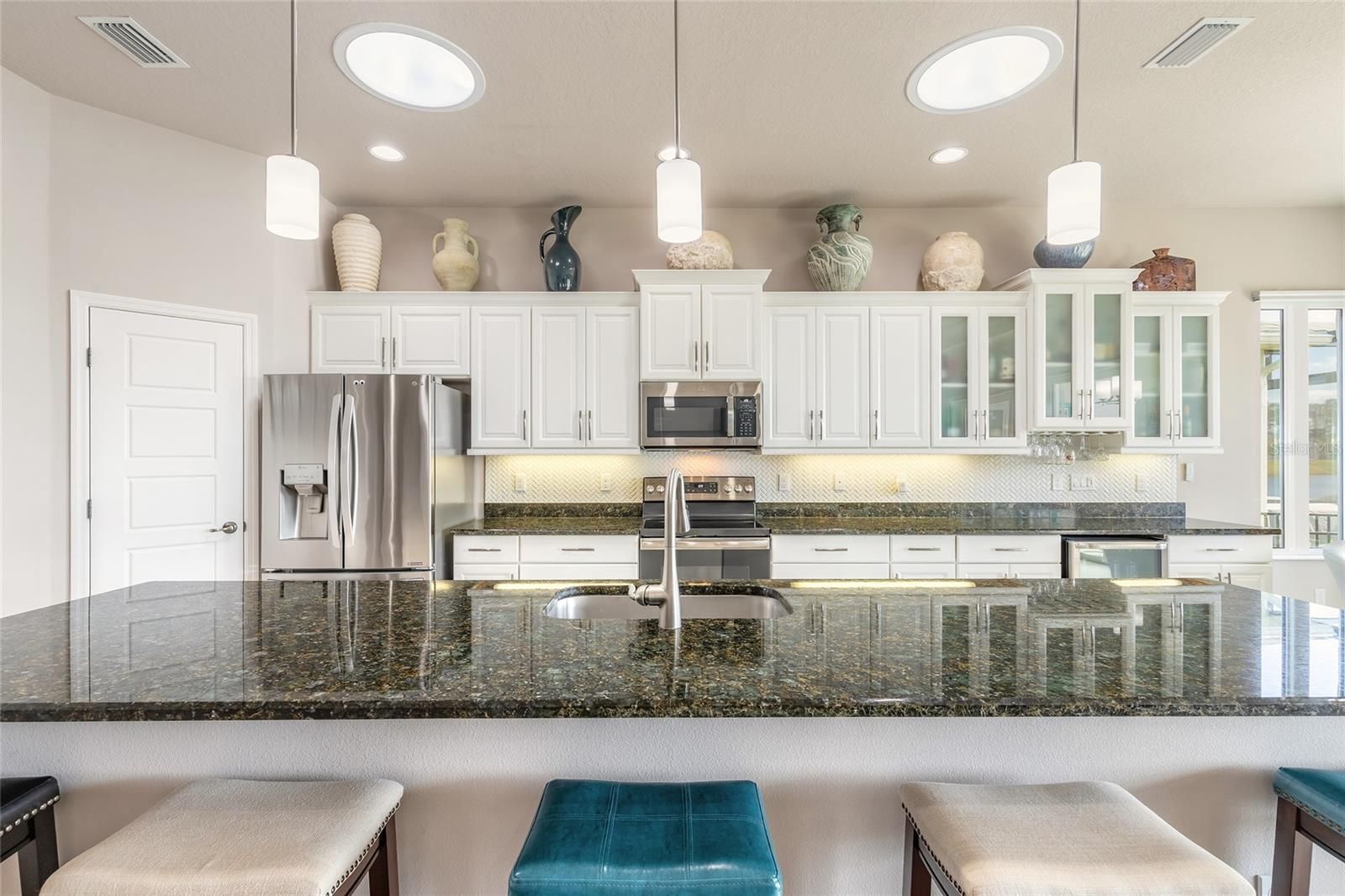 - Ceiling Fan(s), High Ceilings, Open Floorplan, Split Bedrooms, Stone Counters