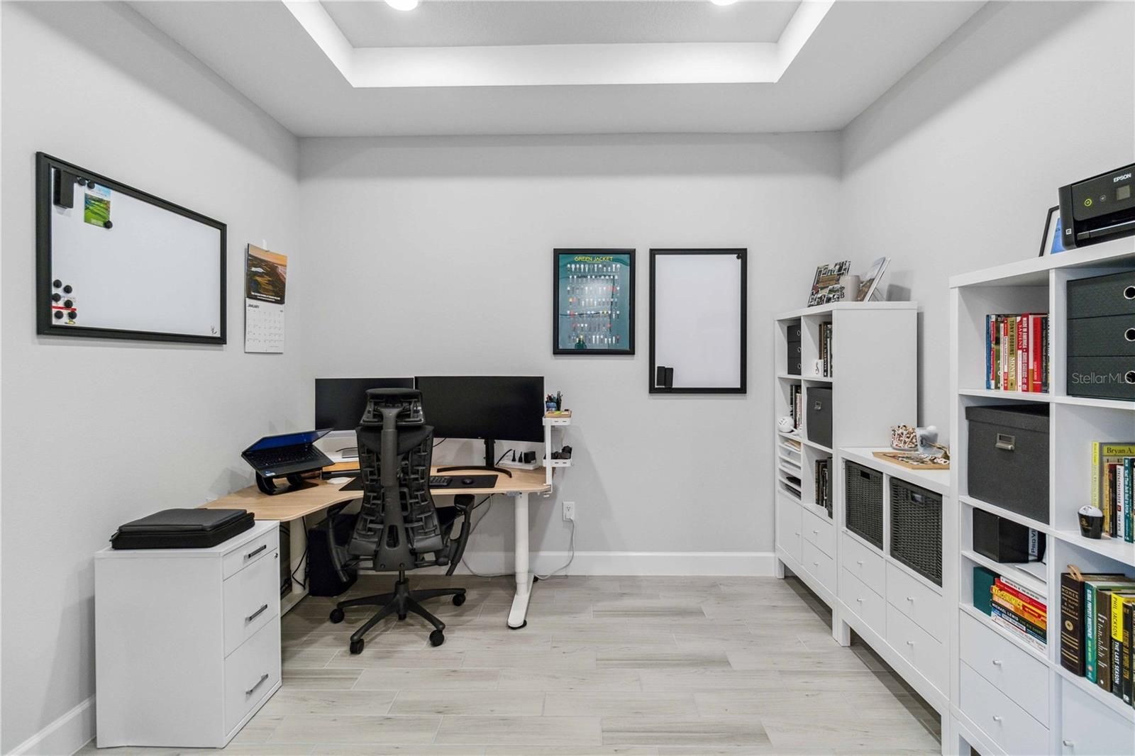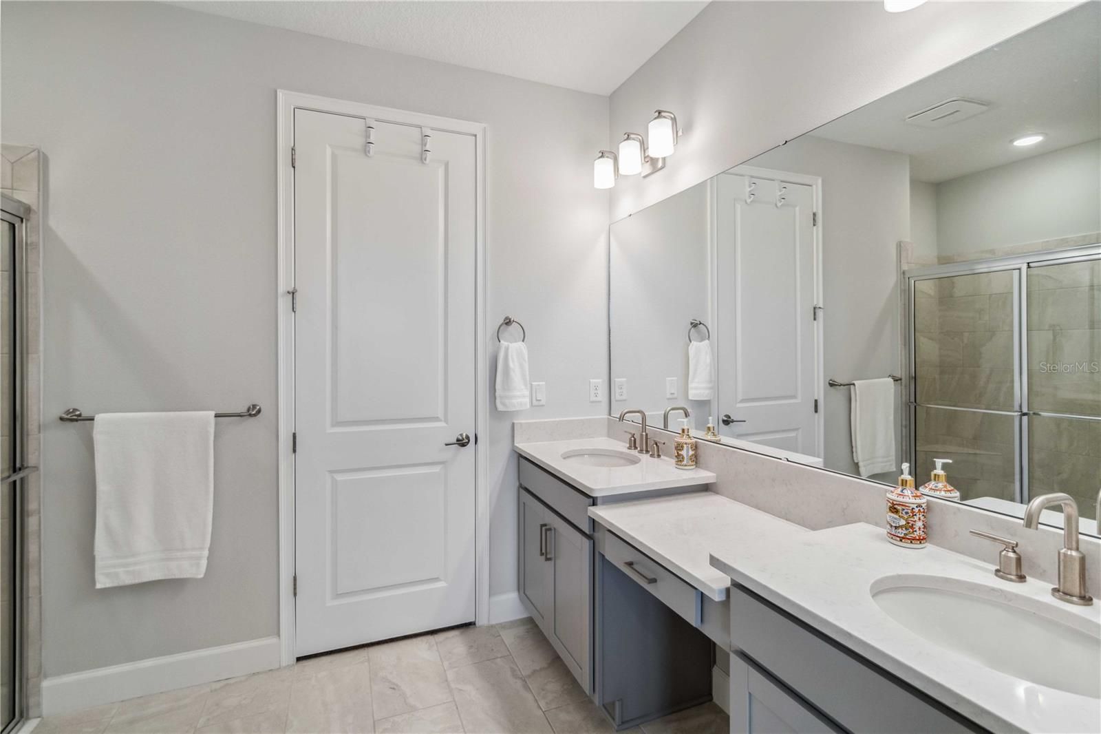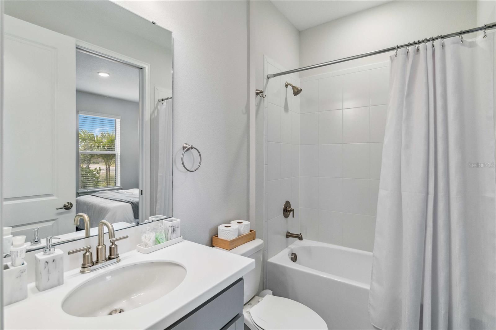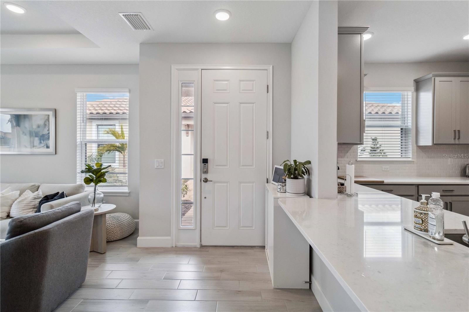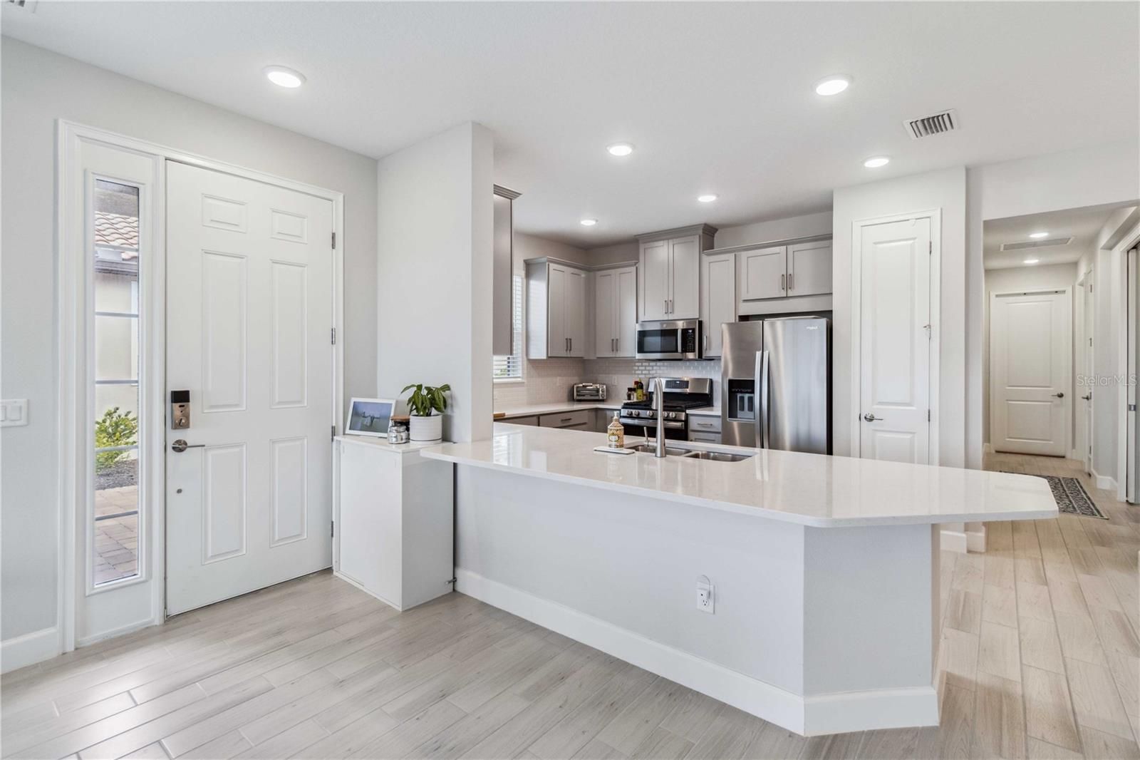 Live smart. Play often. Relax always. Esplanade at Azario, where resort-style amenities and breathtaking lake views await. Situated on a premium waterfront lot, this beautifully upgraded villa offers an open and inviting layout, perfect for full-time, seasonal, or investment opportunities. Inside, plank tile flooring, tray ceilings and natural light create a warm and inviting open living space. The gourmet kitchen features stainless steel appliances, grey shaker cabinets, and versatile white tile backsplash, seamlessly flowing into the dining and living areas. Triple sliding glass doors open to an oversized lanai, where you can relax and enjoy serene water views. The primary suite is a peaceful retreat with expansive windows, a spa-like ensuite with dual sinks, vanity area, a walk-in shower, and a spacious closet. A private guest suite, versatile den with pocket doors, and a well-equipped laundry room add to the home’s functionality. Enjoy world-class amenities, including a resort-style pool, full-service spa, fitness center, Bahama bar, and an 18-hole championship golf course. The Culinary Center offers fine dining, wine tastings, and cooking classes, while The Venue hosts community events and clubs. Located in Lakewood Ranch, just minutes from A-rated schools, shopping, dining, and Gulf Coast beaches, this home is a perfect blend of luxury and investment potential. Don’t miss this incredible opportunity! This home presents a fantastic investment and is currently leased to November2025.