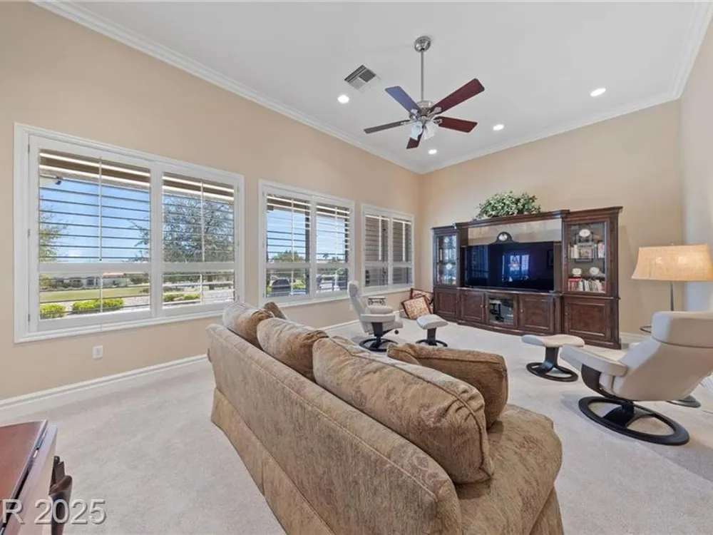 Insist On Enjoying Life ~ Live Like You Are On Vacation! GOLF COURSE HOME ~ Remodeled 1,842 sf. Marquis Model ~ Split Bedrooms (Bedrooms On Opposite Sides of the House) ~ NEW ROOF & 2 NEW SKYLIGHTS ~ Stainless Steel Appliances ~ Completely Remodeled Primary Shower ~ Almost New Exterior Paint, Dishwasher, and Water Heater ~ Highland Falls Golf Course ~ The Golf Cart Path is on the Other Side of the Fairway ~ Enjoy All the Sun City Summerlin 55+ Community Amenities ~ 4 Community Centers, 3 Golf Courses, 5 Swimming Pools (3 Outdoor and 2 Indoor Pools), 3 Exercise Facilities, Tennis Courts, Pickle Ball Courts, Senior Softball League, 312 Seat Starbright Theatre with Live Entertainment, Social Card Clubs, and More!