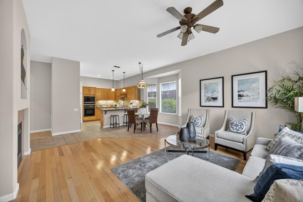 Elegant, refined living in one of Rocklin's most desirable senior gated communities. Welcome to 3017 Crestwood Way, a pristine 3 bedroom, 2.5 bath home with 2,100 square feet of living space, plus an enclosed sunroom not included in the square footage. Built in 1999 by Pulte, this home is known for its thoughtful design and easy lifestyle. The entry opens to soaring ceilings and a formal living and dining area that feels bright and open. The remodeled kitchen connects directly to the family room with a fireplace and access to the large enclosed patio, making it easy to relax or entertain. Stainless steel appliances include a 5 burner cooktop, stainless hood, walk in pantry, and generous cabinetry. Hardwood and tile flooring run throughout the main living areas. The spacious primary suite offers a calm, private retreat, while the layout flows comfortably for everyday living. Outside, the yard is beautifully landscaped with a fig and orange tree, rose bushes, and spring bulbs ready to bloom. The front yard is maintained by the HOA, keeping life simple and low maintenance. Residents enjoy a large pool, pickleball, and a full calendar of activities, all set in a scenic Rocklin location that feels welcoming, active, and easy to call home.
