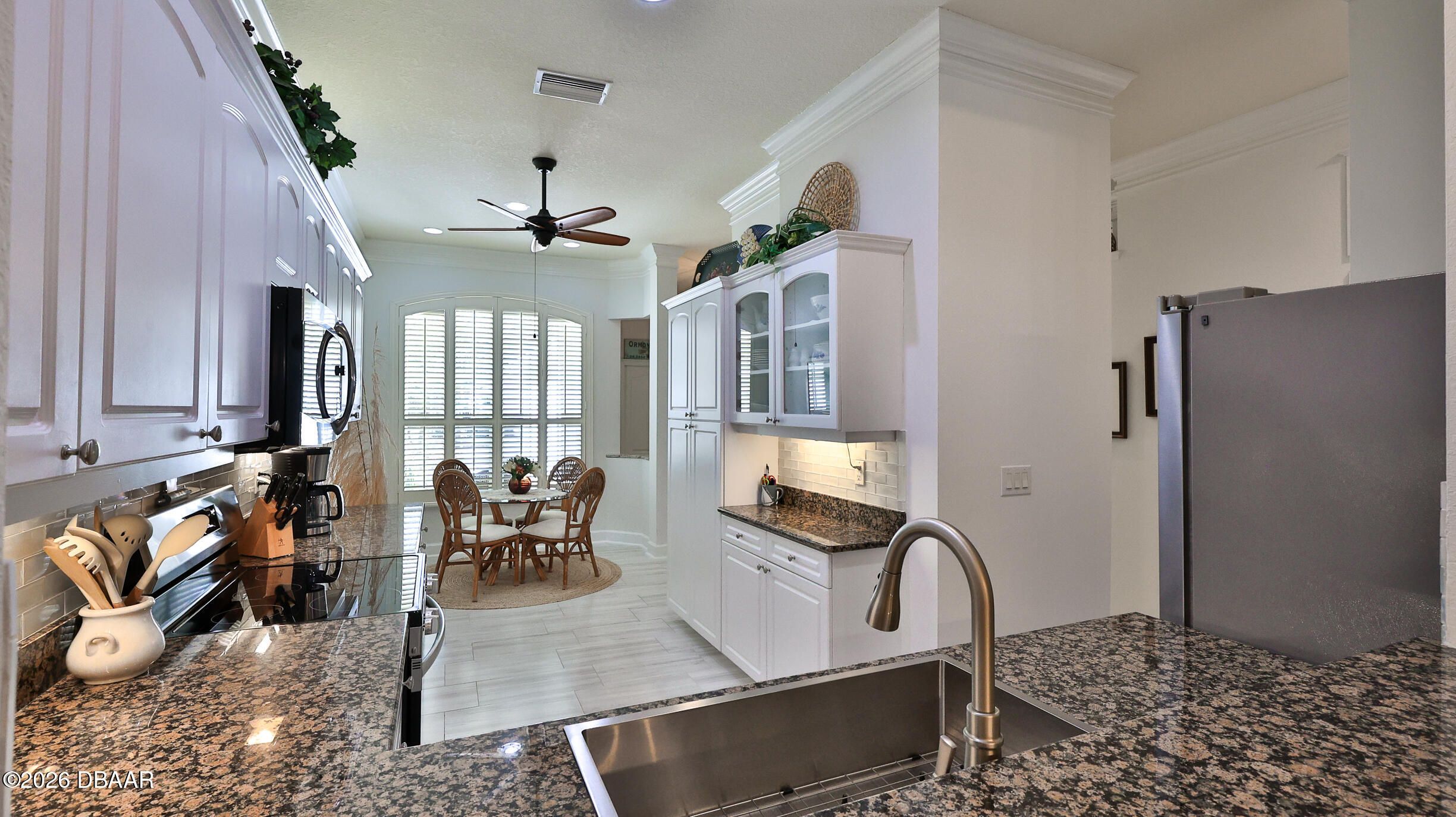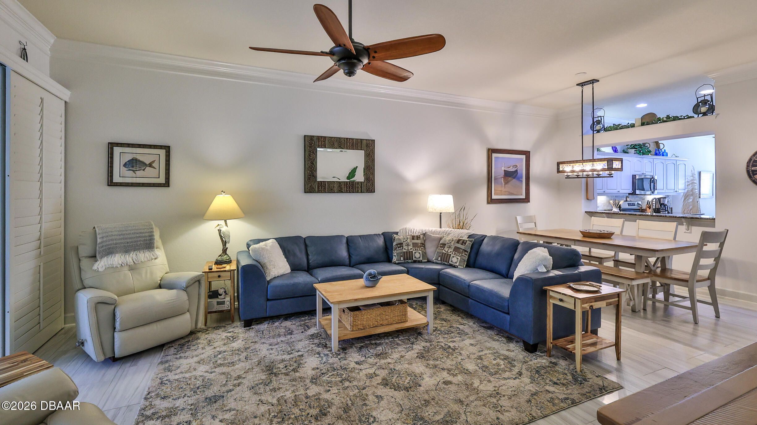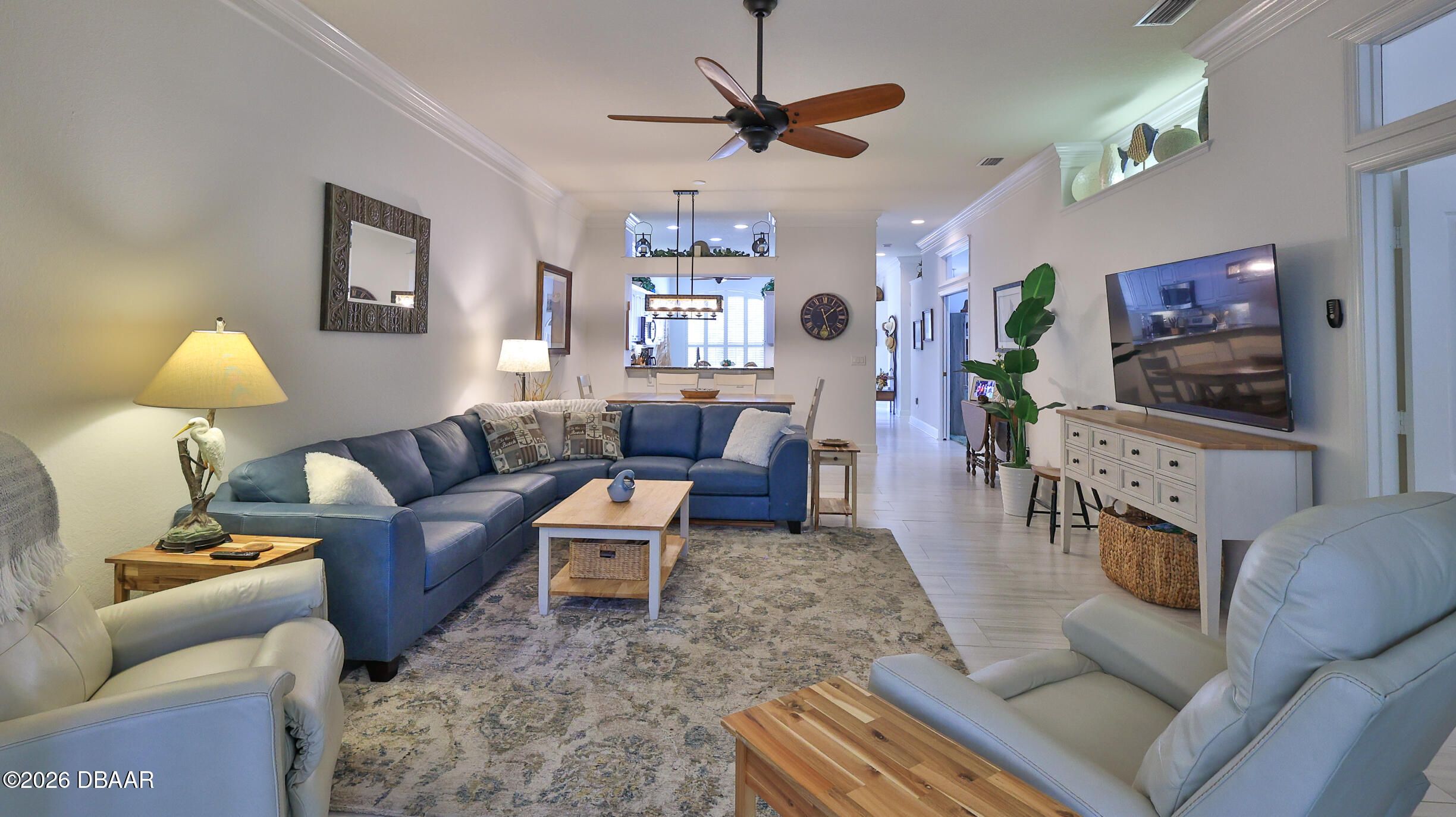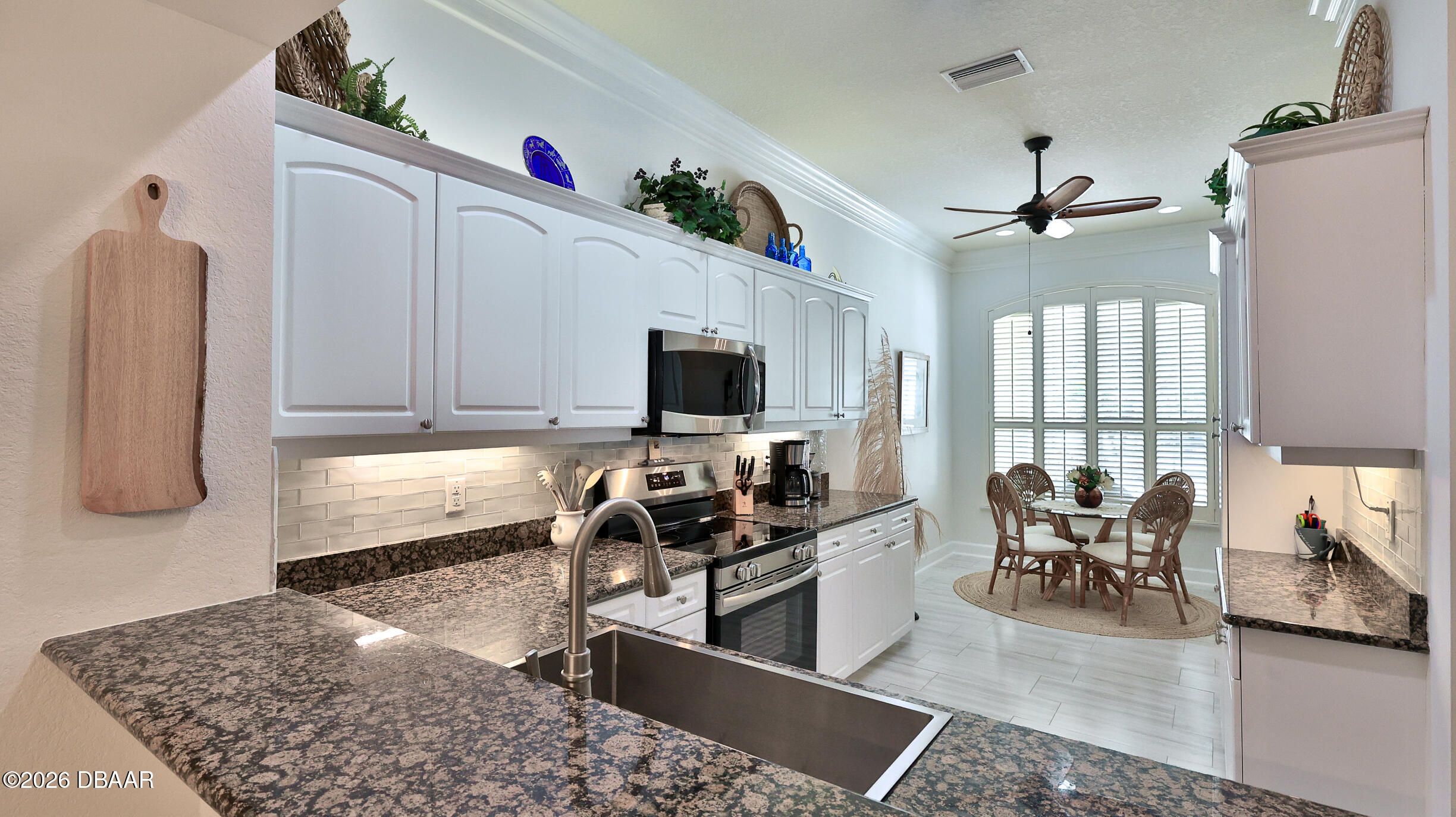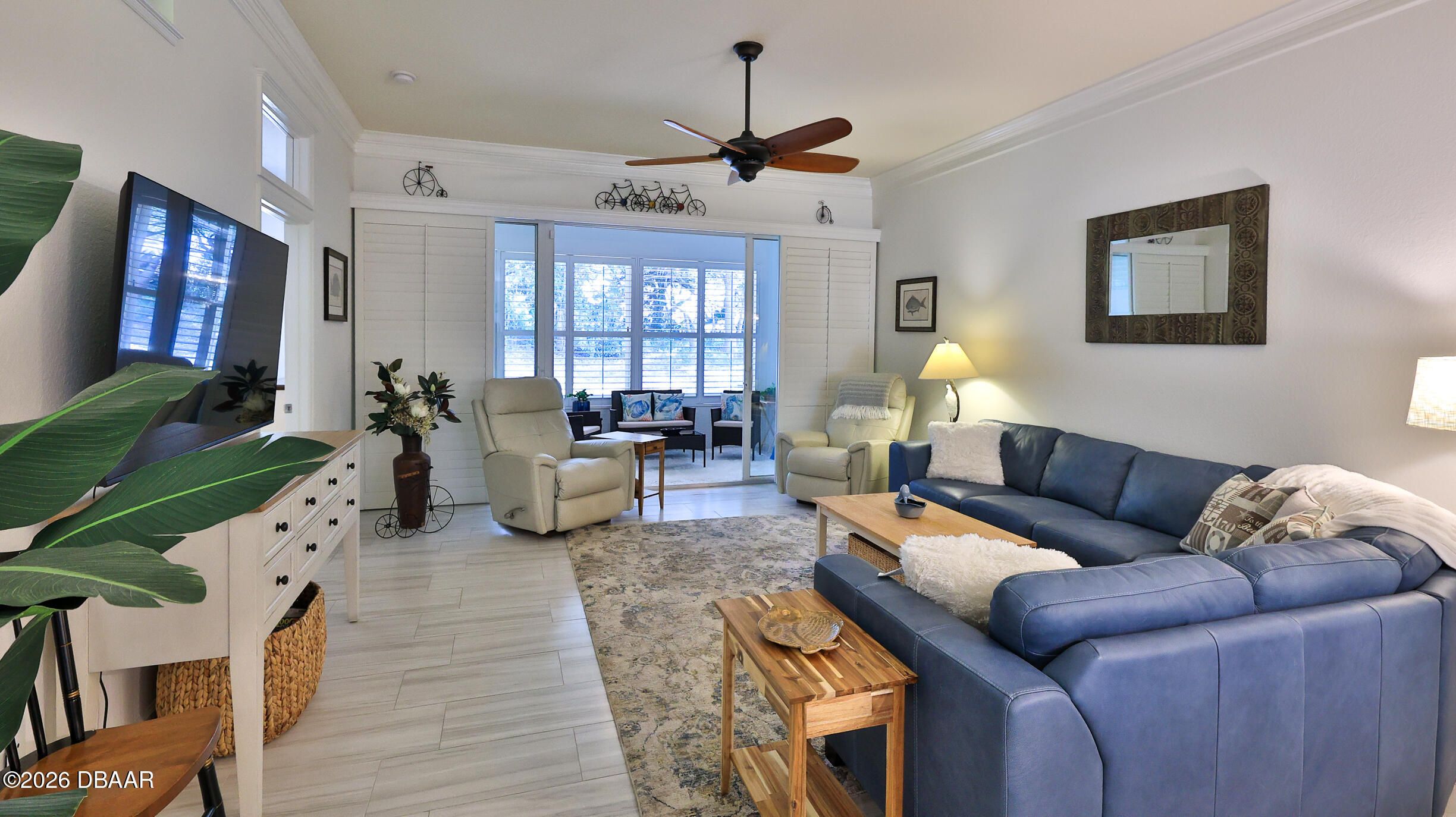 Welcome to 3017 Glin Circle in desirable Halifax Plantation. Designed for effortless living, this low-maintenance residence blends refined finishes, thoughtful upgrades, and a versatile floor plan ideal for both everyday comfort and entertaining. The bright, open interior is highlighted by luxury tile flooring, abundant natural light, crown molding, plantation shutters, and a beautiful glassed-in porch. The kitchen is both beautiful and functional, featuring white wood cabinetry, stainless appliances, granite counters, tile backsplash, and a light and bright nook. The dining room has a designer light fixture and is open to living room with sliding doors to the cozy Florida Room. Large primary bedroom features volume ceiling, crown molding and large window with plantation shutters. The primary bath has double vanities, shower and walk-in closet. Home has two extra bedrooms and full bath. Bedroom 3 is currently used as Den. two car garage. This immaculate villa is a must see. Halifax Plantation Golf Club is open to the public and surrounding neighborhood. It features a Bill Amick design 18 hole course, driving range, chipping and putting practice greens. The clubhouse offers the Tavern and Pub restaurants for quiet dinners or pub atmosphere. The club also features tennis, swimming, and exercise facilities. More details can be found at https://www.halifaxplantationgc.com/