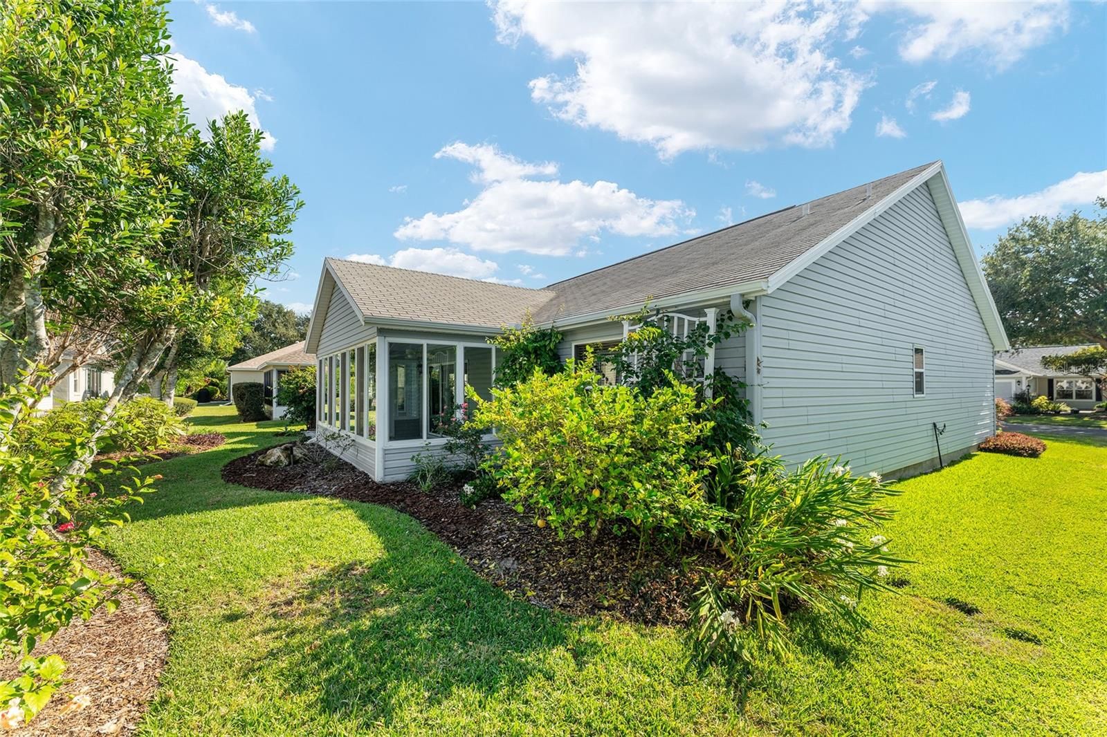 **NEW ROOF TO BE INSTALLED BEFORE CLOSING, NEW HOT WATER HEATER, HVAC, AND DUCTWORK REWORKED IN 2021! This beautifully upgraded 3 bedroom (one without a closet) 2 bath WHISPERING PINE MODEL is located in the desirable VILLAGE OF GLENBROOK — one of the most sought-after areas in THE VILLAGES! Enjoy being just minutes from LAKE SUMTER LANDING, SAVANNAH CENTER, GLENVIEW COUNTRY CLUB, and multiple recreation centers offering championship golf, swimming, pickleball, and social clubs galore. Inside, you’ll find an OPEN AND BRIGHT FLOOR PLAN with HIGH CEILINGS, perfect for entertaining and everyday living. The kitchen features CUSTOM CABINETS WITH PULLOUTS, a PANTRY CABINET, and a BUILT-IN WINDOW SEAT that combines function and storage. The GLASS-ENCLOSED LANAI is A/C VENTED WITH TILE FLOORING, providing a relaxing space to unwind year-round, and opens to a CONCRETE PATIO WITH SPACE FOR GRILLING. The PRIMARY SUITE boasts LVP FLOORING, a WALK-IN CLOSET, and an UPDATED BATH with DUAL SINKS, LIGHTED MIRRORS, REFACED CABINETRY, HIGH CEILINGS, and a WALK-IN TILED SHOWER. The DEN with FRENCH DOORS and LAMINATE FLOORING makes the perfect home office or reading nook. The GUEST ROOM is spacious, and the GUEST BATH includes a TILE FLOOR TUB/SHOWER COMBO and LINEN CLOSET for extra storage. Additional highlights include NATURAL GAS, GARAGE CABINETS WITH PULL-DOWN ATTIC STAIRS AND ATTIC SPACE FOR EXTRA STORAGE, a WI-FI ENABLED SPRINKLER SYSTEM, CUSTOM DRAPERIES, NEW GARAGE SCREEN, WELL-MAINTAINED EXTERIOR with well established landscaping, and ZERO BOND BALANCE. This home combines comfort, convenience, and classic Villages charm — all in a fantastic GLENBROOK LOCATION near shopping, dining, golf, and entertainment. Don’t miss your chance to own this beautifully maintained, move-in ready home in THE VILLAGES!