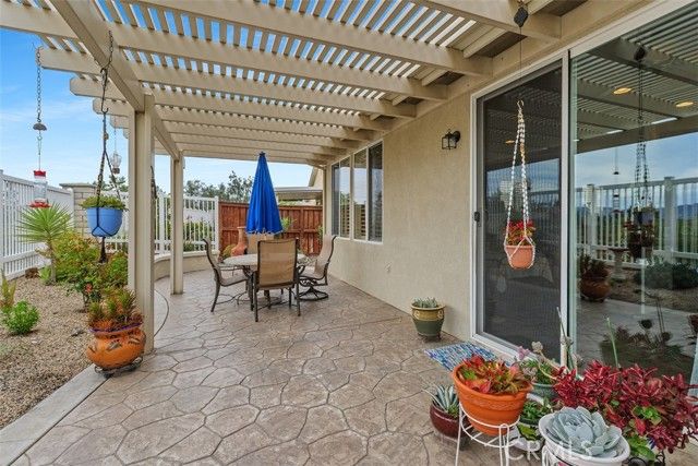 Welcome to this impeccably maintained, original-owner home located in the prestigious Four Seasons 55+ community of Murrieta. This spacious single-story residence offers 2 bedrooms plus an office, 2 bathrooms, and a thoughtfully designed open floor plan filled with natural light. The well-appointed kitchen features granite countertops, a breakfast bar, and a cozy eat-in nook, complemented by elegant plantation shutters throughout the home. Enjoy both a formal living room and separate dining area, along with a warm and inviting family room complete with a fireplace—perfect for relaxing or entertaining. The primary suite is a true retreat, offering two walk-in closets and a luxurious ensuite bath with a spacious walk-in shower and separate soaking tub. Two guest rooms are located at the front of the home, one currently configured as an office, with a conveniently situated guest bathroom featuring a shower/tub combination. Additional highlights include a generously sized laundry room with a deep sink and ample storage cabinetry, as well as a 2-car garage with an epoxy-coated floor and an upgraded tankless water heater. Step outside to a beautifully landscaped, low-maintenance backyard showcasing stamped concrete, an Alumawood patio cover, fruit trees, and breathtaking views—creating a peaceful and private outdoor oasis ideal for entertaining or unwinding. Residents of Four Seasons Murrieta enjoy resort-style living with access to world-class amenities, including a 10-acre lodge featuring a heated pool and spa, fitness center, aerobics and dance studio, library, hobby rooms, beauty salon, and a grand ballroom. Outdoor amenities include tennis and pickleball courts, bocce ball, shuffleboard, putting green, walking trails, and more. The community also offers a vibrant social calendar with clubs and activities such as art classes, yoga, bridge, and billiards. Conveniently located near shopping, dining, and entertainment, including the Promenade Mall, and just minutes from Temecula’s charming Old Town and renowned wineries. With low HOA dues, no Mello-Roos, and appliances included (washer, dryer, and refrigerator), this move-in ready home offers the perfect blend of comfort, luxury, and active adult living. Come experience the exceptional lifestyle at Four Seasons Murrieta!