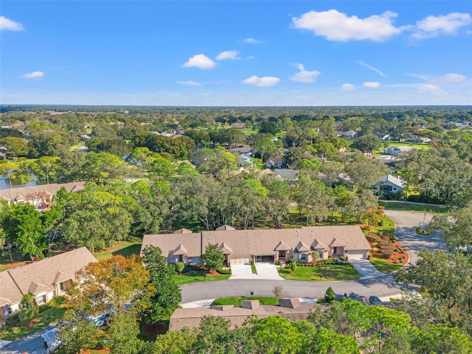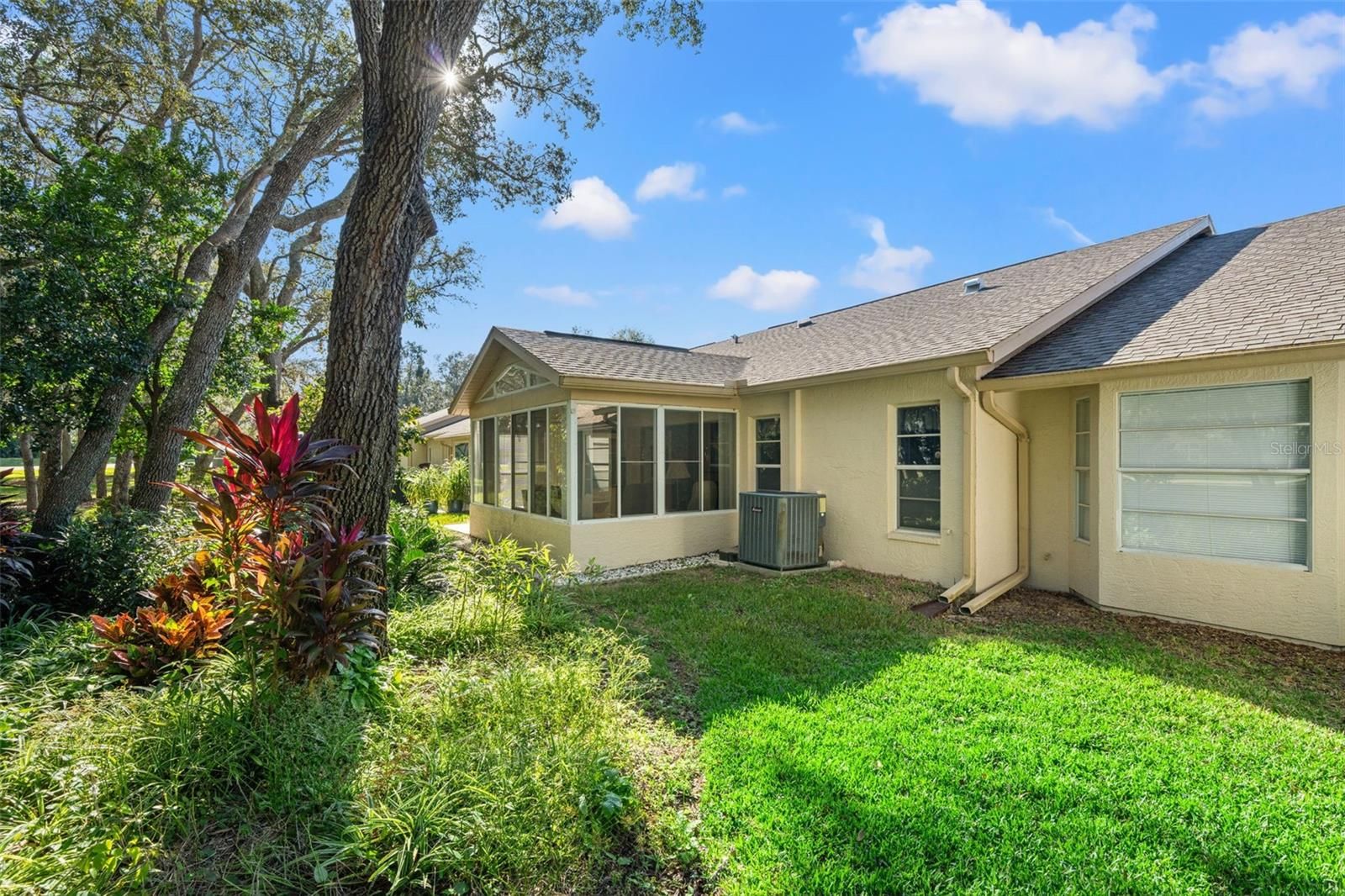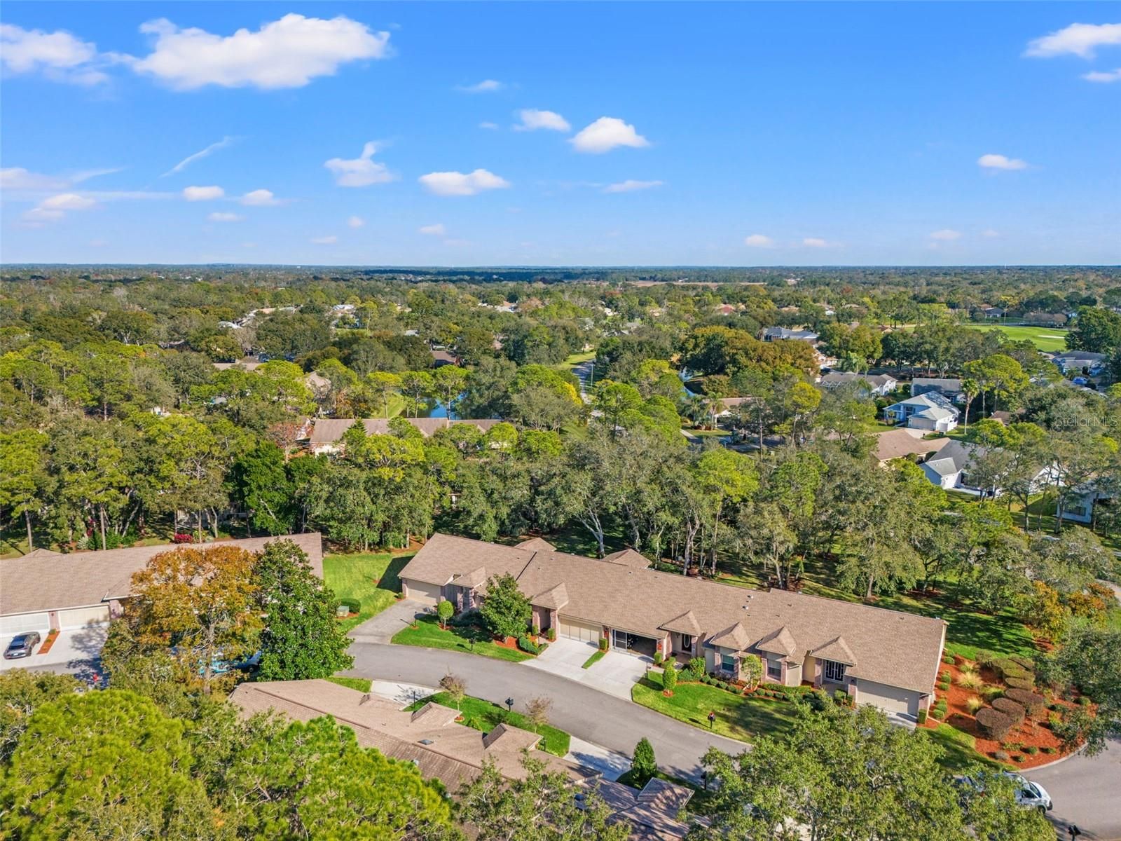 MOVE RIGHT IN to this BEAUTIFULLY MAINTAINED 2 bedroom, 2 bath, 2 car garage villa located in AWARD WINNING TIMBER PINES. SOLD FURNISHED, TURNKEY. This open-concept home is bright and airy, featuring vaulted ceilings, solar tube, and a beautiful landscaped rear view offering exceptional privacy. The living and dining room combination opens seamlessly to the kitchen and breakfast nook. The updated kitchen boasts granite countertops, recessed lighting, newer appliances (2022, excluding dishwasher), a pantry, abundant storage and workspace, and new cabinet doors. Popcorn ceilings have been removed in the living areas. Enjoy the enclosed, vaulted lanai under heat and air, overlooking a tranquil, park-like setting, with a poured concrete slab just outside—perfect for grilling and outdoor enjoyment, beautiful afternoon shade. Ideally located close to the Country Club. The spacious primary suite features two walk-in closets and an en-suite bath with dual sinks and a walk-in shower. The guest bedroom offers a large walk-in closet, ideal for additional storage. The guest bath includes a tub/shower combination. Inside laundry room includes newer washer and dryer, utility sink, and cabinet storage, with direct access to the screened garage featuring an acrylic floor and ample storage. Exterior painted in 2024. New smoke detectors. HVAC system professionally maintained yearly. Golf cart included with new batteries. This village provides a termite warranty and allows one dog. Come enjoy the exceptional lifestyle Timber Pines has to offer with its 4 golf courses, clubhouse, 2 Pools, Restaurant, Tennis, Pickleball, fitness center, performing arts center, Wood shop, Arts and Crafts, Paws Park, over 100 clubs and a vibrant social lifestyle. Spectrum high speed internet and 2 cable boxes included in HOA dues. Buyer to pay 2900 Capital Contribution to TPCA at closing. CALL TODAY!!!!!