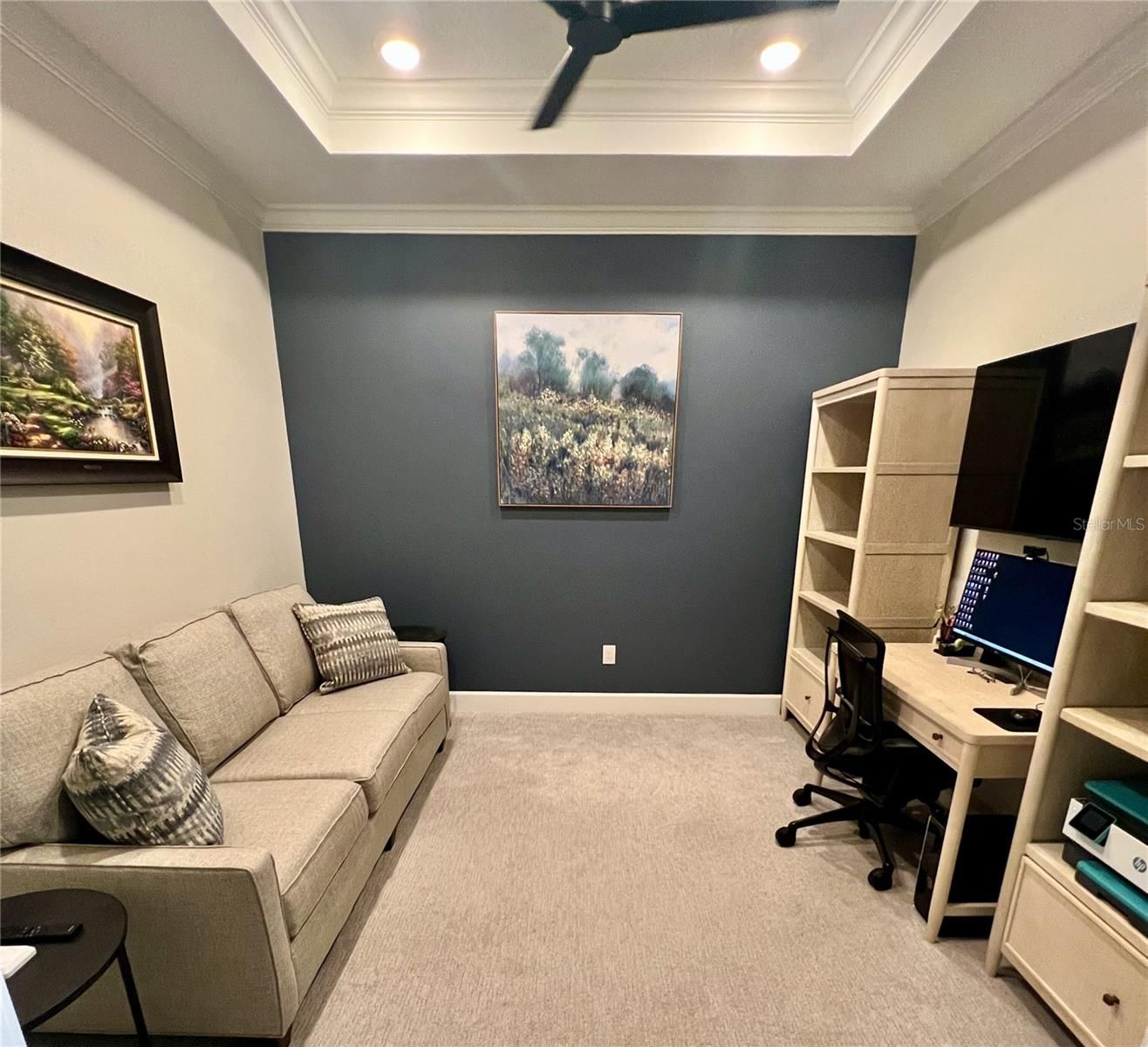 Welcome to the Ibis in Esplanade at Azario, Lakewood Ranch—a beautifully designed Twin Villa perfectly situated in one of the most sought-after communities in Lakewood Ranch. Offering 1,533 square feet of open-concept living, this residence features 2 bedrooms, 2 bathrooms, a study, and a 2-car garage, plus an extended driveway and a spacious lot with expansive pond views. Inside, the layout flows effortlessly. The elegant primary suite serves as a peaceful retreat with a generous walk-in closet, dual vanities, a large shower, and private water closet. Guests will enjoy the privacy of the front bedroom with an adjacent full bath, while the study provides a comfortable space for work or hobbies. The heart of the home is the bright and open great room, seamlessly connected to the designer kitchen and dining area—ideal for both everyday living and entertaining. Step outside to the extended screened lanai and take in tranquil pond views through the panoramic screen enclosure. Notable upgrades include tile flooring throughout the main living areas, crown molding, tray ceilings, added laundry room cabinets, a stainless apron-front kitchen sink, upgraded interior paint, low-voltage outdoor lighting, wired speakers, smart light switches, upgraded ceiling fans, and beautiful landscape improvements. Resort-Style Living Awaits:?Esplanade at Azario offers an unmatched blend of luxury, wellness, and recreation. Enjoy a heated resort-style pool, state-of-the-art fitness center, aerobics classes, and scenic walking trails. Outdoor enthusiasts will appreciate the pickleball and tennis courts, Vitality Park, and the option to enjoy Esplanade’s 18-hole championship golf course. After a workout, unwind with a soothing treatment at the Wellness Center, relax by the fire pit, or explore exclusive amenities at the Culinary Center and sports courts. This villa truly offers the best of Florida living—comfort, convenience, and a vibrant community lifestyle. Come live the good life in Azario!