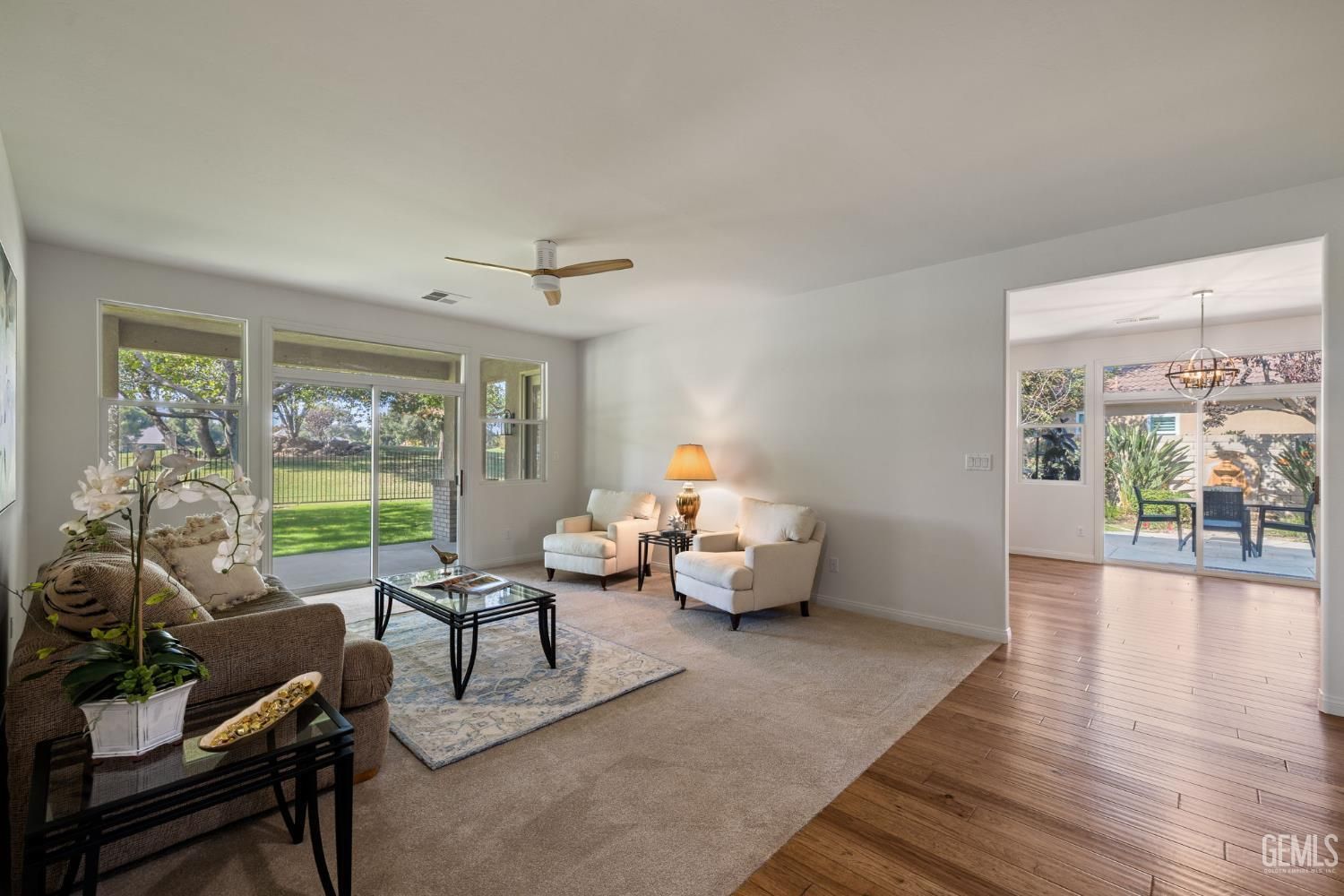 Discover refined living in The Greens, an active-adult community on the Seven Oaks Country Club golf course. Perfectly situated on a premium cul-de-sac lot with an impressive 116 feet of golf course frontage, this home offers exceptional privacy and views. Recently refreshed with stylish updates, it features 2 bedrooms plus an office and an open kitchen with new stainless appliances, quartz countertops, and windows framing the lush fairway. The great room and primary suite open to a covered patio ideal for outdoor dining beside a tranquil fountain. The luxurious primary bath includes a soaking tub, separate shower, and a spacious walk-in closet. All plumbing has been replaced, offering peace of mind and modern reliability. An oversized garage provides abundant storage and a custom workbench. Steps from the clubhouse pool and activities and just minutes from The Marketplace and Riverwalk shops and restaurants, this home combines a premium location, elegant design, and fun living.