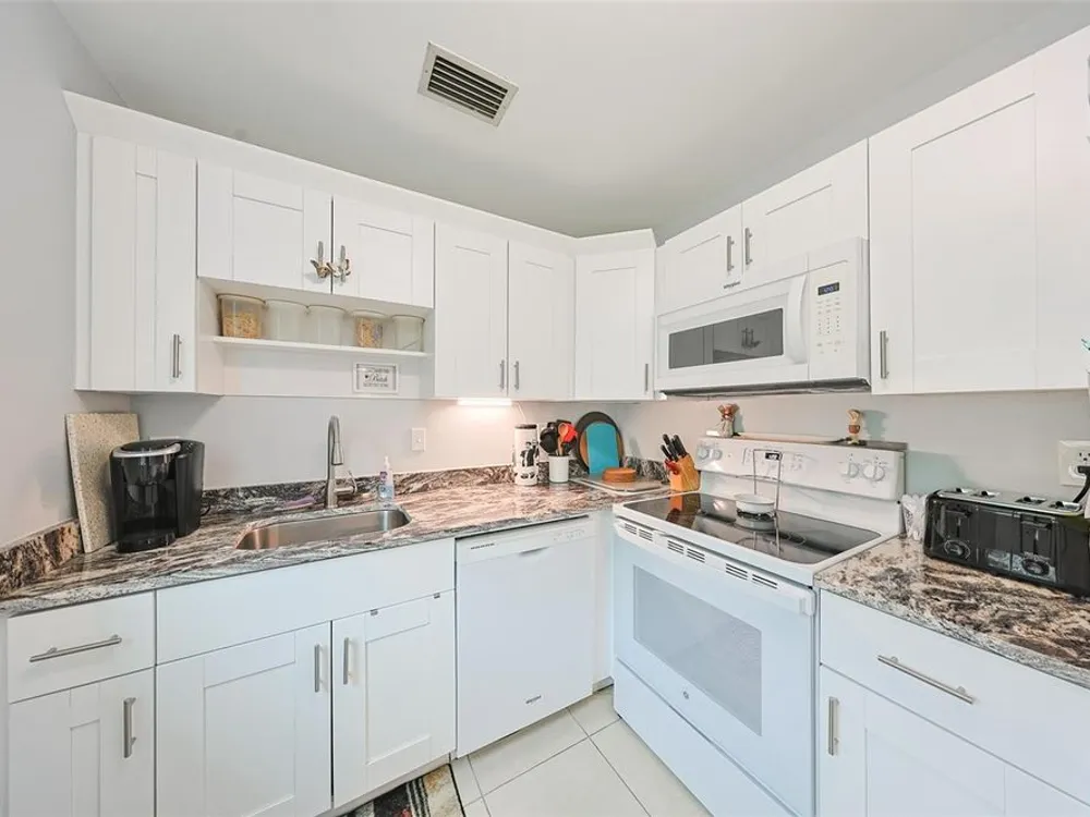 NICE PRICE ADJUSTMENT! Welcome home to this lovely 2 bedroom/2 bath Condo in Kings Point. The updated Kitchen has soft close cabinets and drawers with beautiful granite countertops. There is ceramic tile in the Living Room, Kitchen and Bathrooms and Laminate in both bedrooms. The entire home was painted in 2022, new walk-in shower by Westshore in the guest bath, Water softener, new toilet in guest Bathroom, vanities, mirrors and lighting in both baths, Washer, Dryer, Range and Refrigerator with ice and water in the door, remote light and fan in Kitchen are all newer - 2022/2023. The Lanai windows and Living Room windows have tinted film and the Kitchen, Guest Bath and Guest Bedroom have Weather-Tite windows that were installed 4/23 and Storm Door 2023. All of this with a Park like setting of the Retired Golf Course with trails for walking, biking or just watching the wild life. The gated community of Kings Point has amazing facilities, pools and clubs just waiting for you to enjoy. North of Sarasota and just south of Tampa, it is the perfect location for a convenient ride to airports, world class shopping, dining, professional sports and entertainment, shows and concerts. With easy access to award-winning, white sand beaches, this is the best of all worlds, but without the stress of traffic and big city life. Leave it all behind and enjoy your new life here in one of the country’s highest rated 55+ communities!