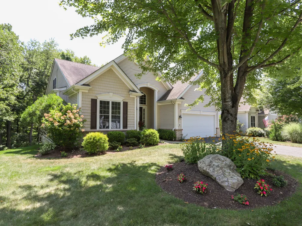 Welcome to this free-standing Laurel model in the sought-after Oxford Greens community. This beautifully maintained 3-bedroom, 2.5 bath home, offers comfort, style, and move-in readiness in a prime location. Nestled across from 18th tee, the property enjoys a unique blend of convenience and privacy, making it one of the most desirable spots in the neighborhood. Just a short distance from the clubhouse, you'll have easy access to all the community's premier amenities while still enjoying the peace and privacy of your own retreat. Inside, a bright and open layout creates a natural flow between living spaces, which includes a breakfast nook w/deck access and a full dining area. The main level office provides the ideal setting for working from home or pursuing hobbies, while the spacious kitchen and great room bring everyone together in the heart of the home. The main level primary suite offers comfort and privacy, with two additional bedrooms upstairs along with a loft providing plenty of space for family or guests. The full walk-out basement leads to a private backyard space with ample room for gardens. Every detail reflects care and pride of ownership, truly move-in ready! With its ideal location, versatile floor plan and access to the best of Oxford Greens living, this Laurel model is ready to welcome you home!