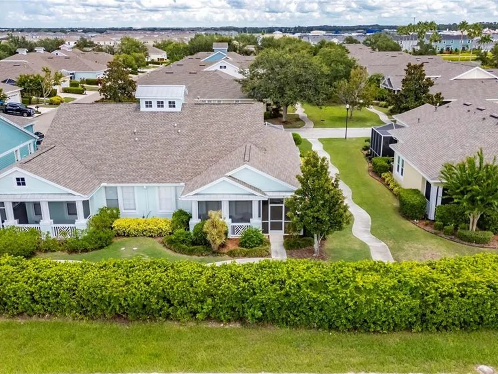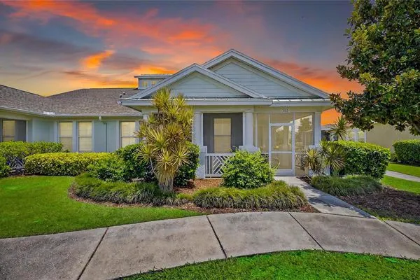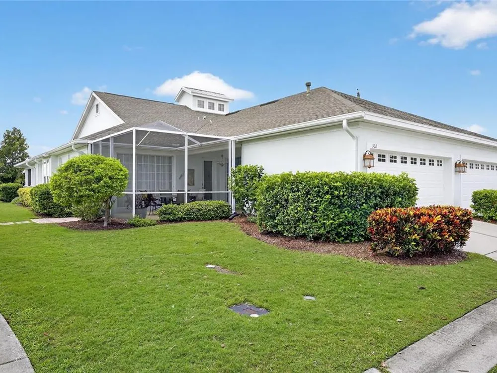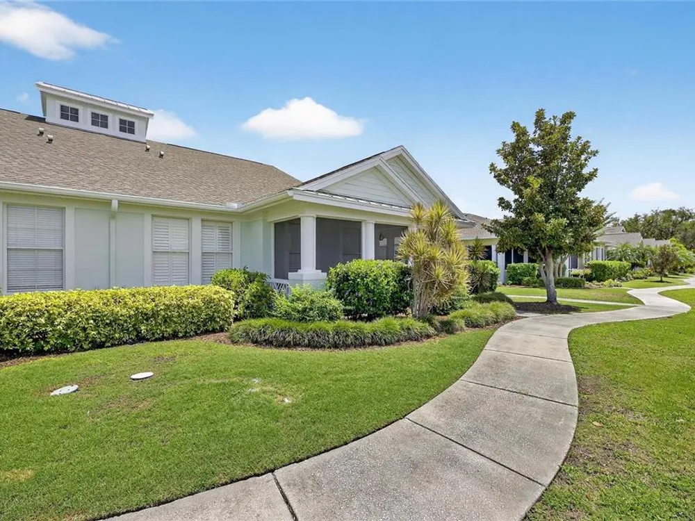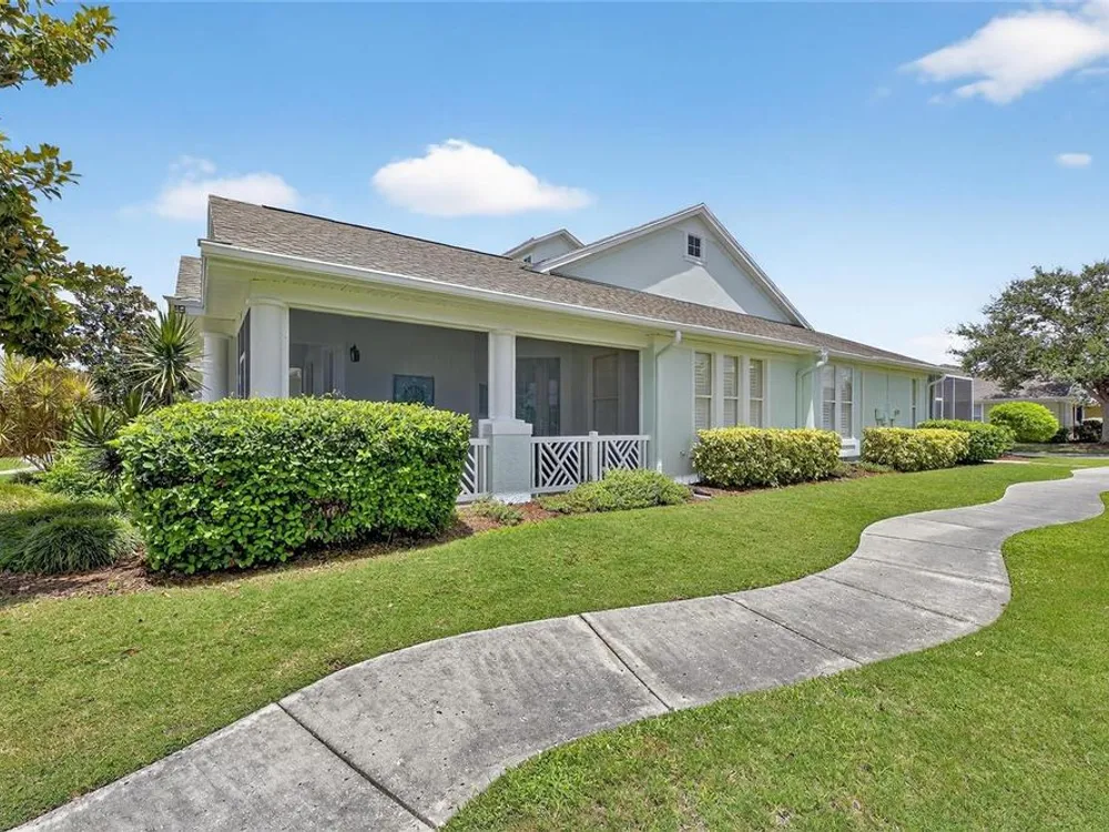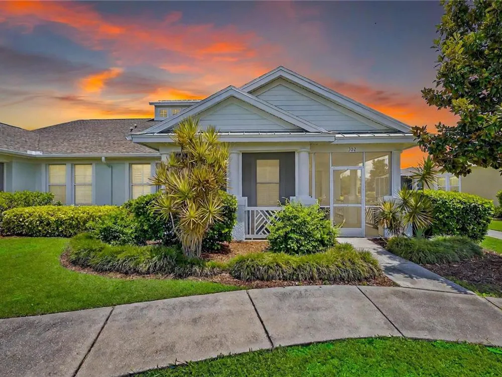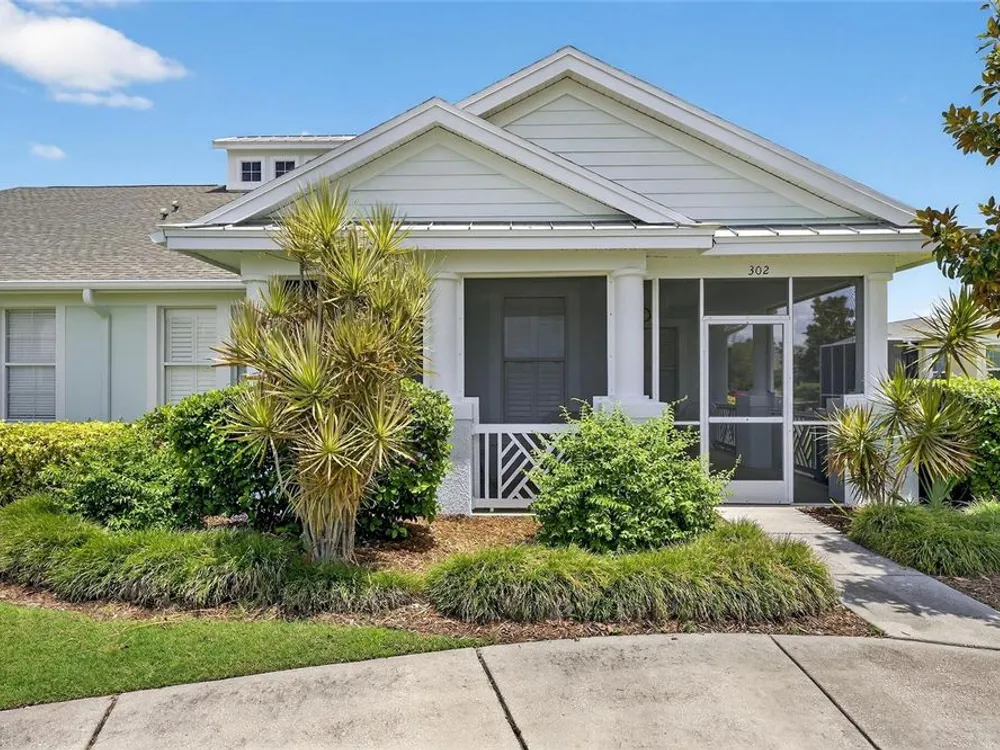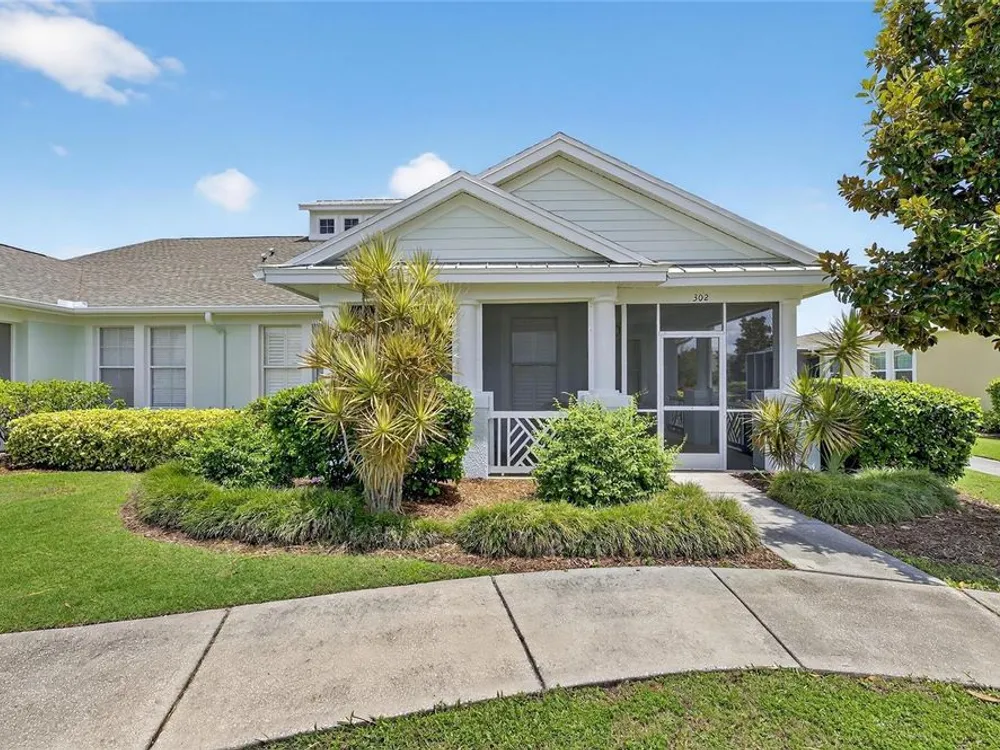 302 Latitude Place | 3 Beds | 2 Baths | 1,960 Sq. Ft. | Turnkey | Meridian Floorplan by Westfield Homes | Golf Cart-Friendly Gated Community | Recently Painted Exterior + Patio Refresh. Both the front and back patio have a fresh coat of anti-skid paint! | Motivated Sellers! This 3-bedroom, 2-bath, 1,960 sq. ft. end-unit villa is located in the gated Seacrest neighborhood within MiraBay. The exterior has been freshly painted, and both the front and back patio have fresh paint. Built by Westfield Homes, the Meridian floorplan offers a functional split layout, trail views, and a spacious open-concept living area with multiple flex spaces. The updated kitchen features quartz countertops, shaker-style cabinets, tile backsplash, and a seamless connection to the living and dining areas. The café-style breakfast space includes a bay window, while the adjacent laundry room offers built-in storage and a utility sink. A formal office with French doors and an additional front flex room provide options for a sitting room, dining space, or hobby area. Luxury vinyl plank flooring, crown molding, tray ceilings, and plantation shutters are featured throughout the main living spaces. The primary suite includes dual vanities, a soaking tub, walk-in shower, custom walk-in closet, and direct access to the screened-in lanai. Two additional bedrooms and a full bath are located on the opposite side of the home for added privacy. Enjoy outdoor living from the covered front porch or screened anti-skid lanai in the back. Seacrest HOA includes lawn care, irrigation, landscaping, pest control, exterior paint, and roof replacement—the roof was replaced in 2023. Residents enjoy full access to MiraBay’s resort-style amenities, including a clubhouse, fitness center, beach-entry pool, lap lanes, waterslide, tennis and pickleball courts, basketball, playgrounds, kayak and paddleboard launch, walking trails, and a full-service marina. Golf carts are welcome throughout the community.