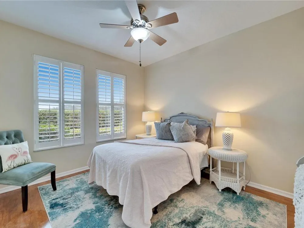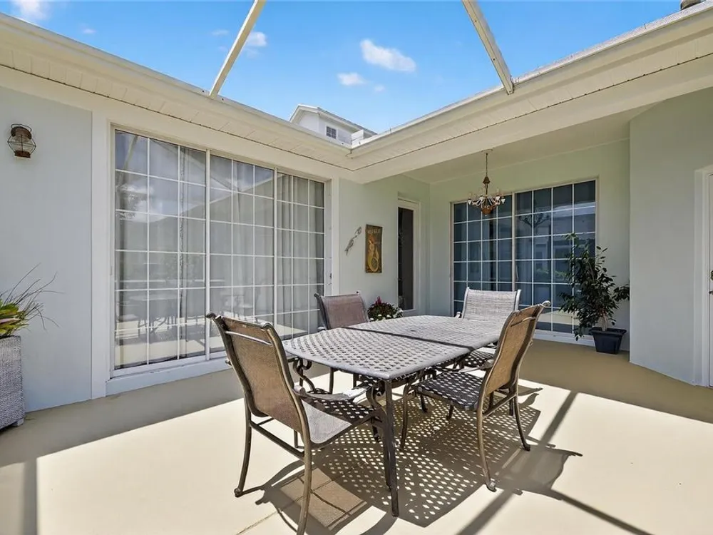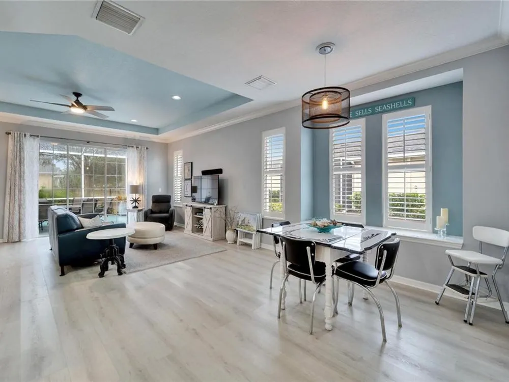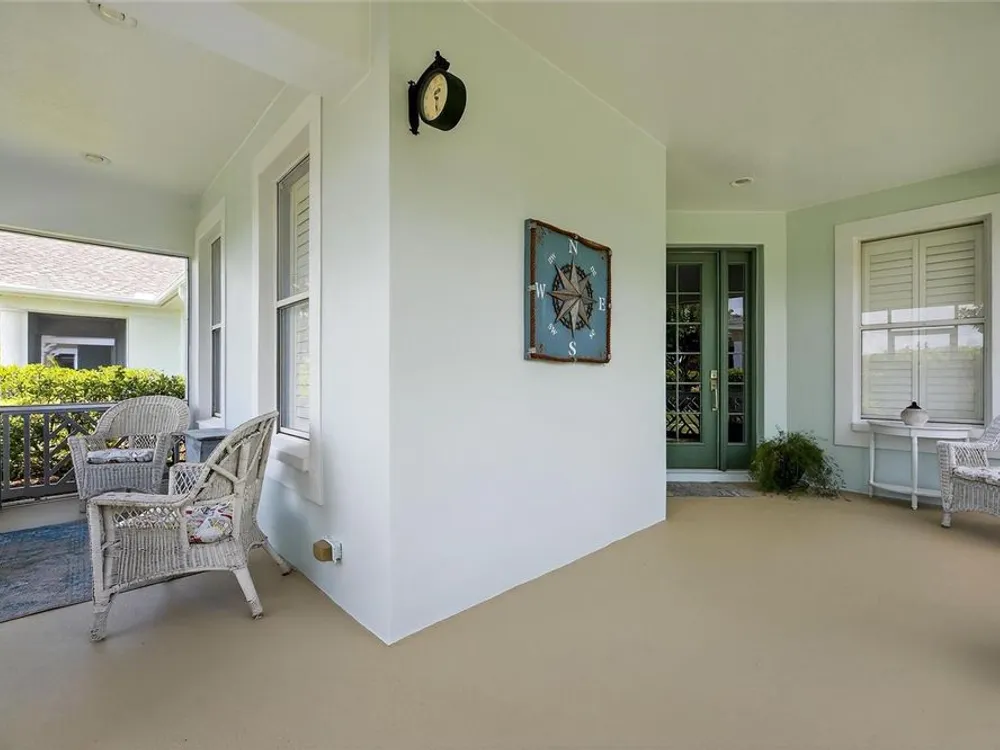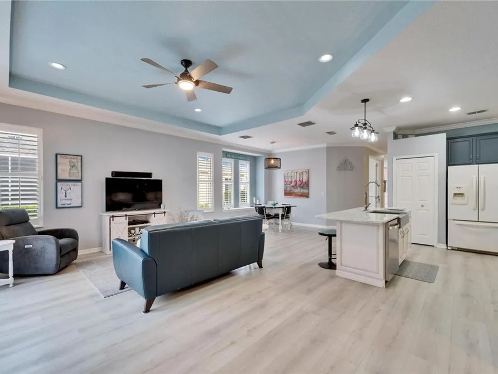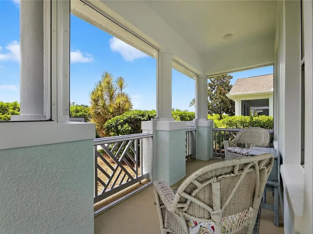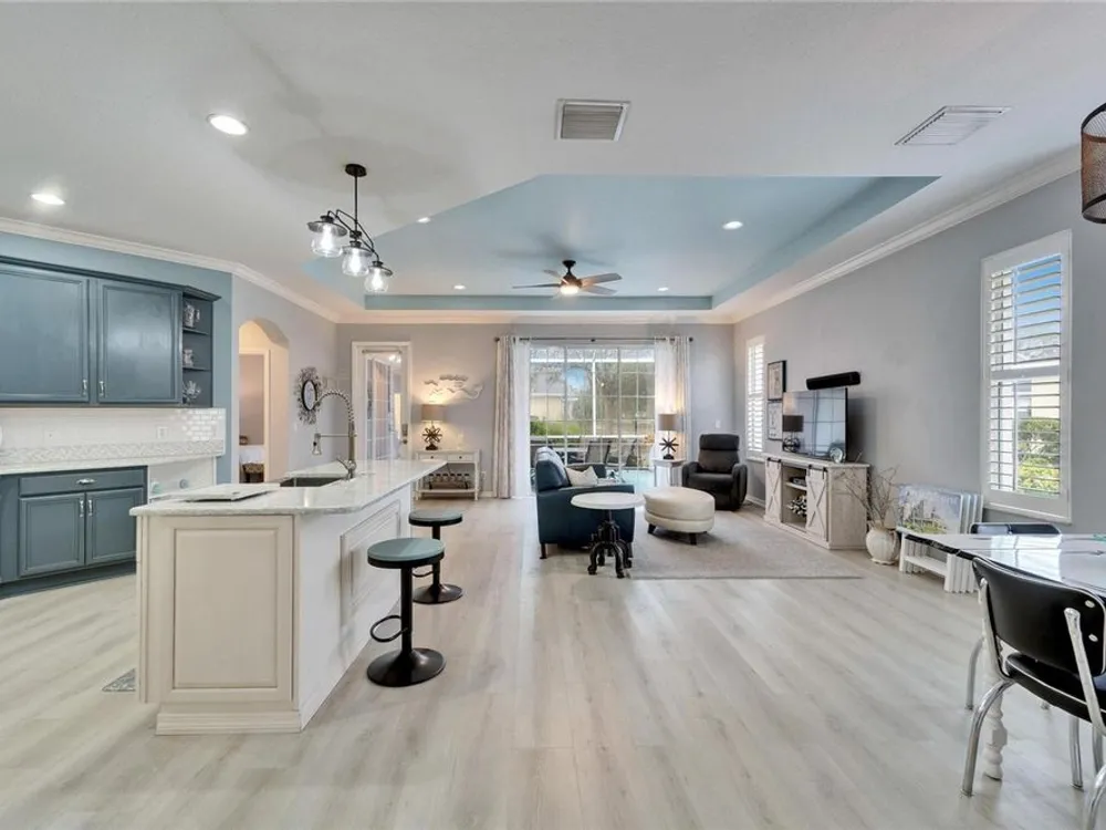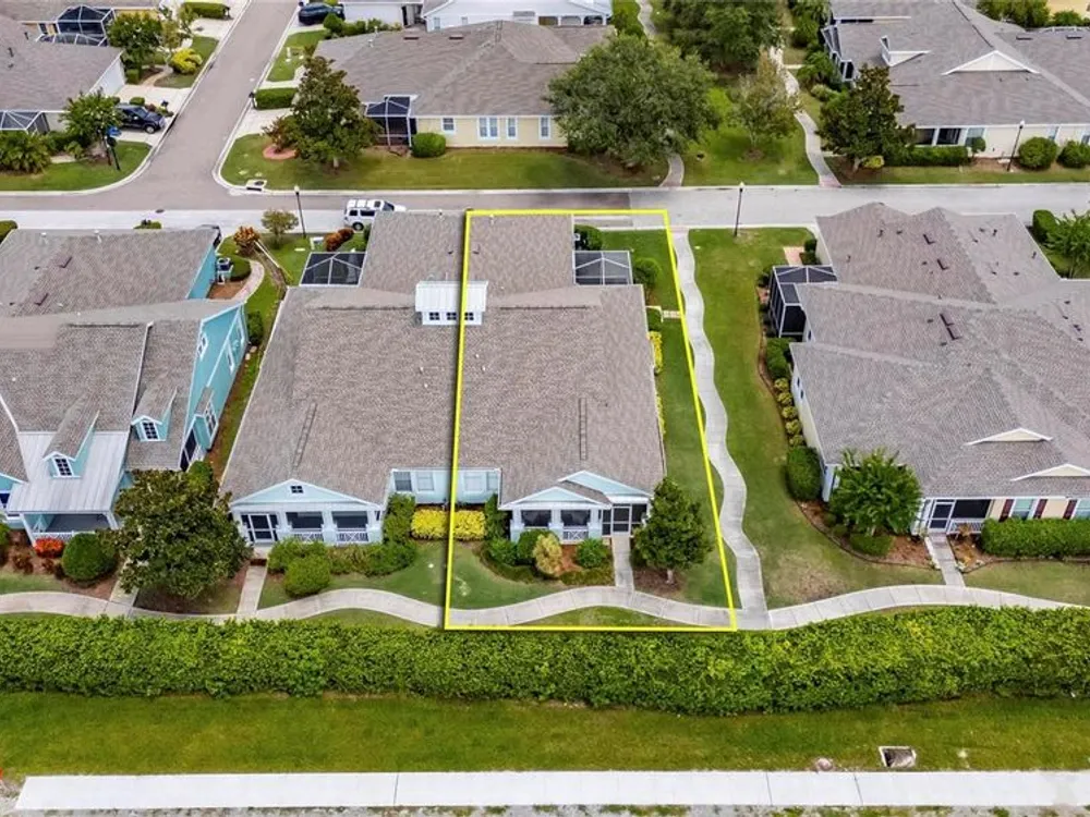 302 Latitude Place | 3 Beds | 2 Baths | 1,960 Sq. Ft. | Turnkey | Meridian Floorplan by Westfield Homes | Golf Cart-Friendly Gated Community | Recently Painted Exterior + Patio Refresh. Both the front and back patio have a fresh coat of anti-skid paint! | Motivated Sellers! This 3-bedroom, 2-bath, 1,960 sq. ft. end-unit villa is located in the gated Seacrest neighborhood within MiraBay. The exterior has been freshly painted, and both the front and back patio have fresh paint. Built by Westfield Homes, the Meridian floorplan offers a functional split layout, trail views, and a spacious open-concept living area with multiple flex spaces. The updated kitchen features quartz countertops, shaker-style cabinets, tile backsplash, and a seamless connection to the living and dining areas. The café-style breakfast space includes a bay window, while the adjacent laundry room offers built-in storage and a utility sink. A formal office with French doors and an additional front flex room provide options for a sitting room, dining space, or hobby area. Luxury vinyl plank flooring, crown molding, tray ceilings, and plantation shutters are featured throughout the main living spaces. The primary suite includes dual vanities, a soaking tub, walk-in shower, custom walk-in closet, and direct access to the screened-in lanai. Two additional bedrooms and a full bath are located on the opposite side of the home for added privacy. Enjoy outdoor living from the covered front porch or screened anti-skid lanai in the back. Seacrest HOA includes lawn care, irrigation, landscaping, pest control, exterior paint, and roof replacement—the roof was replaced in 2023. Residents enjoy full access to MiraBay’s resort-style amenities, including a clubhouse, fitness center, beach-entry pool, lap lanes, waterslide, tennis and pickleball courts, basketball, playgrounds, kayak and paddleboard launch, walking trails, and a full-service marina. Golf carts are welcome throughout the community.