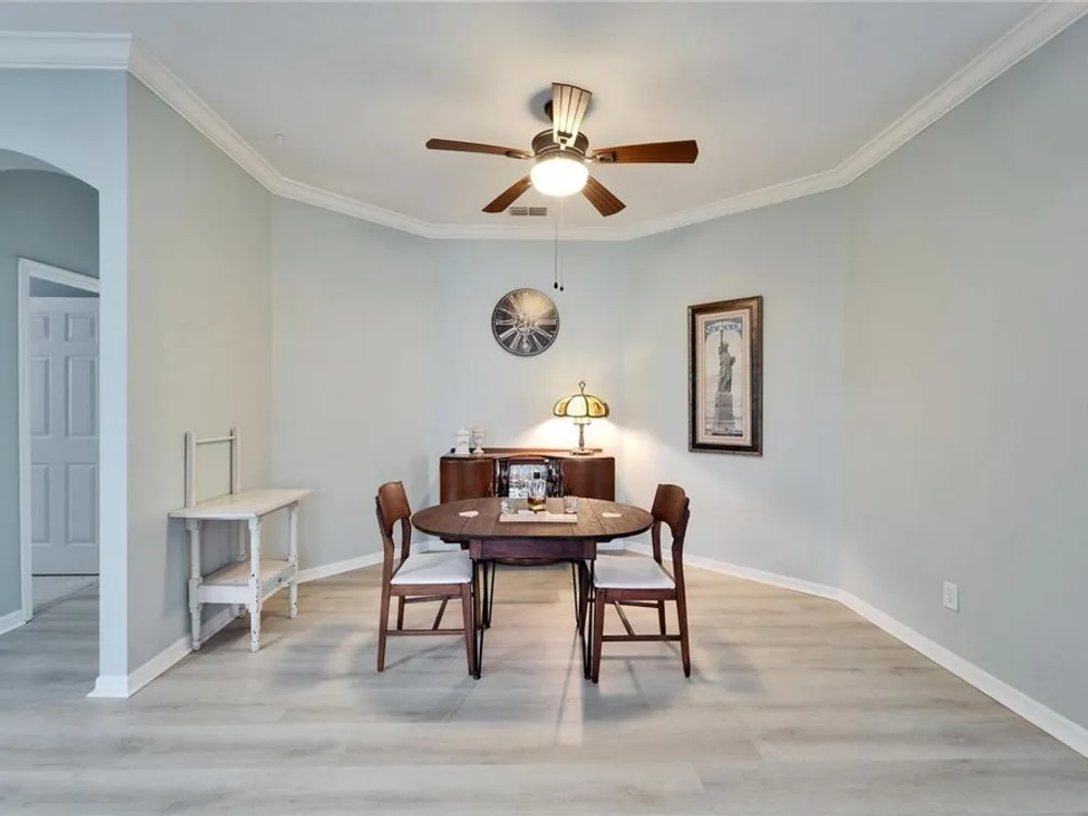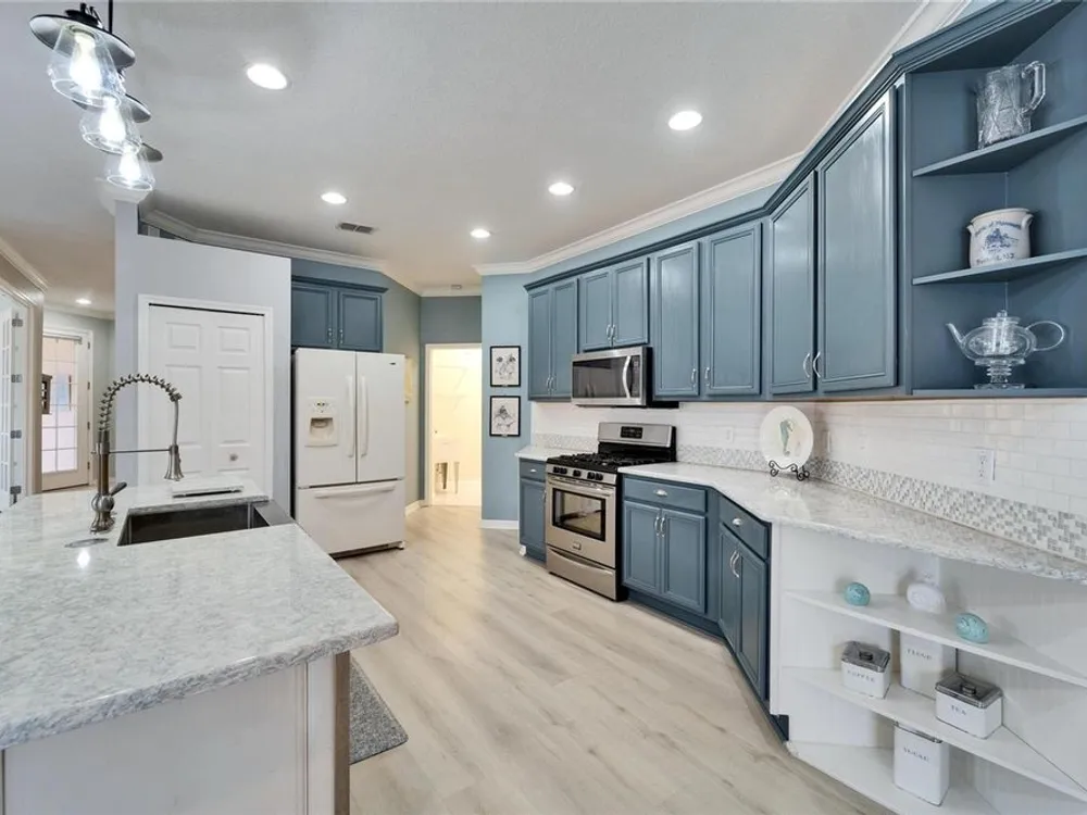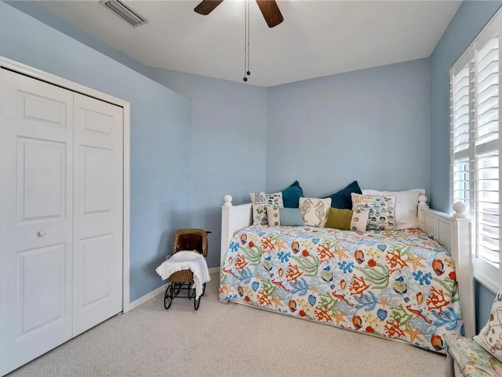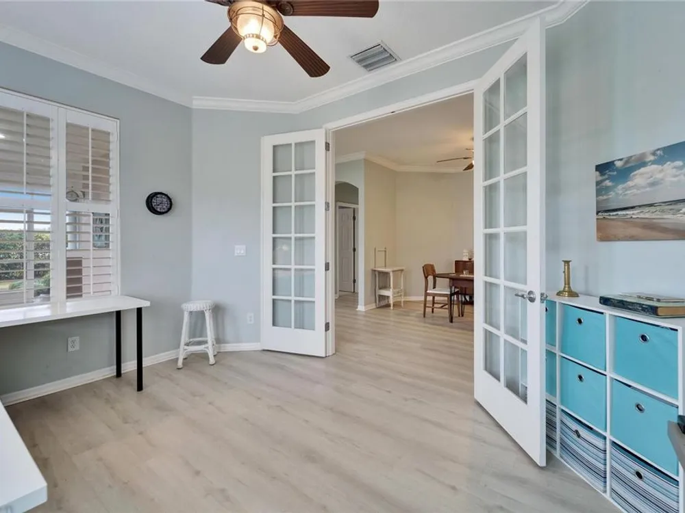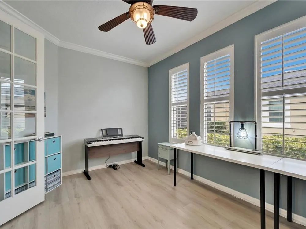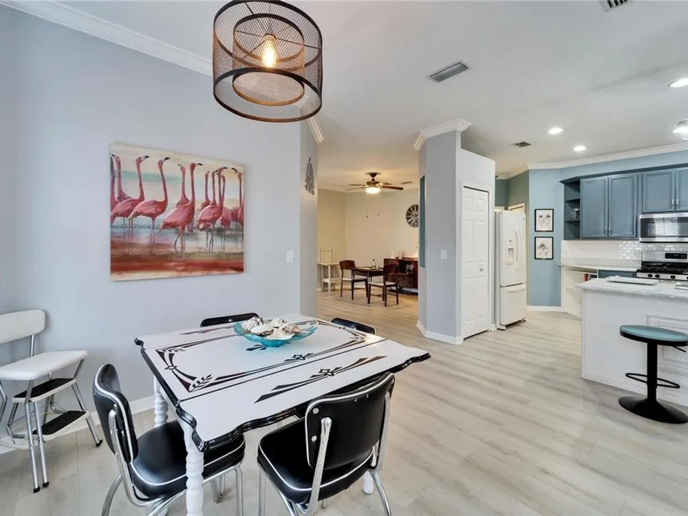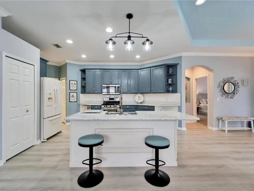 302 Latitude Place | 3 Beds | 2 Baths | 1,960 Sq. Ft. | Turnkey | Meridian Floorplan by Westfield Homes | Golf Cart-Friendly Gated Community | Recently Painted Exterior + Patio Refresh. Both the front and back patio have a fresh coat of anti-skid paint! | Motivated Sellers! This 3-bedroom, 2-bath, 1,960 sq. ft. end-unit villa is located in the gated Seacrest neighborhood within MiraBay. The exterior has been freshly painted, and both the front and back patio have fresh paint. Built by Westfield Homes, the Meridian floorplan offers a functional split layout, trail views, and a spacious open-concept living area with multiple flex spaces. The updated kitchen features quartz countertops, shaker-style cabinets, tile backsplash, and a seamless connection to the living and dining areas. The café-style breakfast space includes a bay window, while the adjacent laundry room offers built-in storage and a utility sink. A formal office with French doors and an additional front flex room provide options for a sitting room, dining space, or hobby area. Luxury vinyl plank flooring, crown molding, tray ceilings, and plantation shutters are featured throughout the main living spaces. The primary suite includes dual vanities, a soaking tub, walk-in shower, custom walk-in closet, and direct access to the screened-in lanai. Two additional bedrooms and a full bath are located on the opposite side of the home for added privacy. Enjoy outdoor living from the covered front porch or screened anti-skid lanai in the back. Seacrest HOA includes lawn care, irrigation, landscaping, pest control, exterior paint, and roof replacement—the roof was replaced in 2023. Residents enjoy full access to MiraBay’s resort-style amenities, including a clubhouse, fitness center, beach-entry pool, lap lanes, waterslide, tennis and pickleball courts, basketball, playgrounds, kayak and paddleboard launch, walking trails, and a full-service marina. Golf carts are welcome throughout the community.