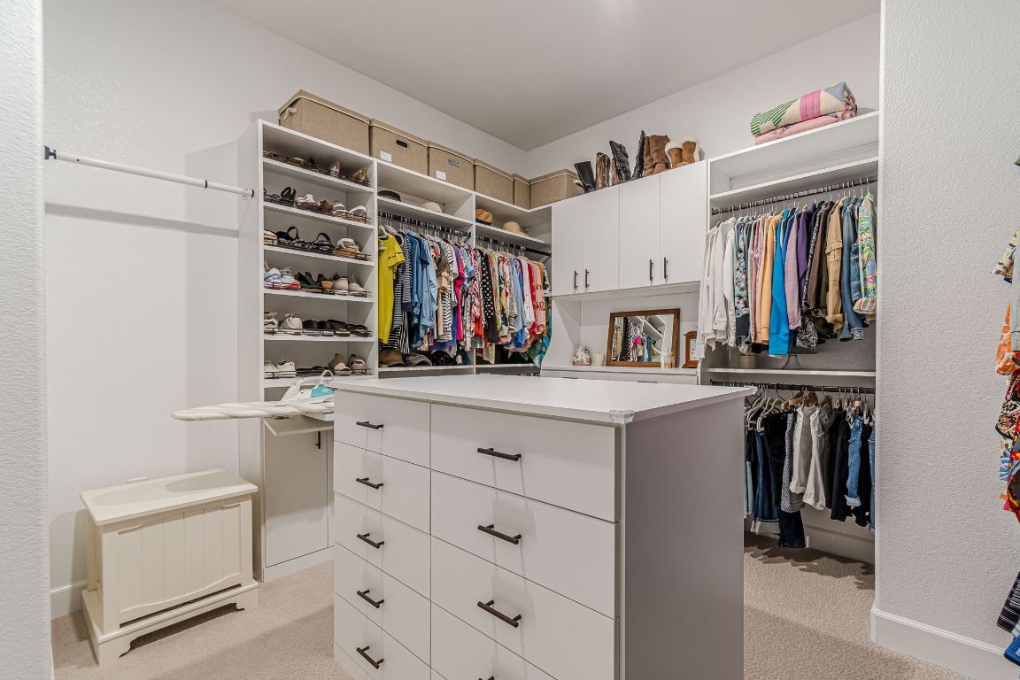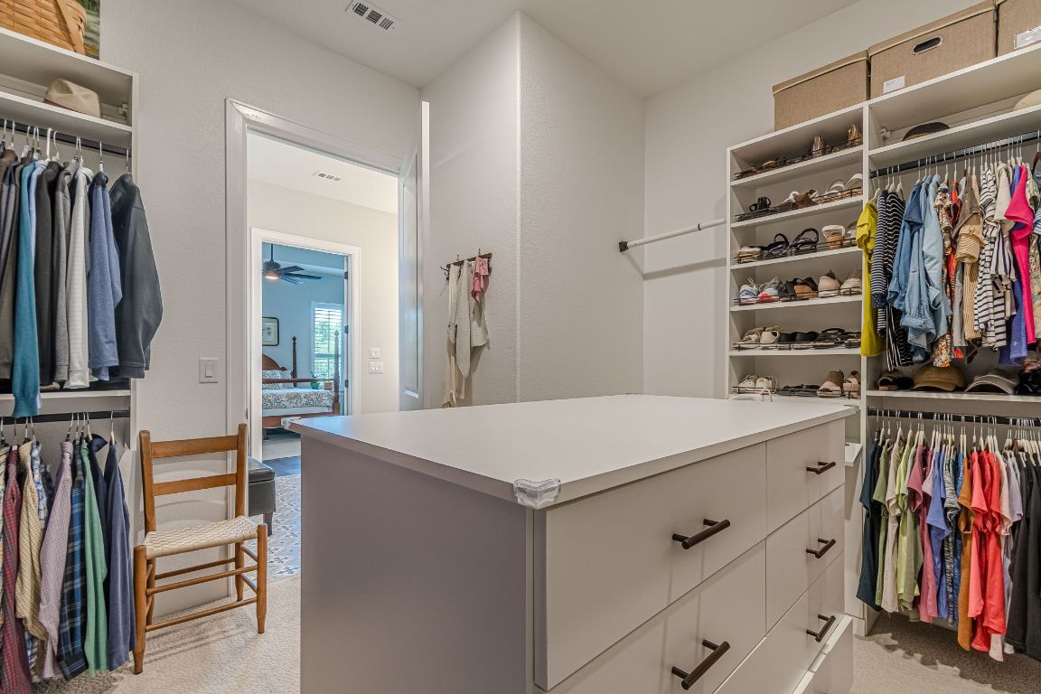 - Tray Ceiling(s), Ceiling Fan(s), Double Vanity, Kitchen Island, Main Level Primary, NoInteriorSteps, Pantry, Quartz Countertops, Smart Home, Walk-In Closet(s)