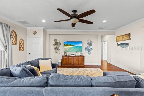 - Accessibility Features, Ceiling Fan(s), Crown Molding, High Ceilings, In-Wall Pest Control, Kitchen/Family Room Combo, Living/Dining Room, Solid-Wood Cabinets, Split Bedrooms, Walk-In Closet(s), Window Treatments