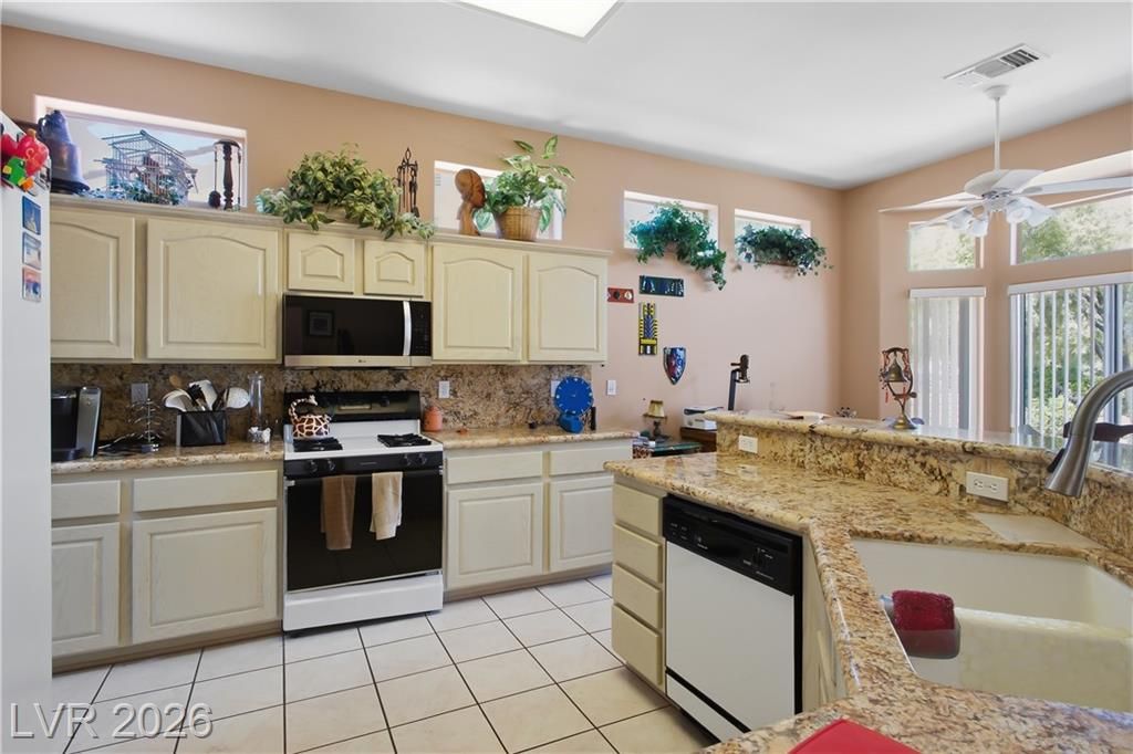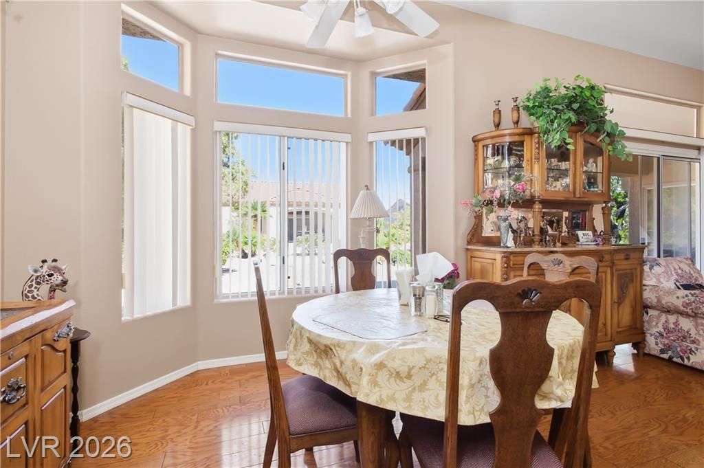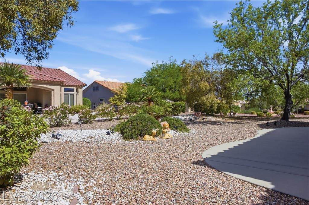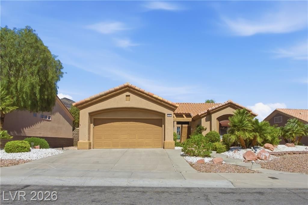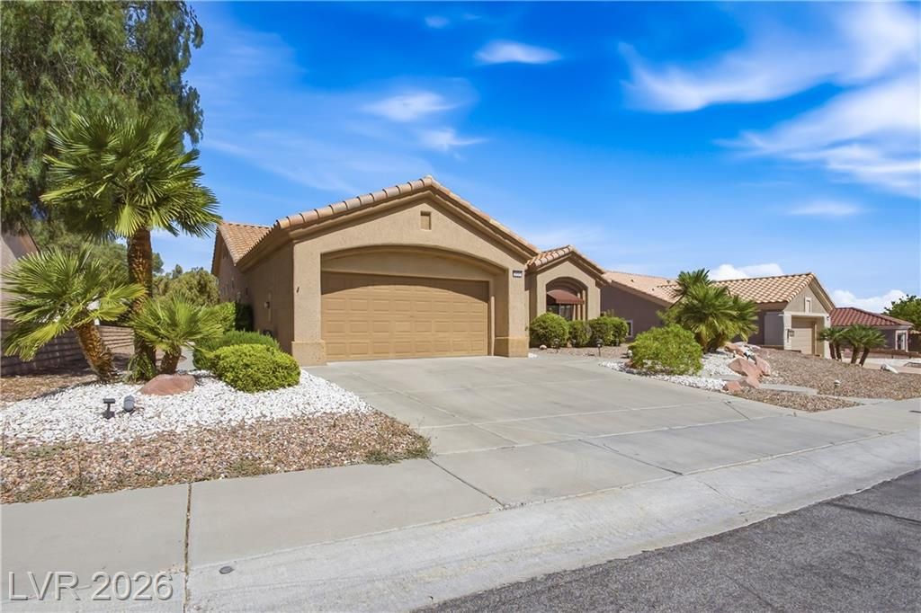 A true open-concept design and among the most popular floorplans in Sun City Summerlin—the 1,533 sq. ft. Tahoe model offers 2 bedrooms and 2 baths. This home is positioned on an elevated lot and features hard-surface flooring throughout the main living areas with carpet in the bedrooms.The open kitchen is has granite countertops, breakfast bar, and a charming eat-in nook that flows seamlessly into the spacious living & dining areas, creating an ideal layout for both everyday living & entertaining. Expansive windows along the north/west-facing rear of the home fill the space with natural light while minimizing direct afternoon heat. The east-facing front windows provide a soft morning glow, enhancing the home’s bright and inviting interior. Primary bay window enhanced ensuite with walk-in shower and closet. Across the hall is the 2nd bed and full bath. 3 golf course community with multiple pools, spa's, clubhouses, activities, sports courts, dining & entertainment