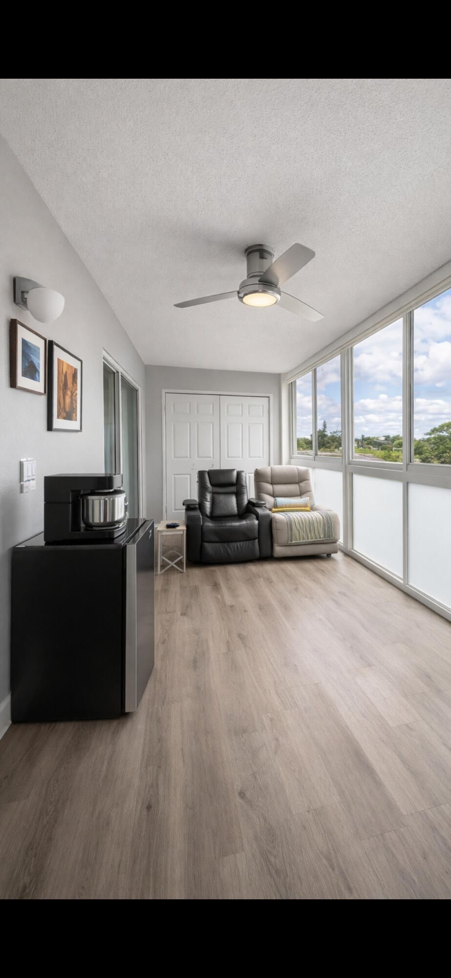 YOU WILL LOVE THIS PLACE! Cozy, clean, and modern condo in IMMACULATE condition, offered fully furnished with HIGH END furniture. Open, modern concept kitchen with large GRANITE island and newer appliances. Features include IMPACT WINDOWS on the front and floor to ceiling in the back, soundproof VINYL flooring, a TANKLESS water heater, and a smart guest setup with a queen size Murphy unit. UPDATED bathrooms, LARGE size patio looking to peaceful future park and filled with natural light. Rentable after 1 year of ownership, making this a great primary residence, seasonal home, or future investment. Move-in ready—just bring your suitcase. CVE IS A GATED COMMUNITY W/24HR SECURITY, LOCATED 3.5 MILES FROM GORGEOUS DEERFIELD BEACH, CLOSE TO GREAT SHOPPING AND EATERIES. OWNER VERY MOTIV