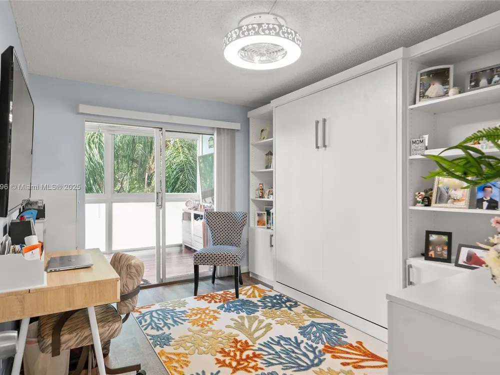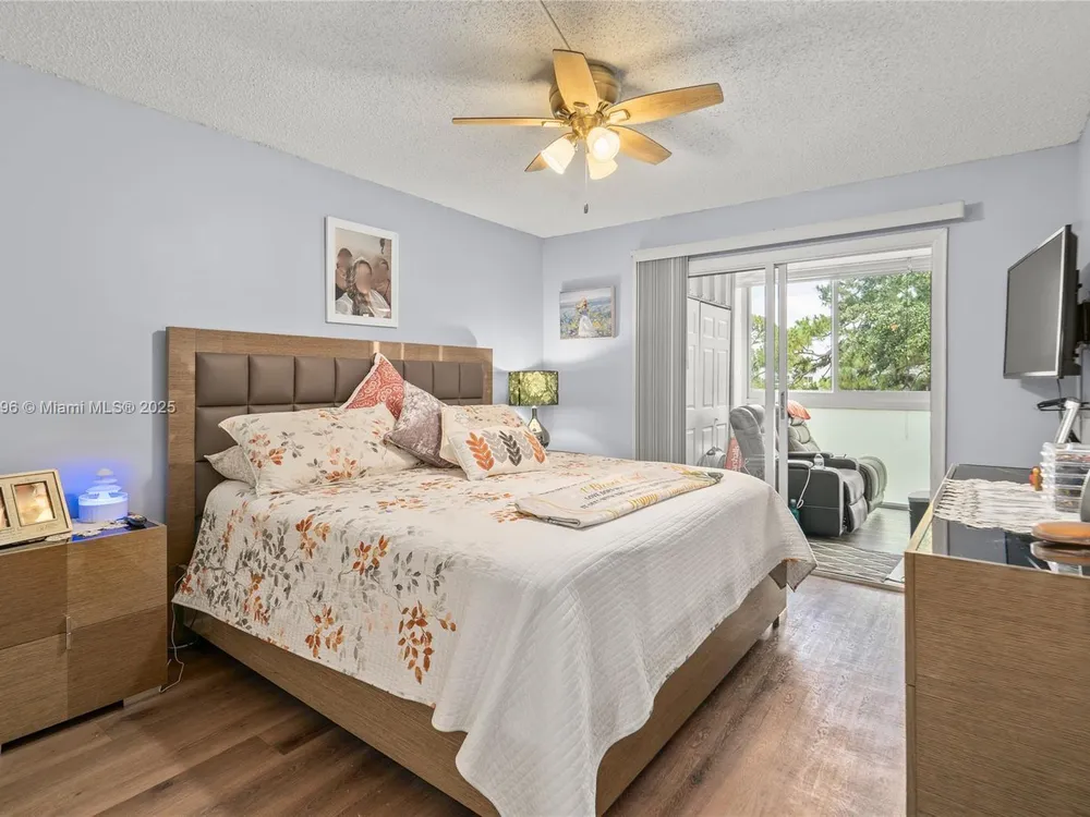 Meticulously maintained and beautifully updated condo offered turnkey. Enjoy a spacious open kitchen with a large granite island and newer stainless steel appliances. Both full bathrooms have been tastefully upgraded. Impact windows and doors throughout with stylish plantation shutters included. The oversized porch offers floor to ceiling impact windows with privacy glass for peace of mind and year-round comfort. The porch overlooks serene green space and includes added storage. This is one of the few Rentable buildings after 1 year of ownership. Second bedroom includes murphey bad. Century Village of Deerfield Beach is a very active community with resort-style amenities. Century Club $110, Master Association $172, Ellesmere B $417.84. No assessments.
