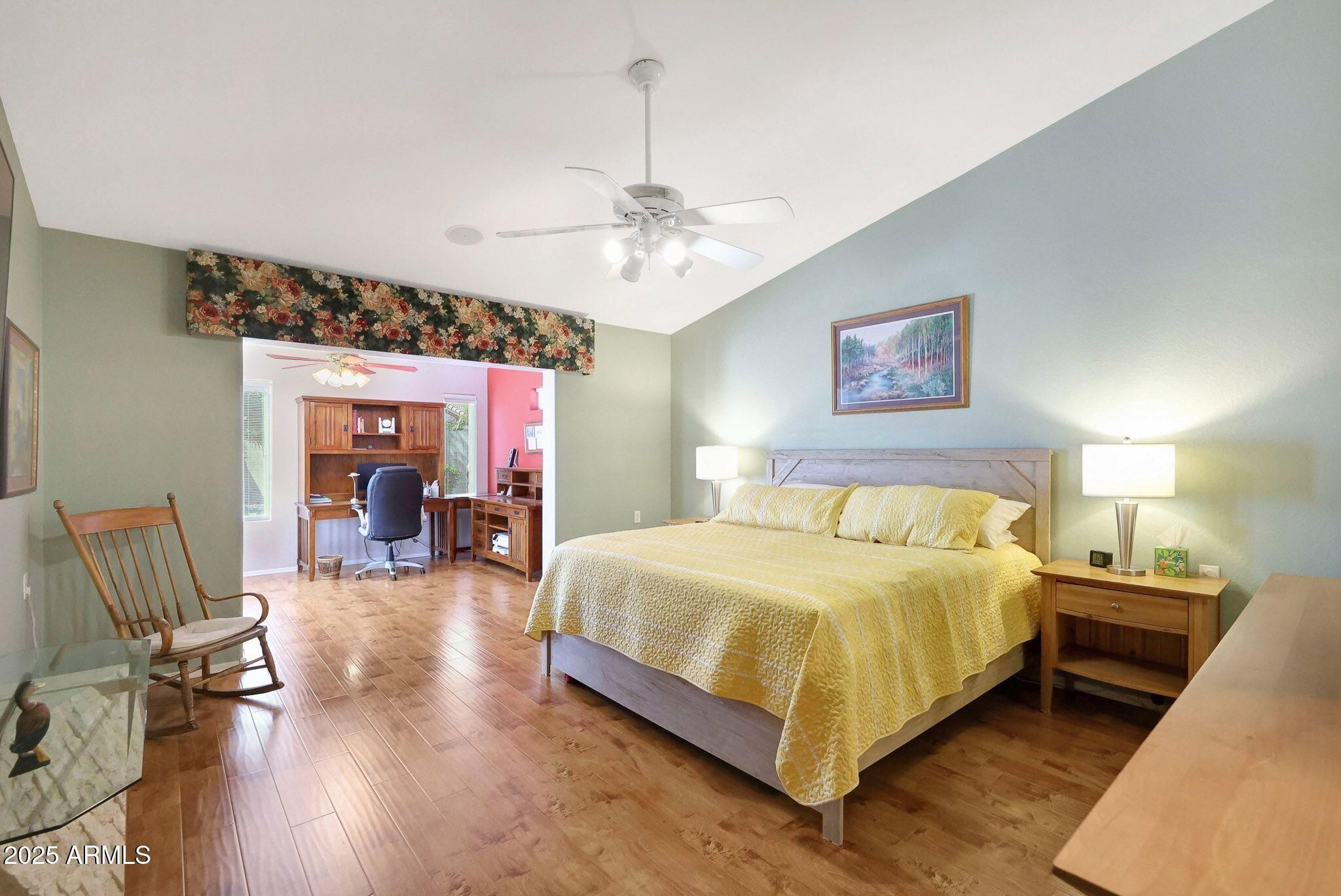 New Price $555,000, a $10,000 reduction. Don't miss this Custom Greenbriar with Owned SOLAR and so much more! Thoughtfully expanded, updated, and exceptionally maintained. Expanded primary bedroom with office/sitting/fitness nook, and a spacious expanded guest bedroom retreat. The living room has also been expanded as has the entry! The kitchen's new design features updated cabinets, quartz counter, opened breakfast bar, contemporary backsplash, & SS appliances, and a gas range with gas stub. Spa-like Updated Baths. Beautiful wood-look laminate & tile flooring. The extended garage provides added space for your golf cart and storage. Improvements: Owned Solar 2016, New Roof 2025, Newer Hot Water Heater2023, Newer AC 2021, New Pool decking, pump & blower 2021 /2025 respectively. Extra Insulation 2021, New irrigation control box 2024. Updated interior paint 2025. The bathrooms are fully renovated, & closets designed with closet organization system. Built-in BBQ island and covered patio seating area. Picture relaxing afternoons of Food, Fun, and Friends in this private backyard, enjoying music and cocktails in the spool surrounded by a tranquil landscape setting.