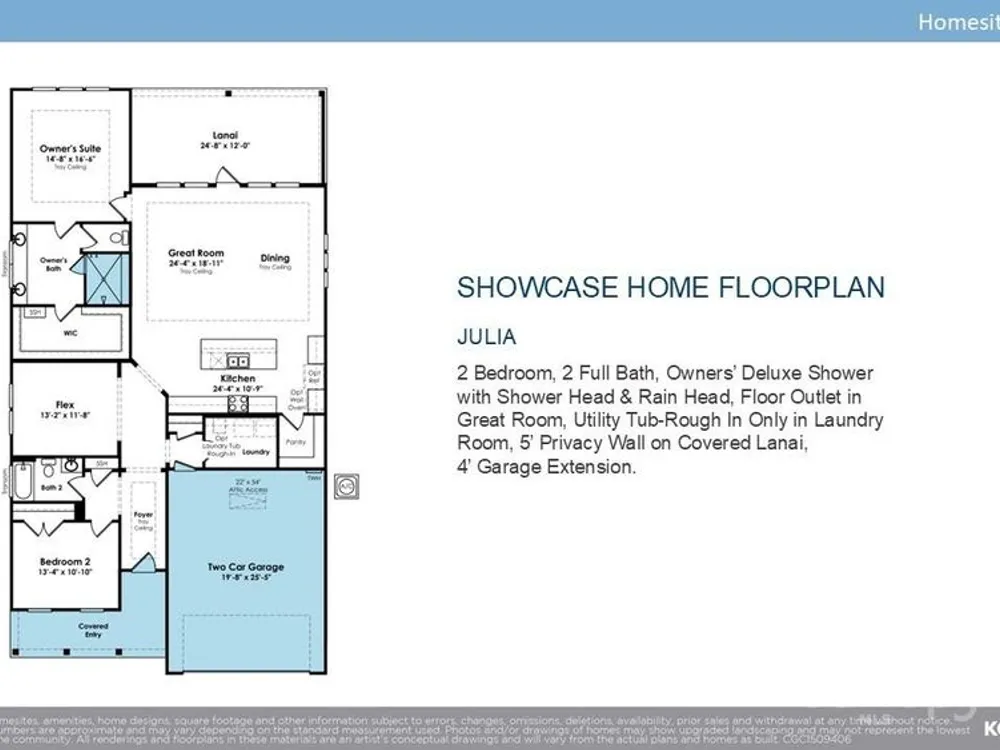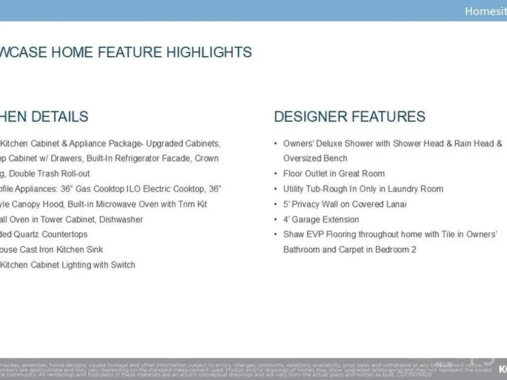 **NEW CONSTRUYCTION** Model photos used for reference. This 2 Bedroom, 2 Bath home with a versatile Flex Room and a spacious 2-Car garage is located just a short stroll from the community’s Amenity Center, picturesque nature trails, and a future Community Garden. Inside, the Owner’s Bathroom offers a luxurious daily experience with a rain head shower, standard head, and an oversized bench. The gourmet kitchen is a showpiece, fitted with quartz countertops, upgraded cabinetry, GE Profile appliances, a gas cooktop, and a farmhouse cast iron sink that adds a charming touch. Complete with under-cabinet lighting and a built-in refrigerator facade for sleek symmetry. The extended garage offers extra space for hobbies or storage, and the covered lanai has a 5-foot privacy wall inviting quiet moments outdoors. The backyard opens to a peaceful common area with no direct rear neighbors and newly planted trees that frame a natural, elevated landscape behind the home, enhancing privacy.