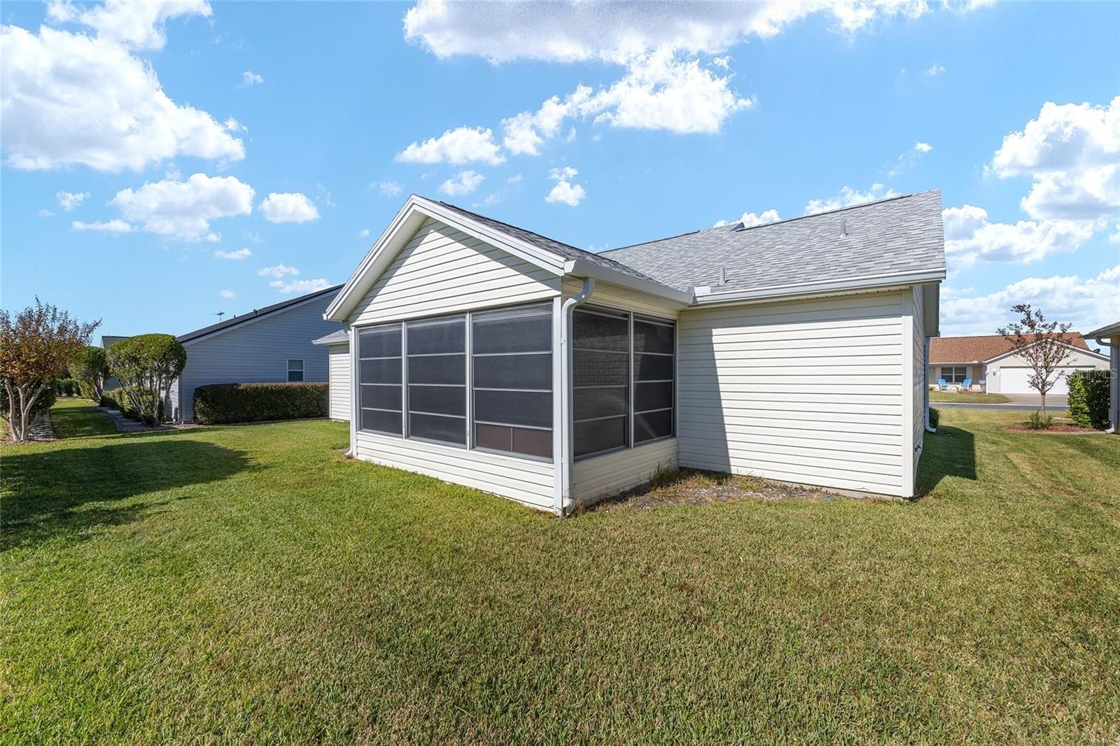 Beautifully Maintained 2/2 Furnished Home in the Village of Glenbrook — NO BOND! This well-cared-for, fully furnished home is perfectly located in the Village of Glenbrook, just a few minutes by golf cart to Glenview Country Club. Enjoy a bright and spacious open layout featuring a large living room, dining area, and kitchen with vaulted ceilings that create an airy, inviting feel. The split bedroom floor plan provides excellent privacy for visiting guests. Relax year-round in the enclosed lanai or step outside to the cute front porch to read your book in the shade. Landscaping is meticulously maintained and easy to care for on your own, if desired. Offering 1,378 sq ft of heated living space, this home includes central air, natural gas heating and cooking, plus a mix of tile and carpet flooring for comfort and convenience. Move-in ready and in a fantastic location close to shopping, restaurants, Lake Sumter Landing, Spanish Springs and the popular Polo Club—this is a must-see!