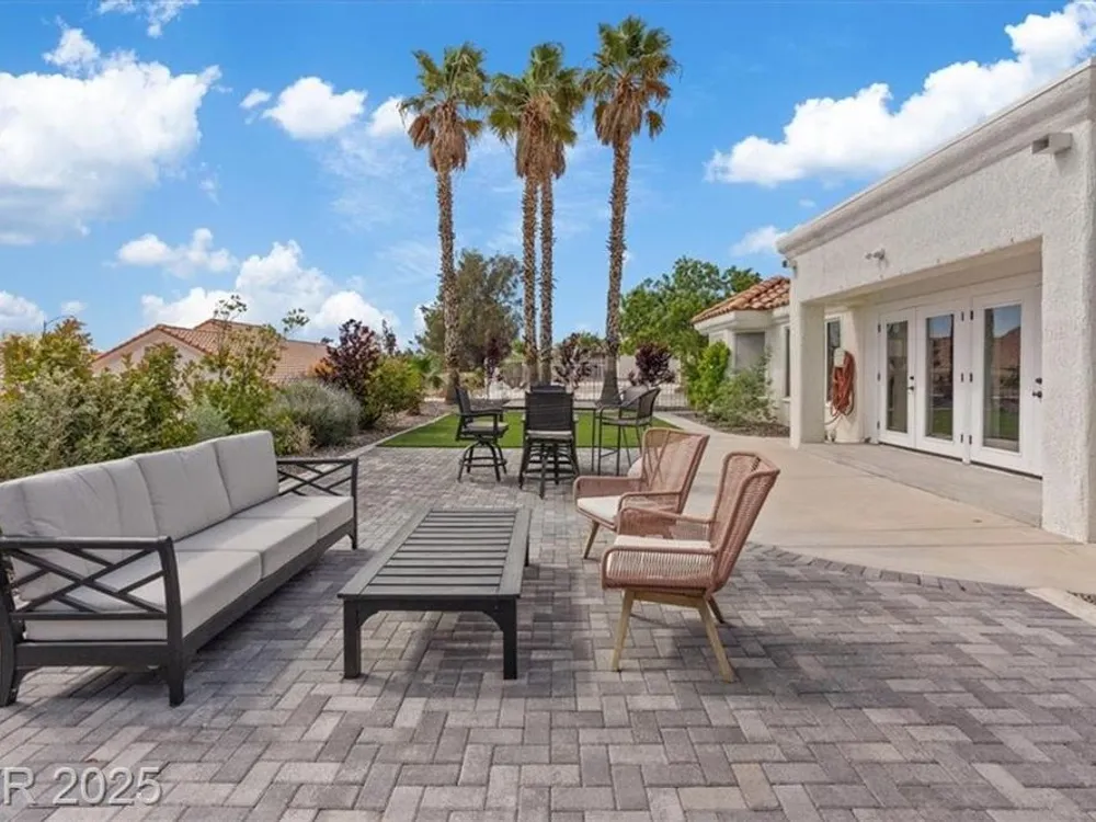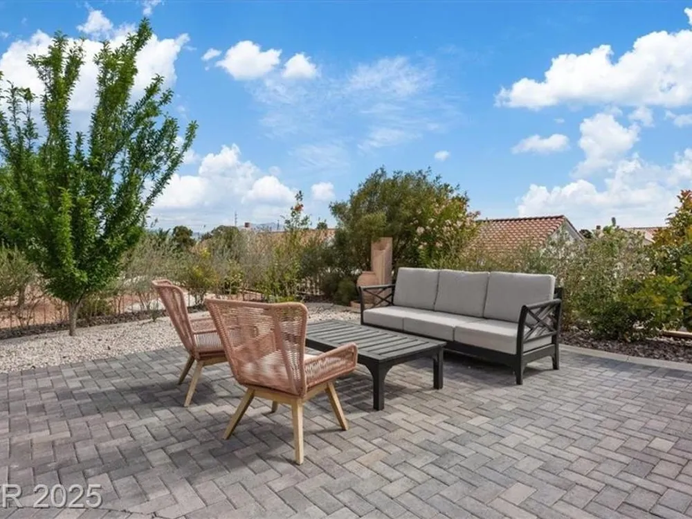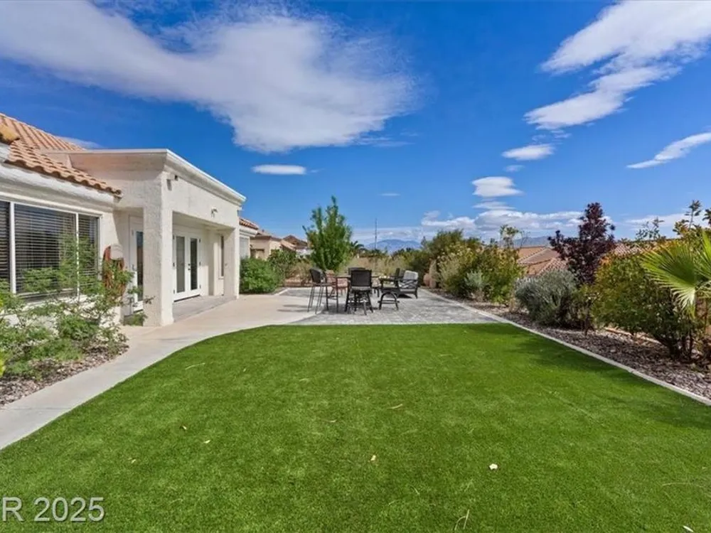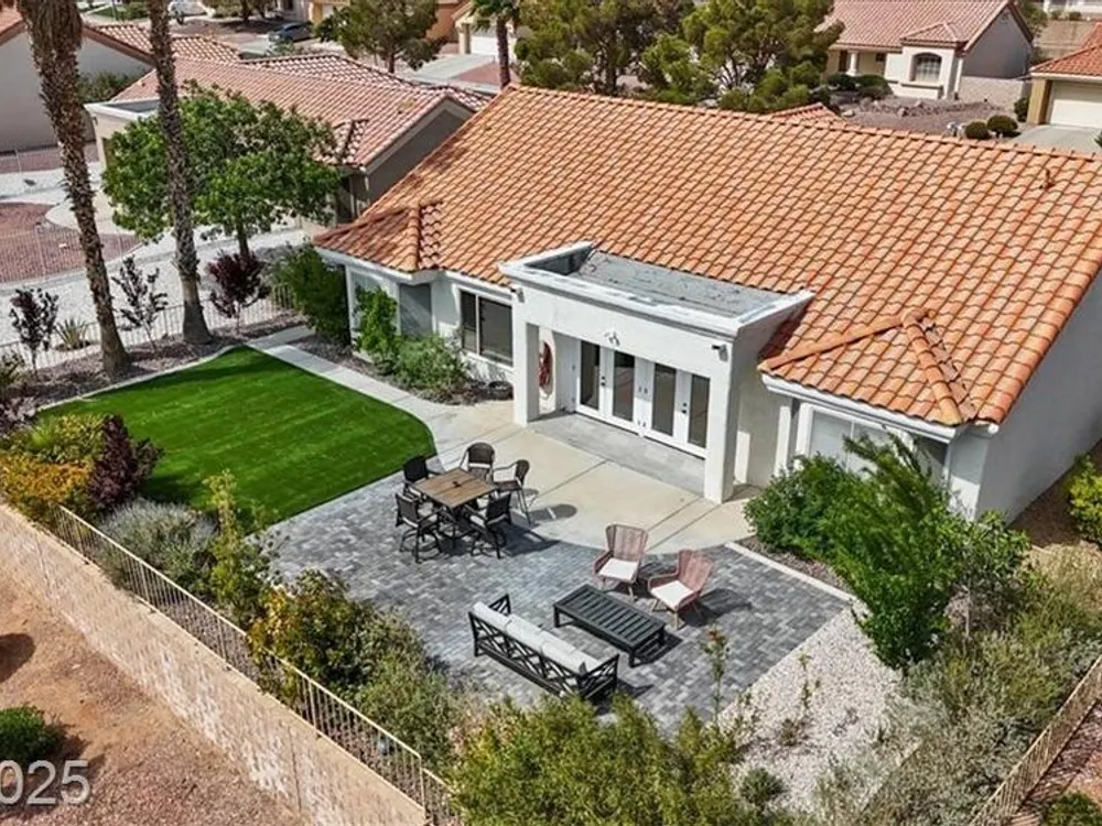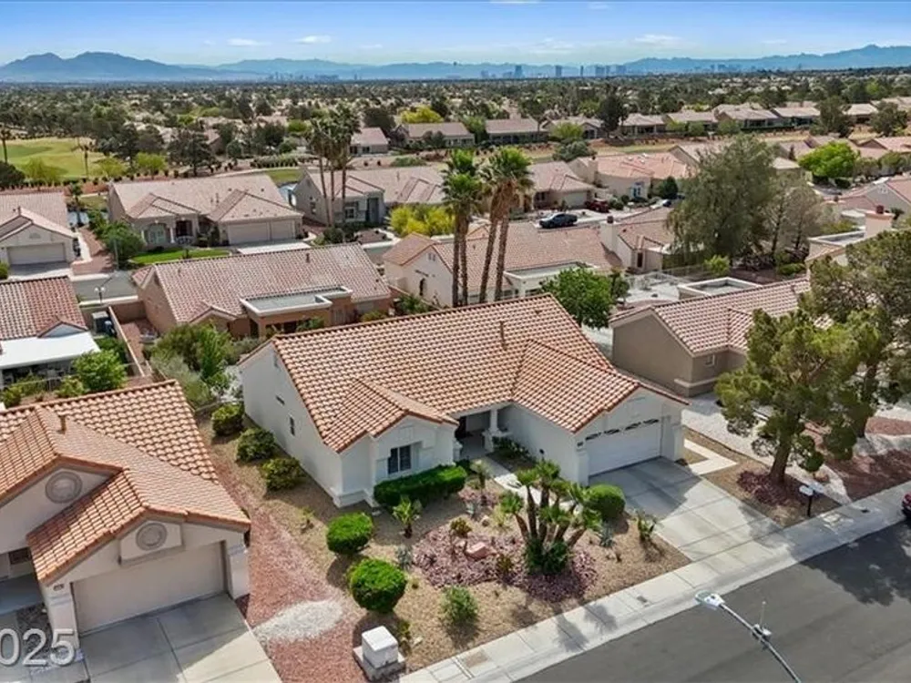 Welcome to this beautifully upgraded single-story home in the heart of Sun City Summerlin! This 2-bedroom, 2-bathroom gem features an open floor plan that’s perfect for entertaining. The spacious kitchen boasts an oversized island, stainless steel appliances, and plenty of cabinet space—ideal for any home chef. Enjoy cozy evenings by the fireplace in the inviting family room. You'll love the upgraded flooring throughout, as well as the modern finishes in both bathrooms. The large backyard is a private oasis with stylish pavers and room to relax or entertain. Plus, a 2-car garage adds convenience and extra storage. All located in the vibrant 55+ community of Sun City Summerlin with top-notch amenities including golf, pools, fitness centers, and more!