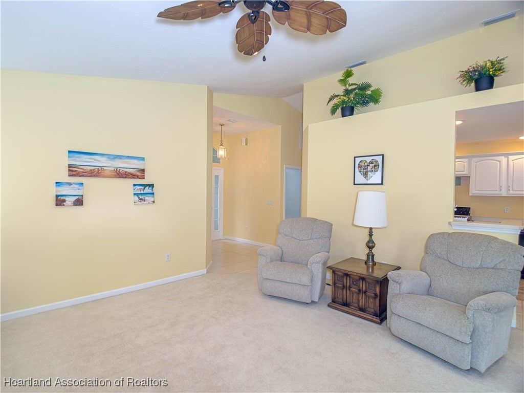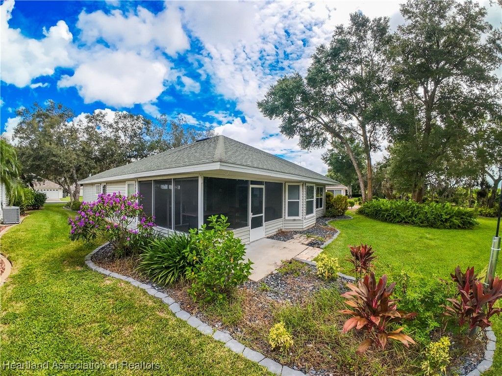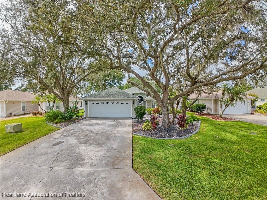Welcome to Highlands Ridge, one of Avon Park’s most desirable golf communities! This 3-bedroom, 2-bath home (or 2-bedroom plus office) sits on a beautiful lot surrounded by mature trees, offering the perfect blend of comfort and charm. Step inside to a spacious living room filled with natural light, featuring plant shelves for your personal touches and sliding doors that open to the screened porch. The kitchen is roomy and functional with plenty of cabinet space, a breakfast bar, and a pantry—ideal for anyone who loves to cook or entertain. The master suite is a true retreat with dual walk-in closets and a large bathroom featuring double sinks and a tiled walk-in shower. The 3rd bedroom/office offers flexible space for guests, work, or hobbies. Outside, the screened back porch is perfect for morning coffee or evening get-togethers while enjoying the peaceful wooded view. Additional features include an indoor laundry room, an oversized 2-car garage, and a golf cart included with the sale! Whether you’re looking for a full-time residence or the perfect golf retreat, this home checks all the boxes. (Seller is offering a $3,000 appliance credit to buyer at closing.)
