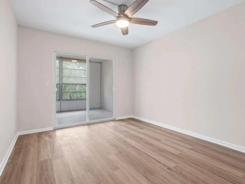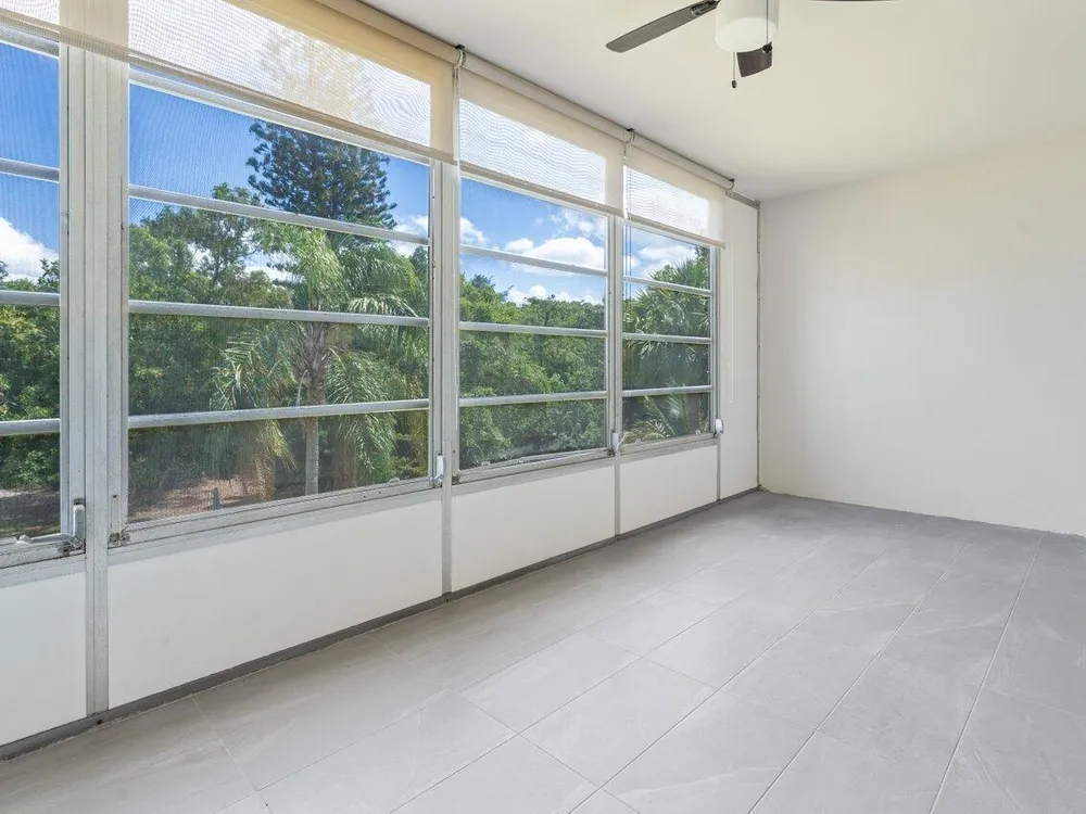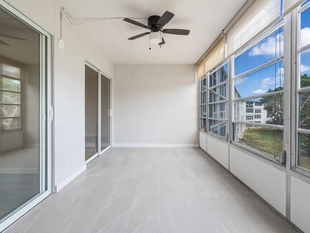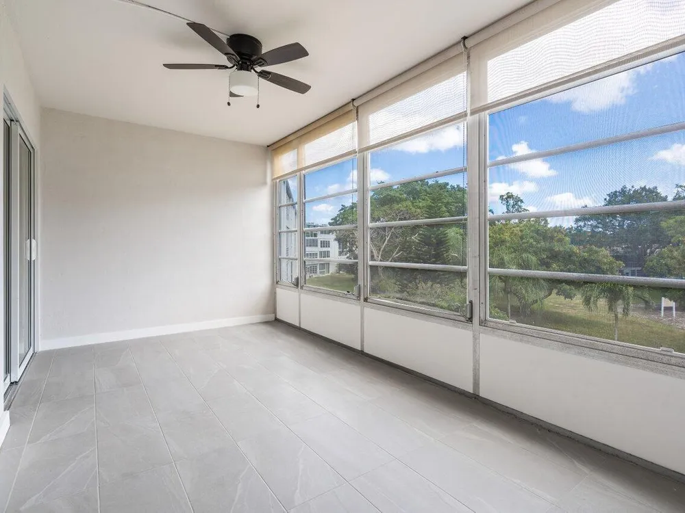 Beautiful updates in this pristine two bedroom and full two bath unit. Located in the BEST luxury building of Century Village East. New Roof. No assessments. All inspections completed. Reserves met. New impact windows and doors throughout. Open kitchen concept with white shaker cabinets, brand-new, stainless-steel GE appliances, quartz countertops, and glass tile backsplash. Top of the line wood-look laminate flooring. Freshly painted with elegant and neutral high-end paint. No Popcorn on ceilings. Primary room has large walk-in closet with custom built-ins and fully updated ensuite bathroom with glass shower doors. Guest bathroom is also fully updated. Spacious second bedroom with both rooms leading out to your private enclosed Patio